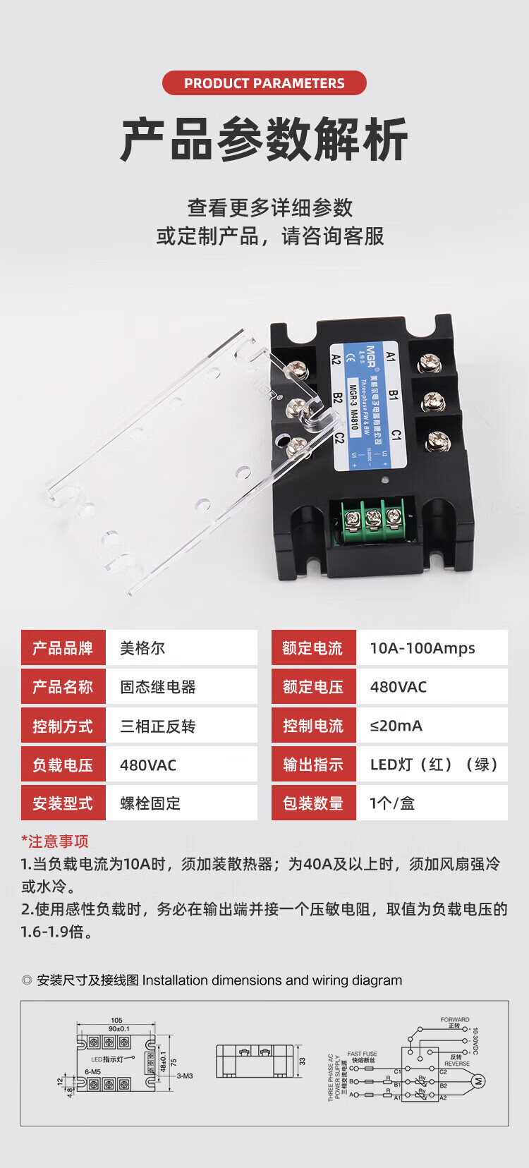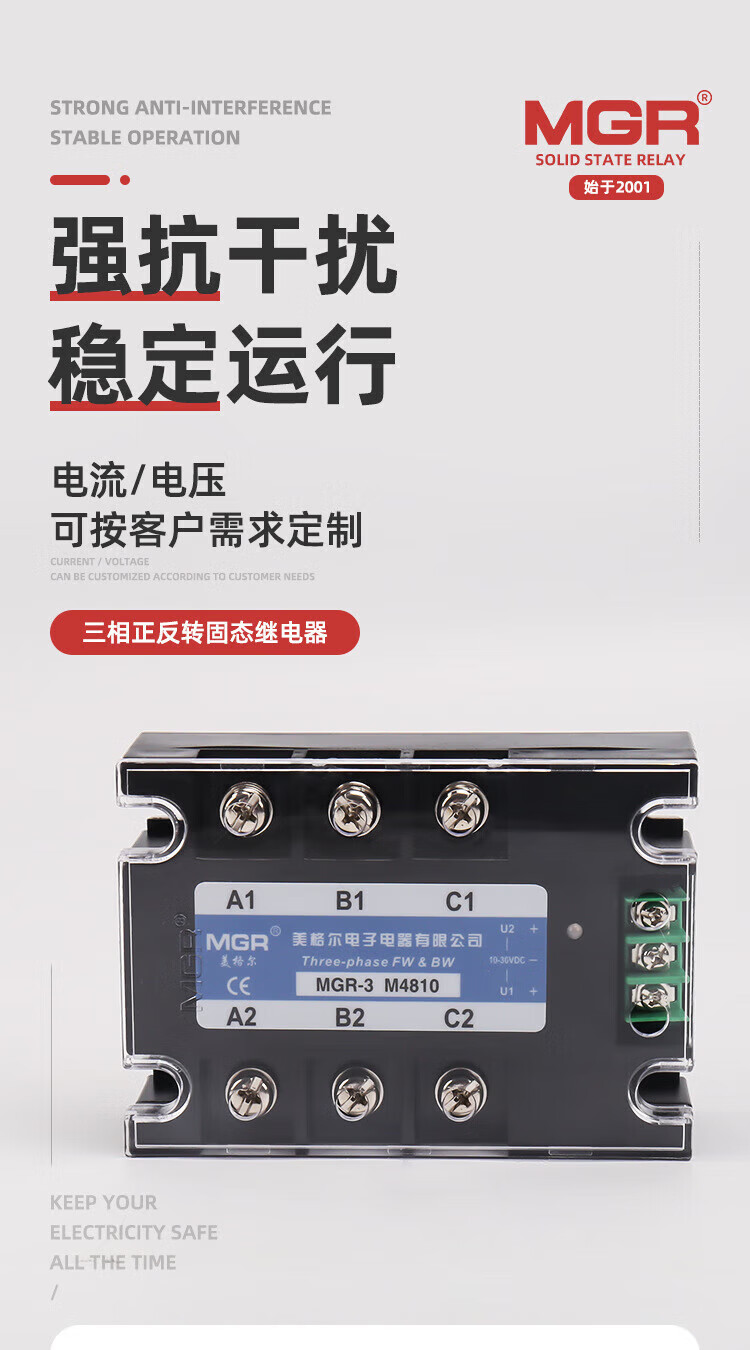 Meiger three-phase motor forward and reverse solid state relay MGR-3 M4840A high power 380V control module three-phase forward and reverse 60A