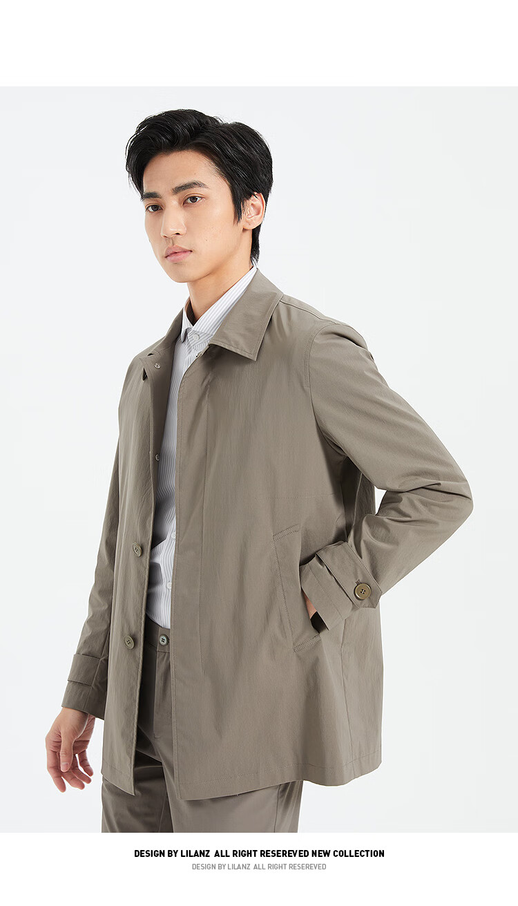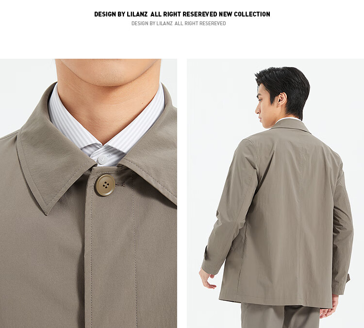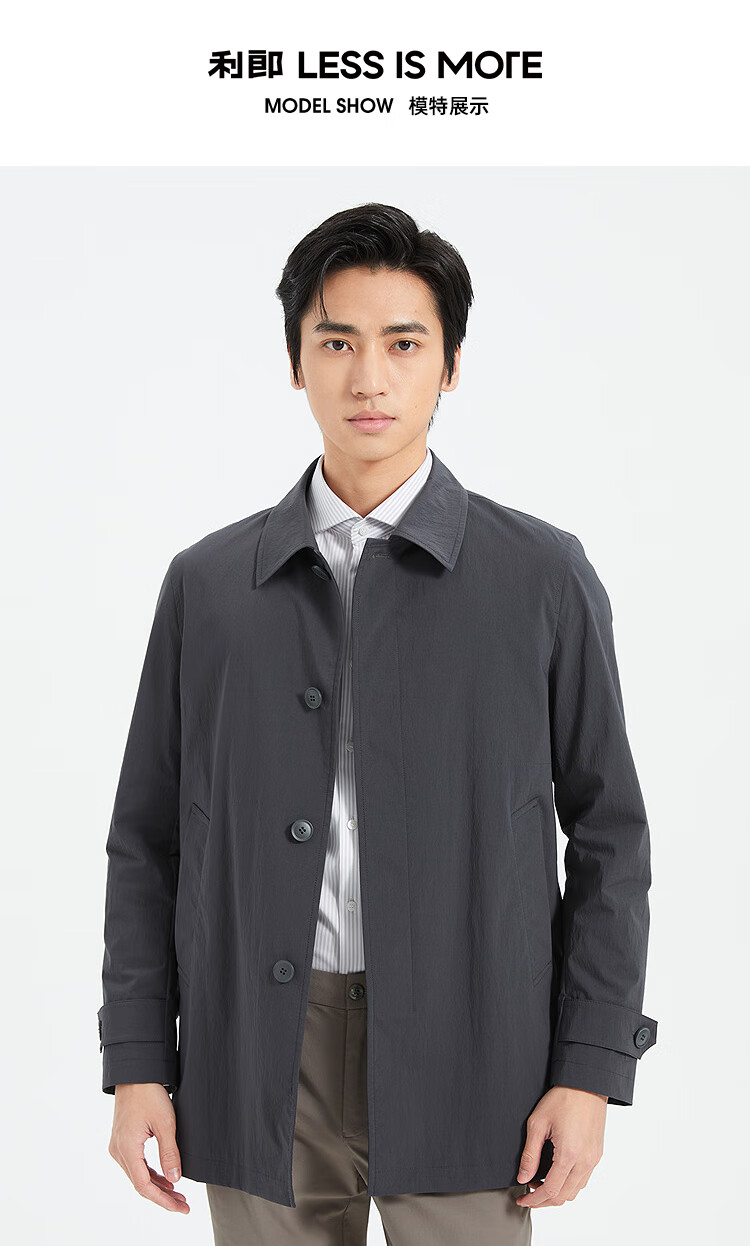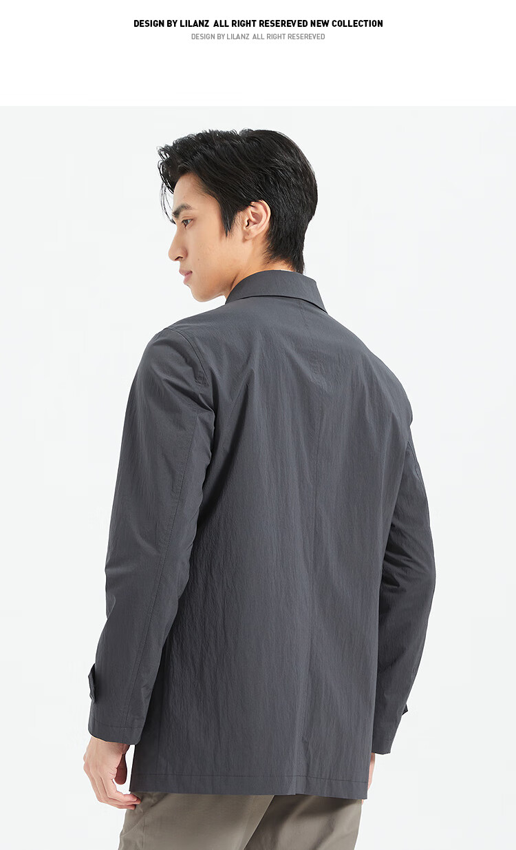 Lilang Light Fashion Men's Wear Slightly Wrinkled Texture Windbreaker Men's Mid-Length Stretch Anti-Wrinkle Windproof Jacket A5CFY912 Dark Coffee L (170)