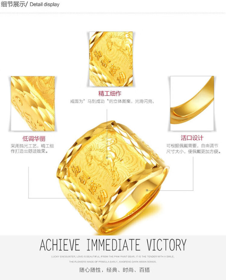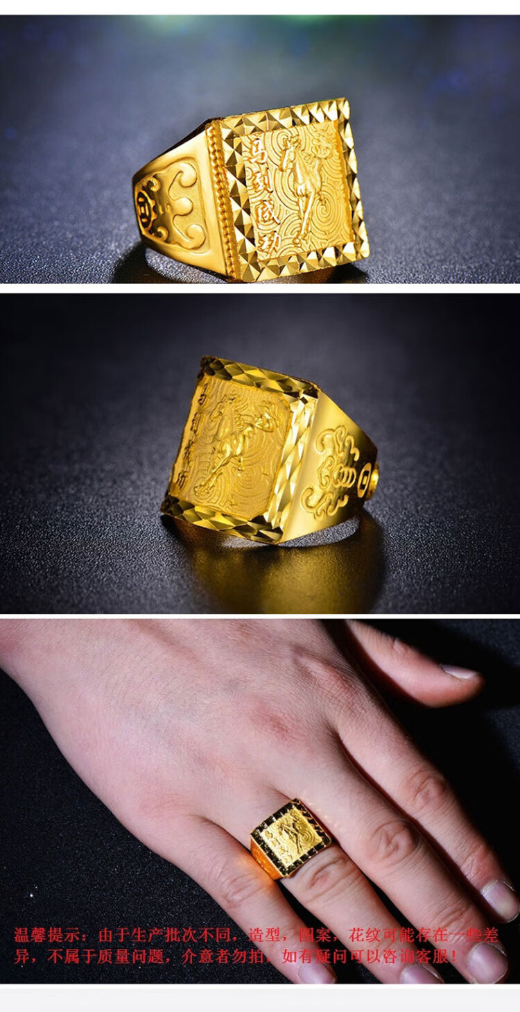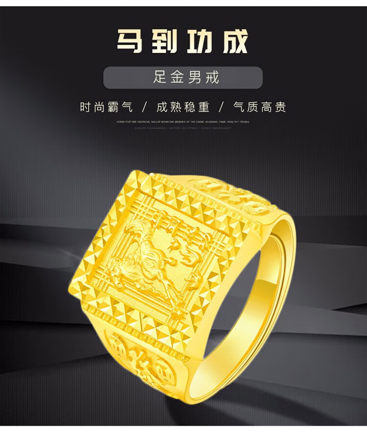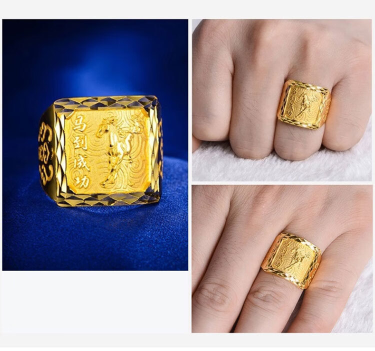 Jinmanyuan Pure Gold 999 Gold Ring for Men Square Horse to Success Zodiac Horse Ring 16.88g