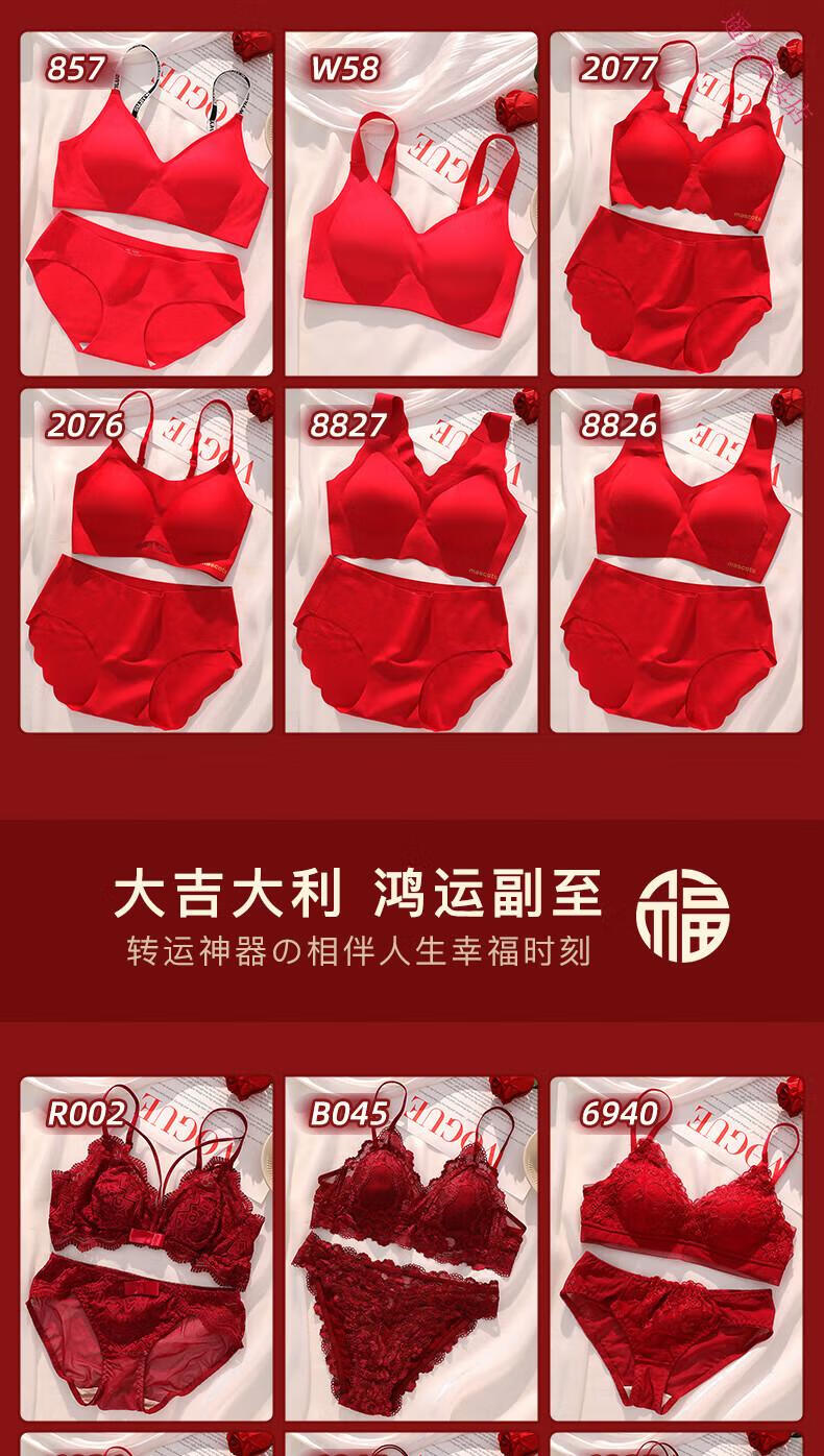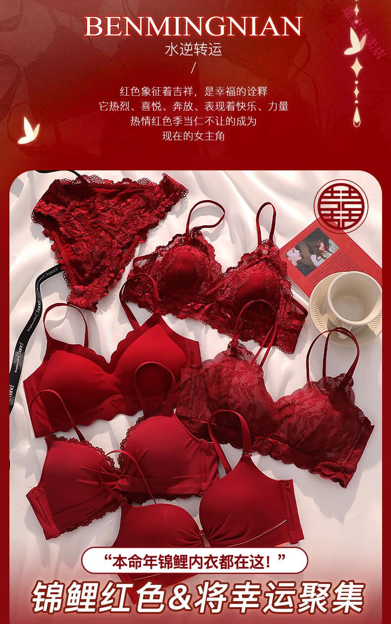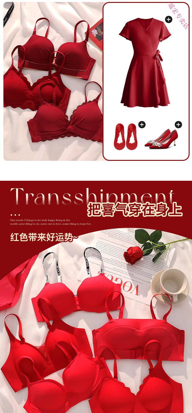 LangSha (LangSha) Red Underwear Bra Set Female Wedding Bride's Animal Year Small Breast Gathering 2025 Year of the Horse New Bra 06845-Set 34 75B
