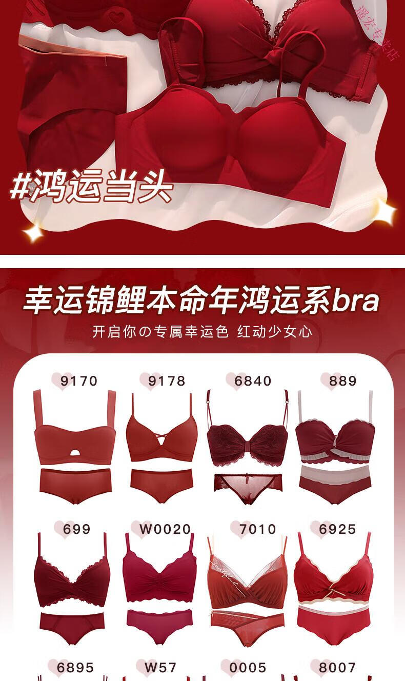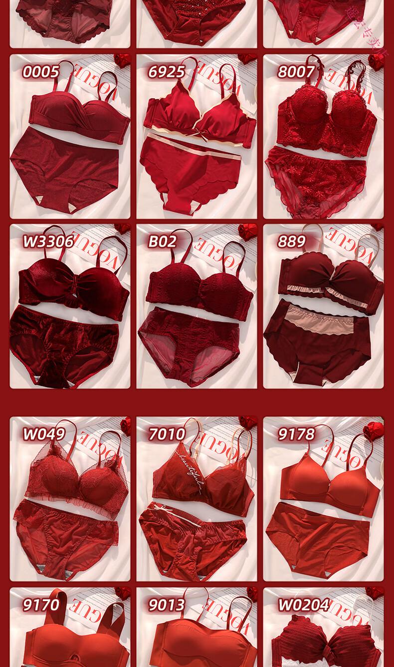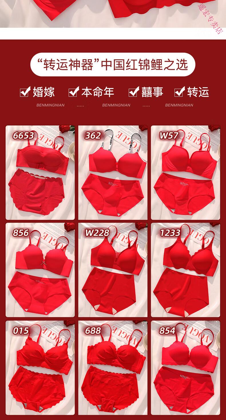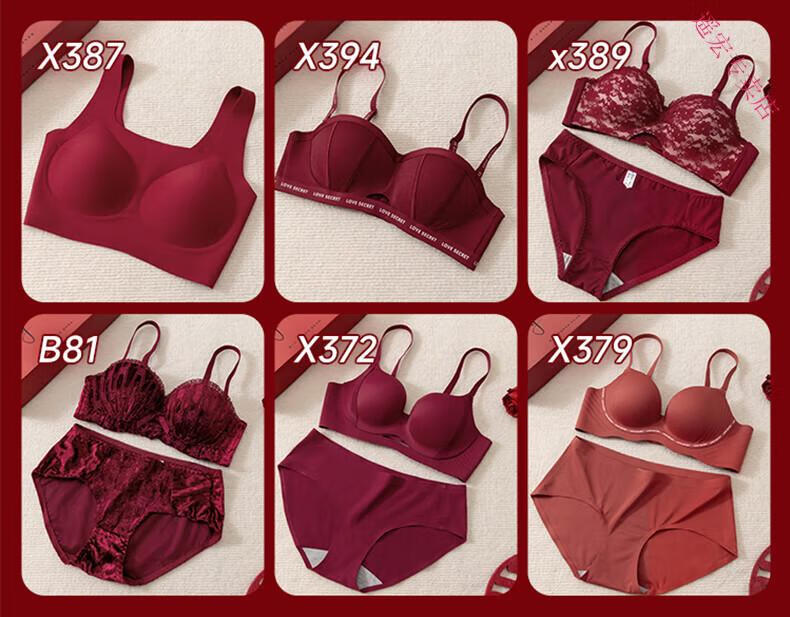 LangSha (LangSha) Red Underwear Bra Set Female Wedding Bride's Animal Year Small Breast Gathering 2025 Year of the Horse New Bra 06845-Set 34 75B