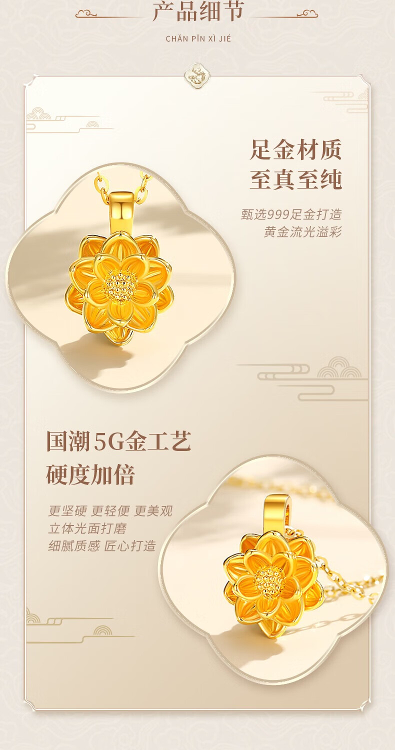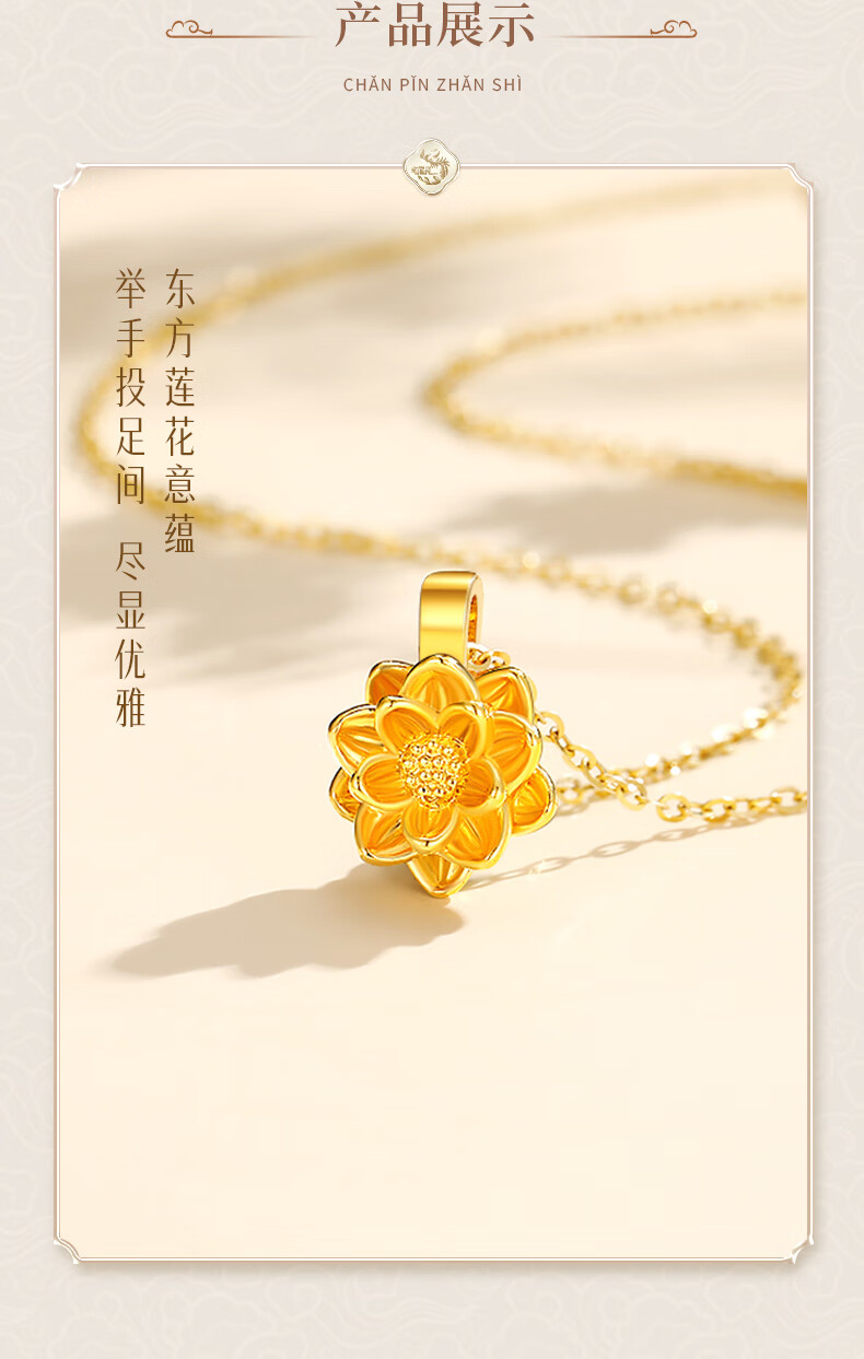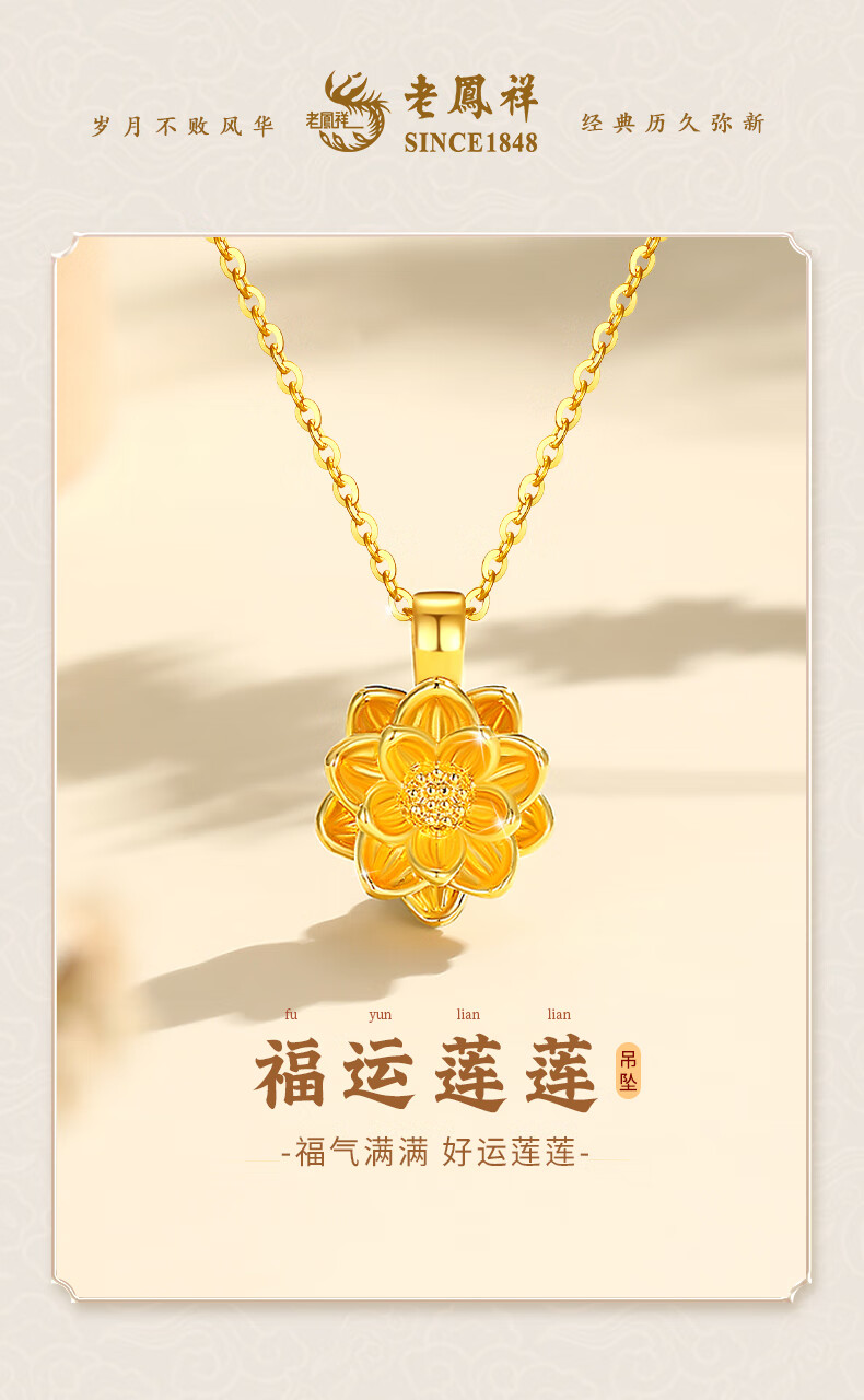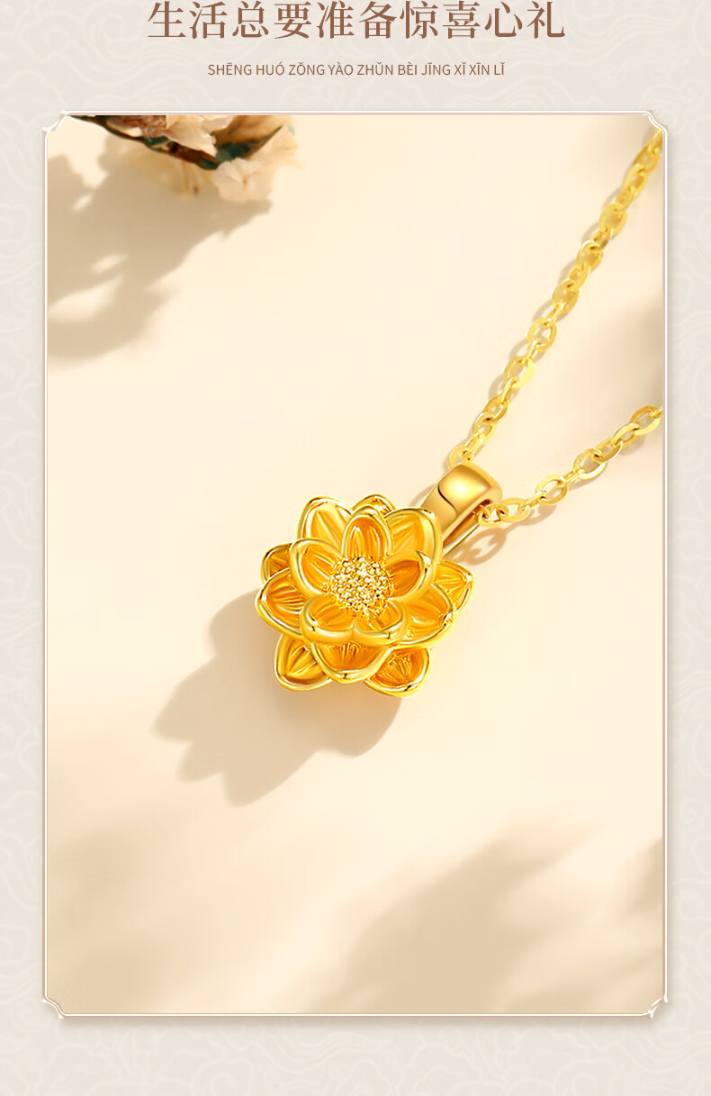 Lao Fengxiang gold necklace, gold lotus pendant for women, pure gold pendant jewelry, Mother's Day birthday gift for mom and wife, delivery today/next day, pure gold lotus pendant, about 1g* free silver chain