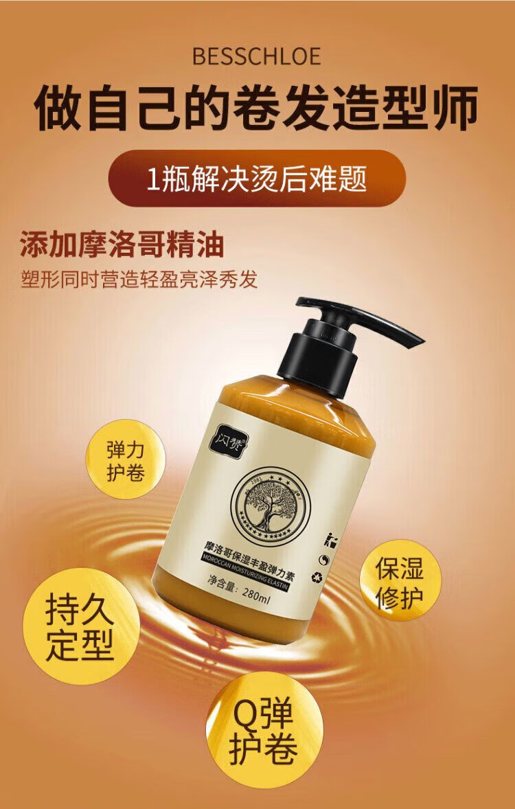 Flash like curly hair elastin moisturizing, styling, long-lasting fragrance, repairing dyeing, perming, dryness, and frizzy hair, increasing elasticity, repairing gel cream for women, 1 bottle of elastin