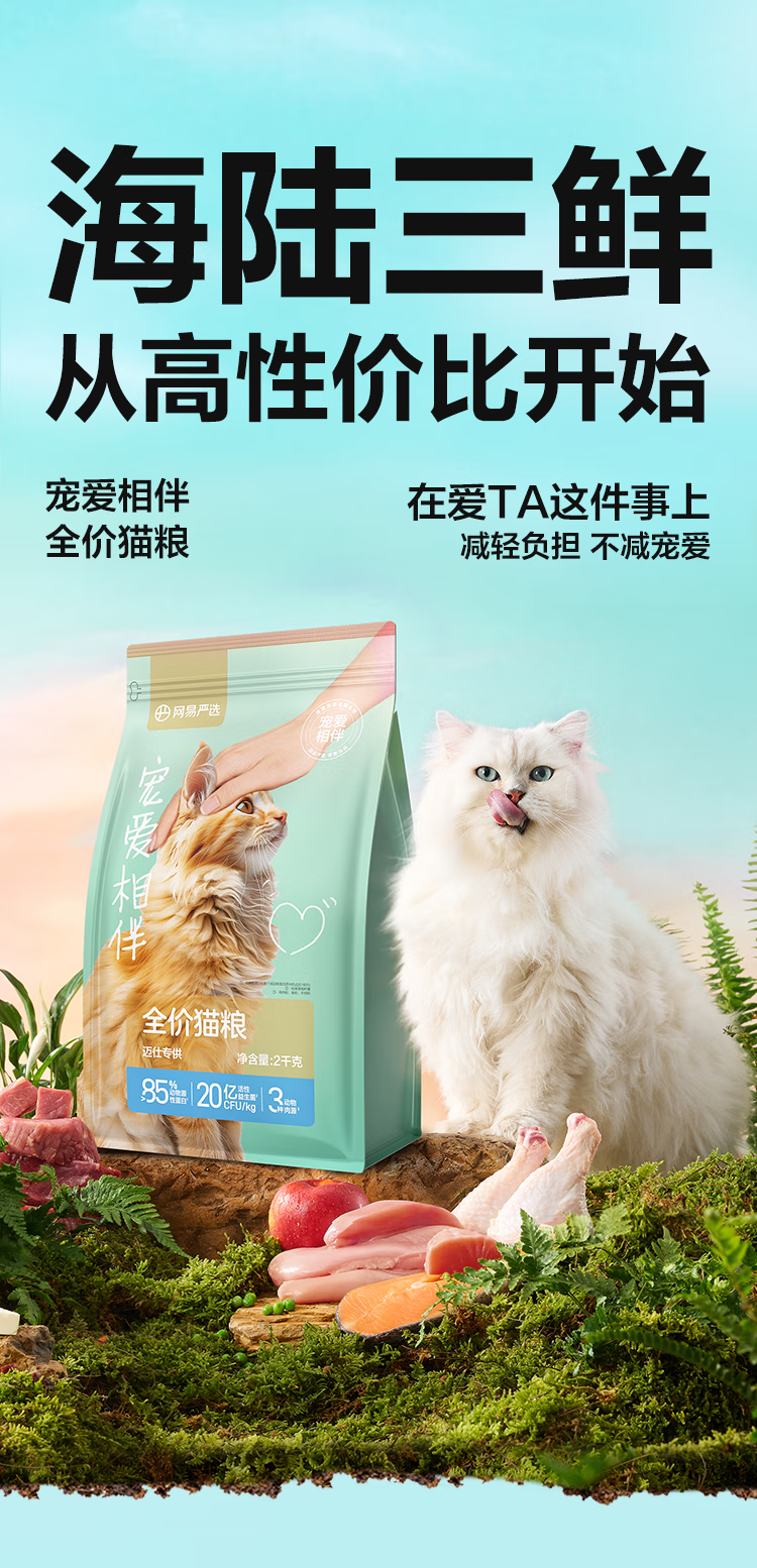 NetEase carefully selects full-price cat food, pet main food, kittens and adult cats, full-price food, natural fruit and vegetable cat food, pampering and companionship, sea and land fresh food, full-price cat food 10kg