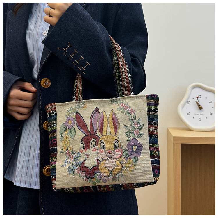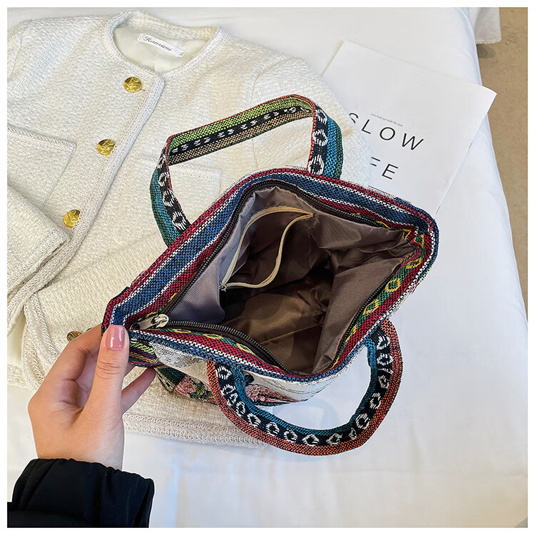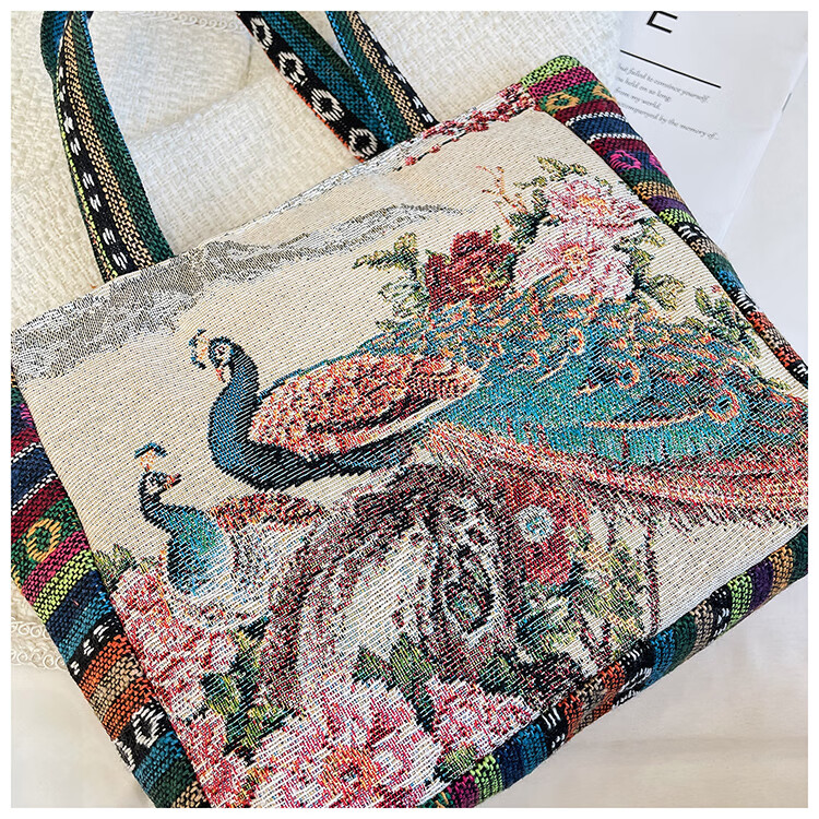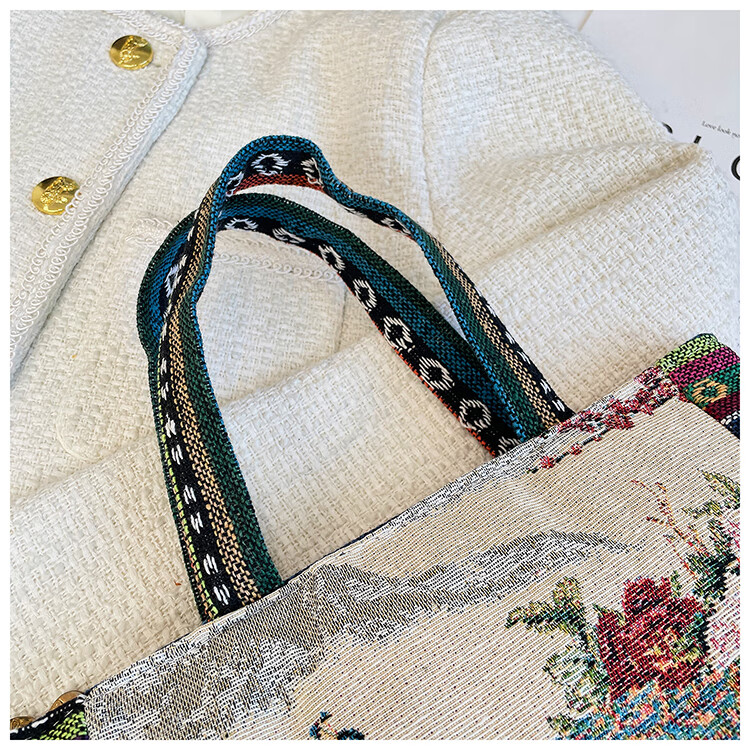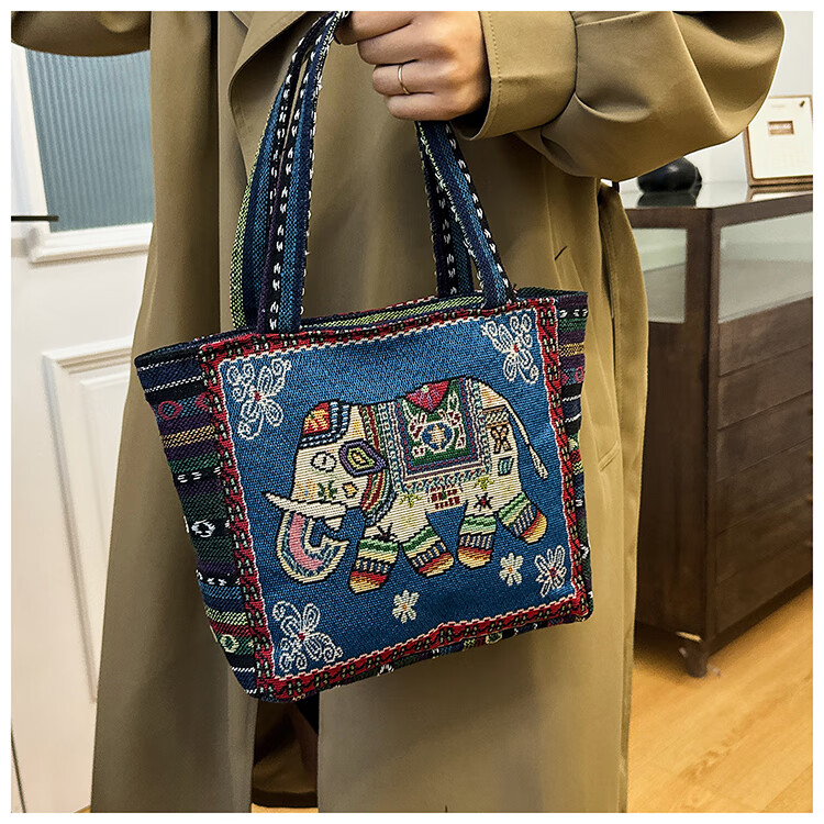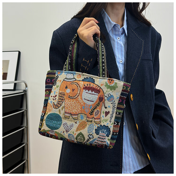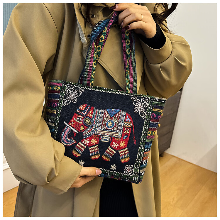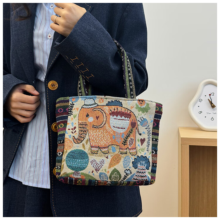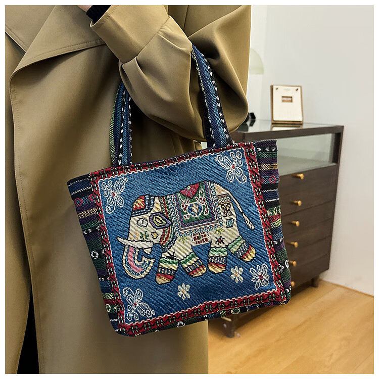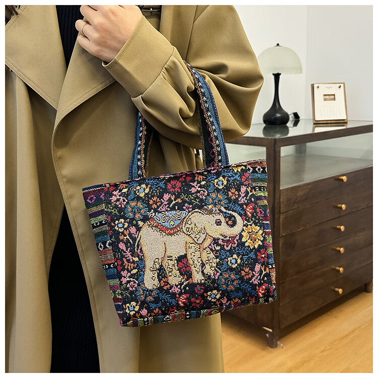 Bags for women, ethnic style embroidered handbags, literary retro shoulder bags, large-capacity embroidered handbags, tote bags, Elephant in the Sea of Flowers/
