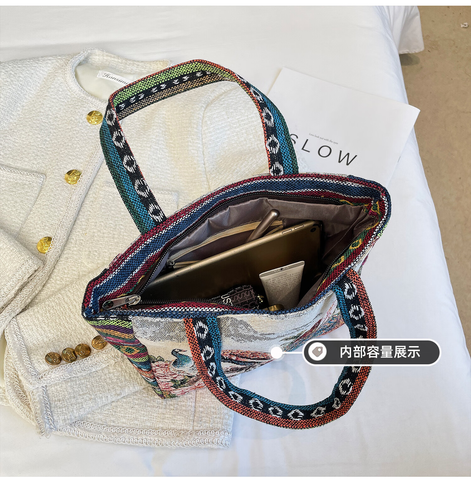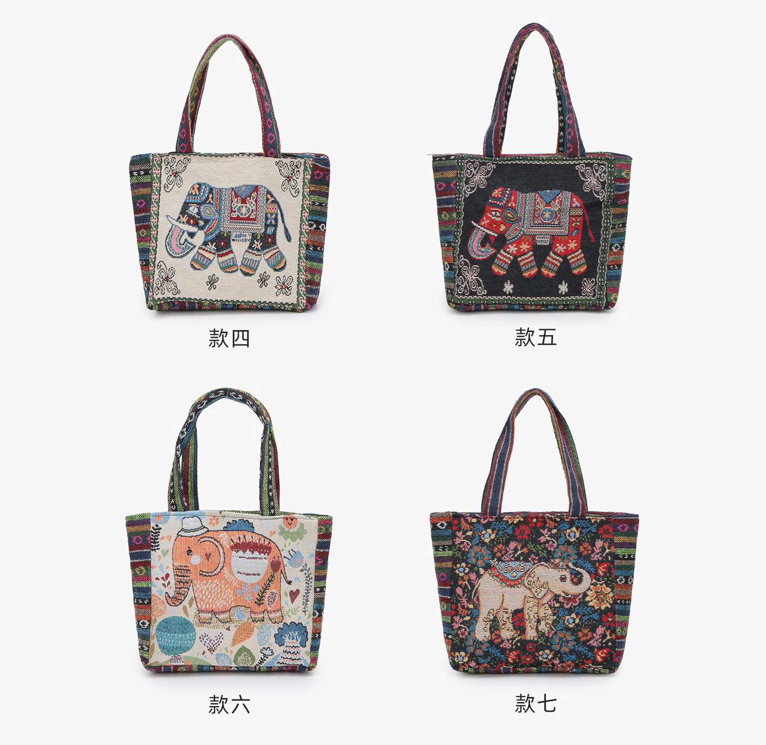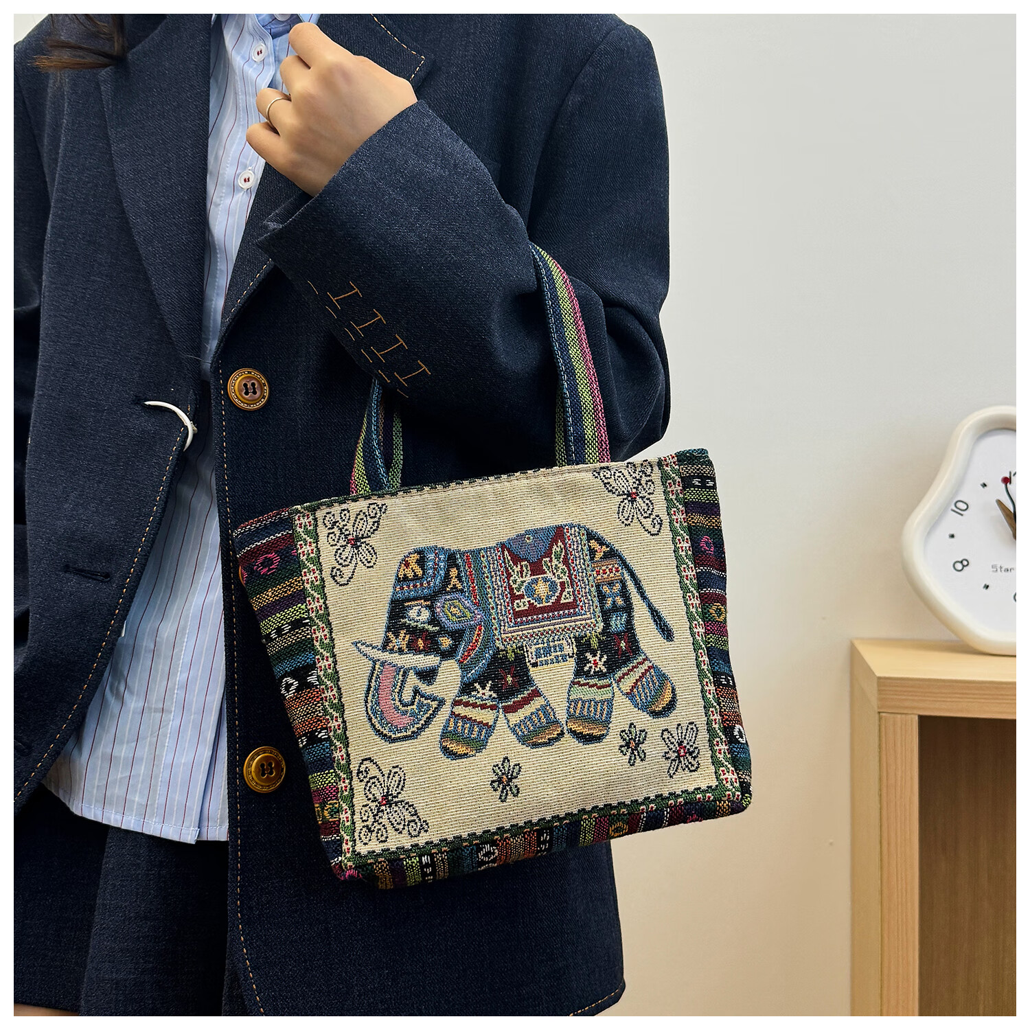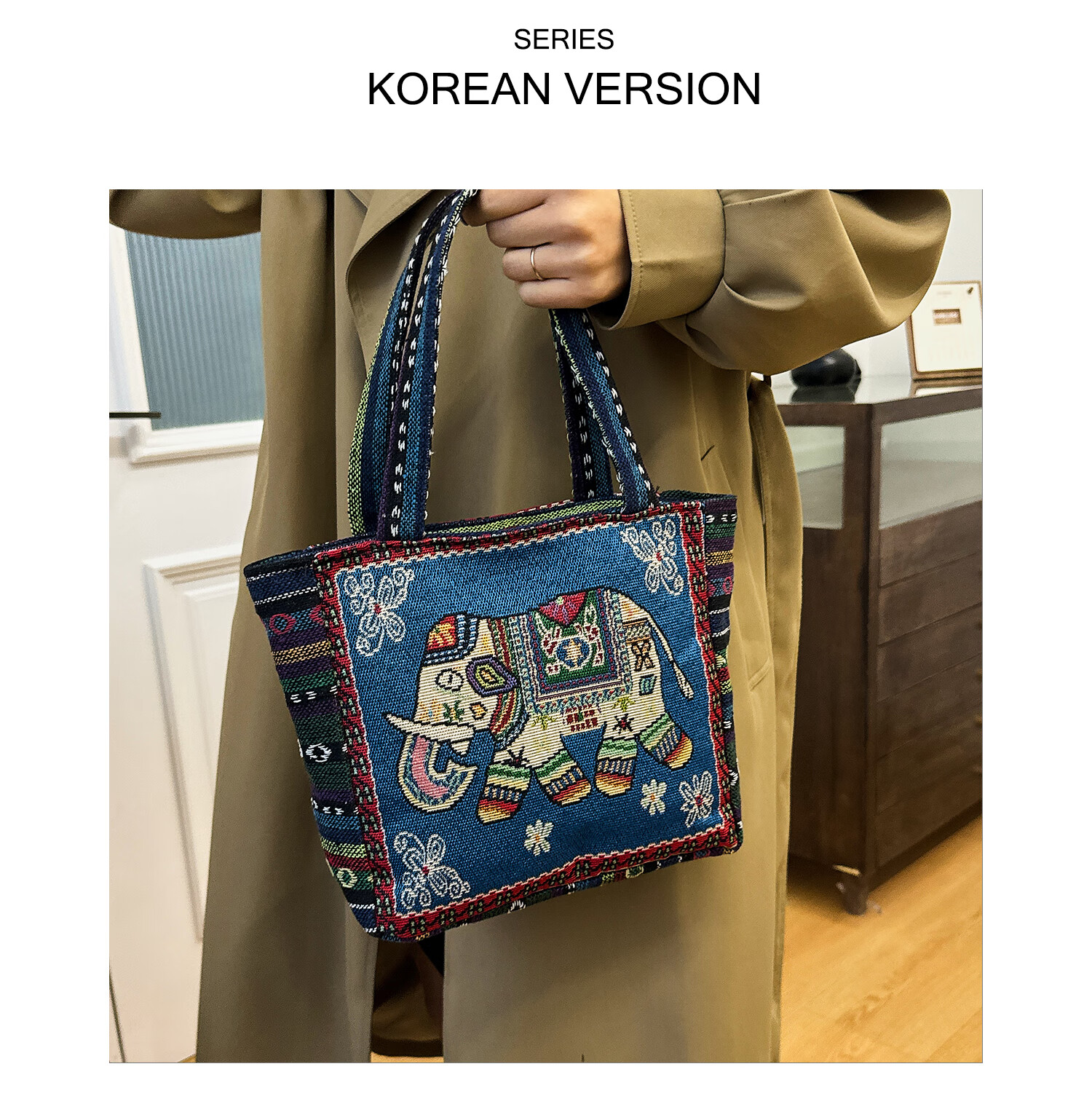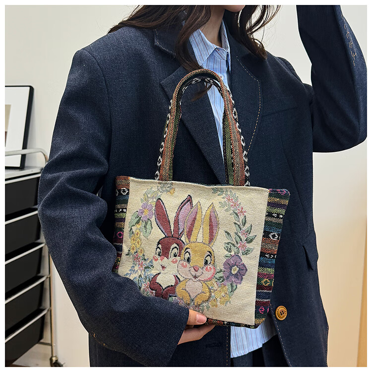 Bags for women, ethnic style embroidered handbags, literary retro shoulder bags, large-capacity embroidered handbags, tote bags, Elephant in the Sea of Flowers/