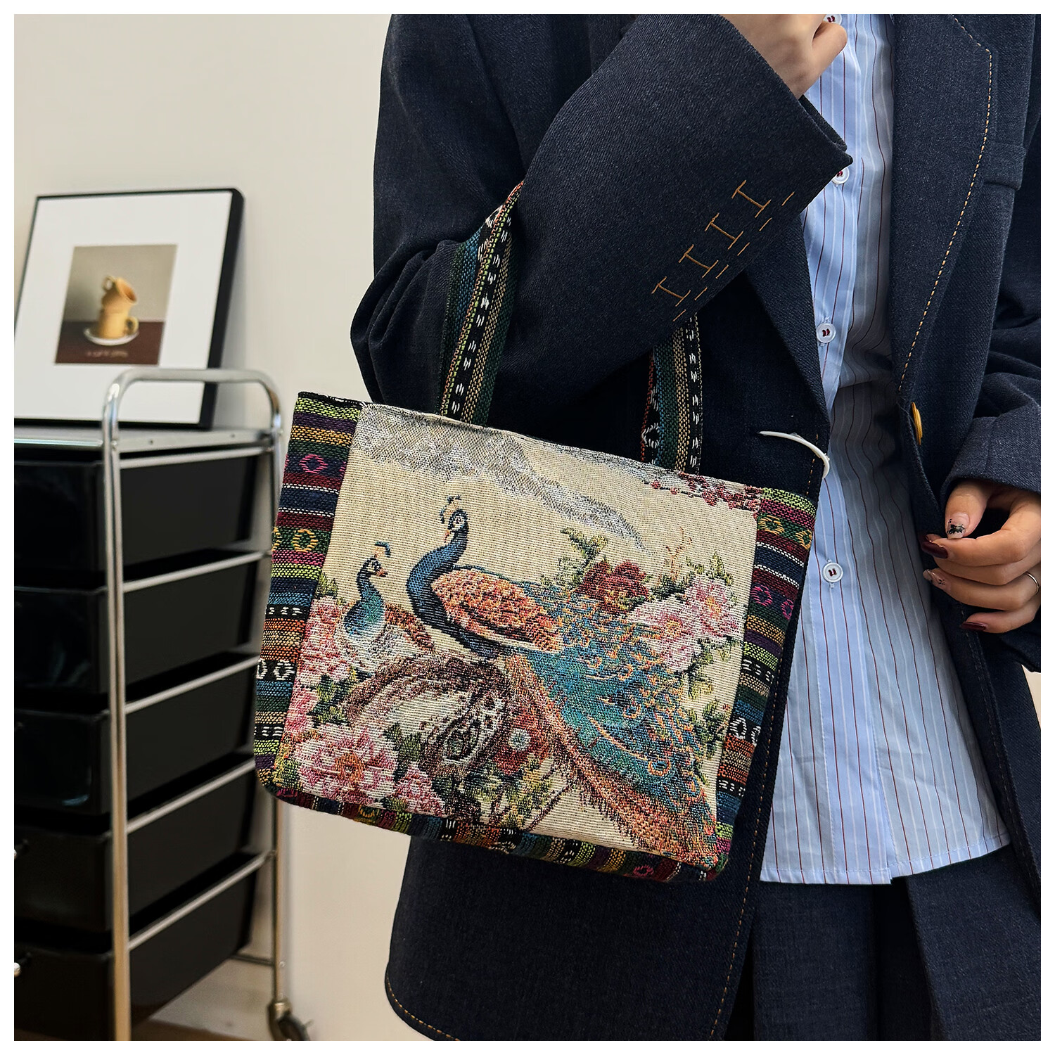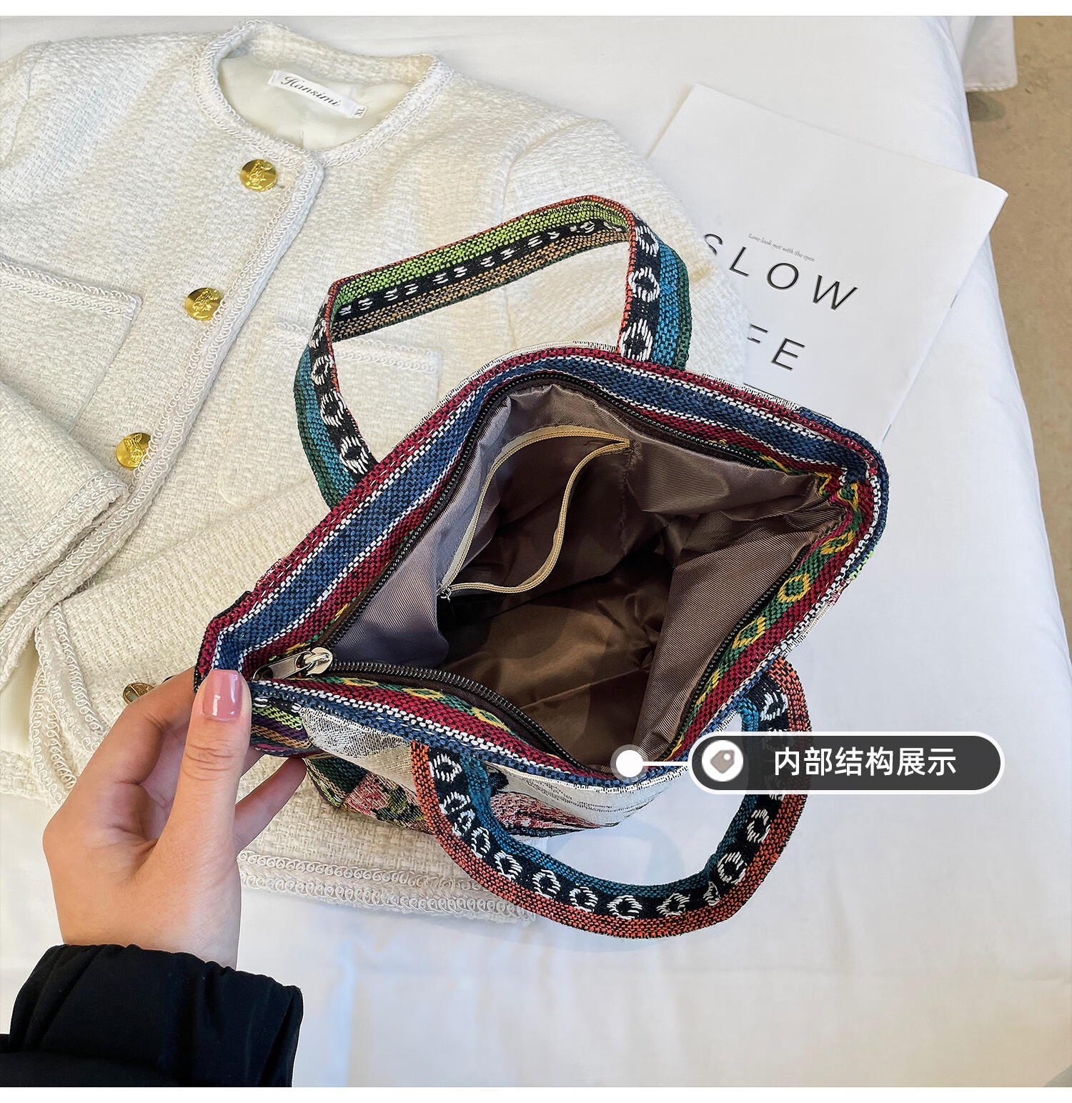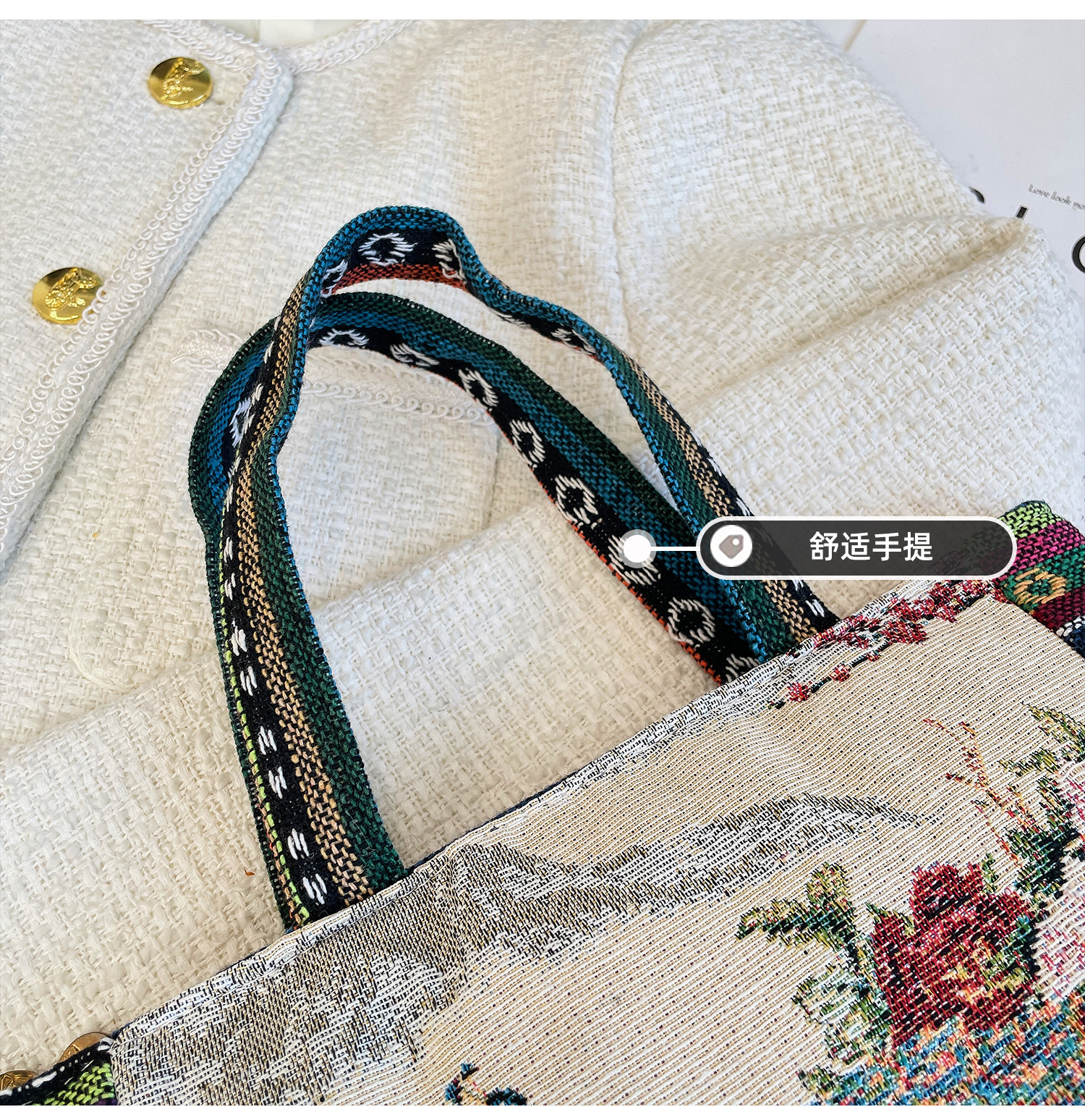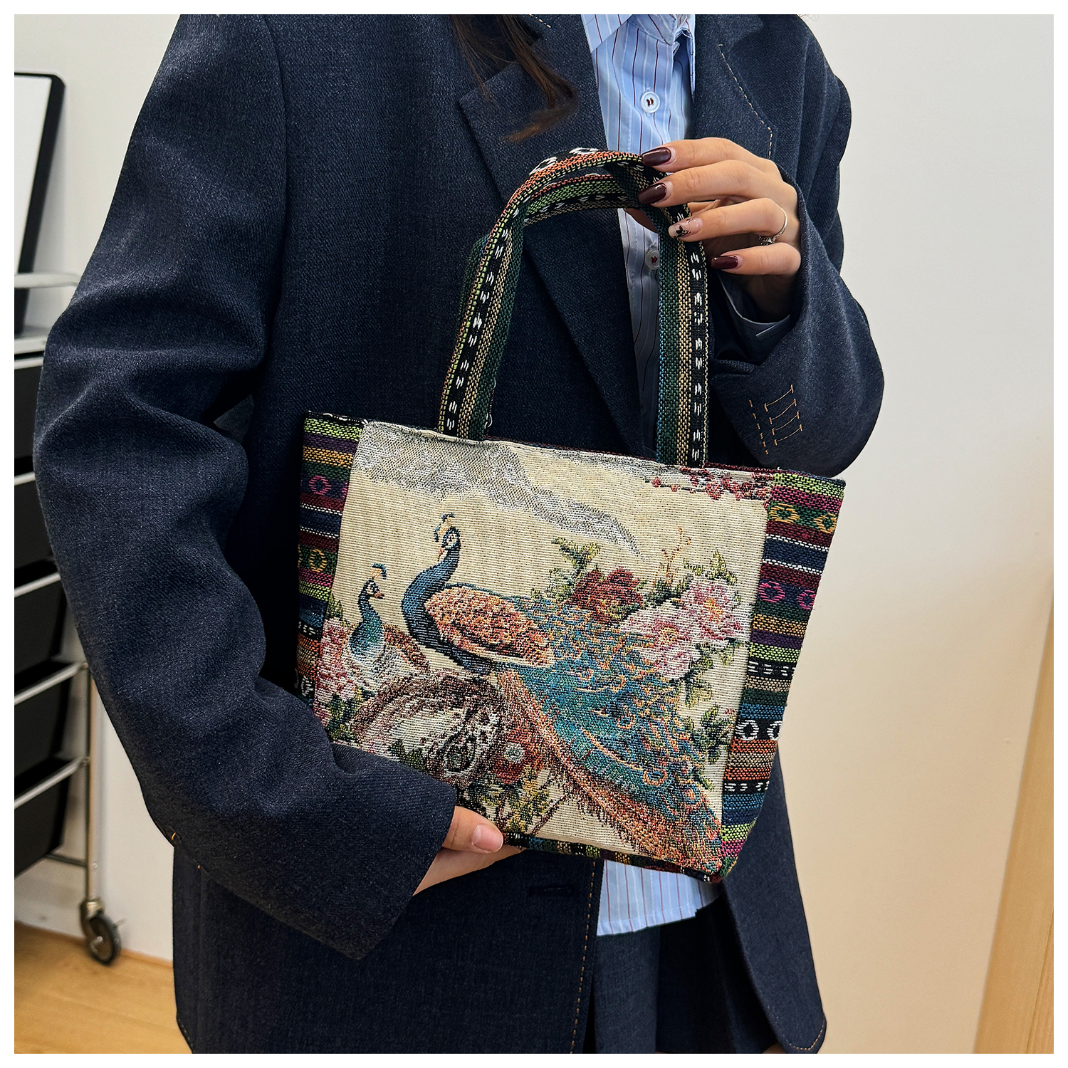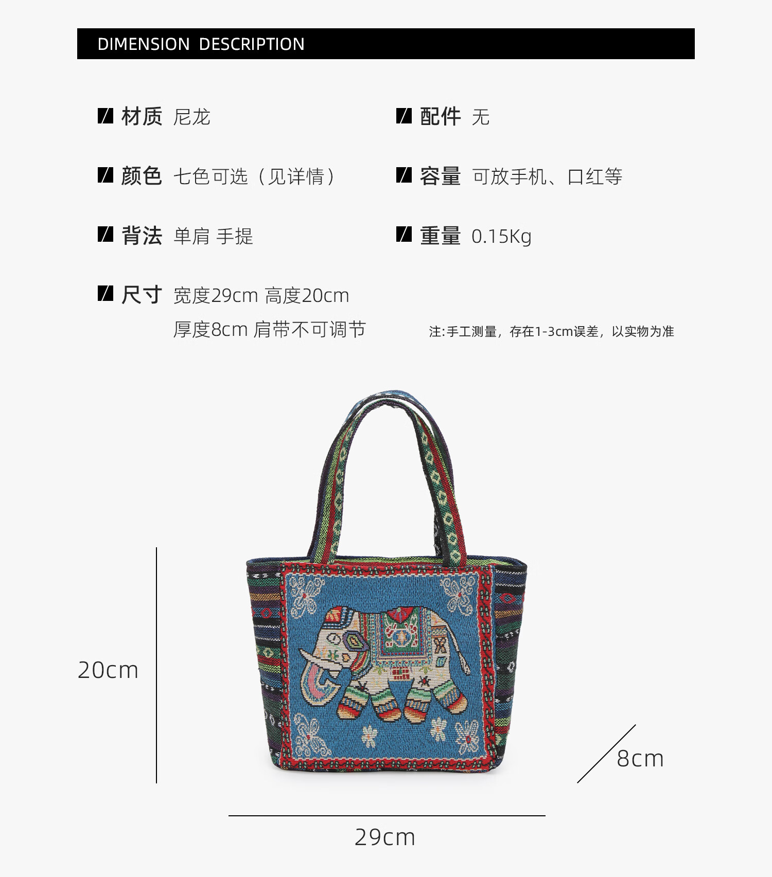 Bags for women, ethnic style embroidered handbags, literary retro shoulder bags, large-capacity embroidered handbags, tote bags, Elephant in the Sea of Flowers/