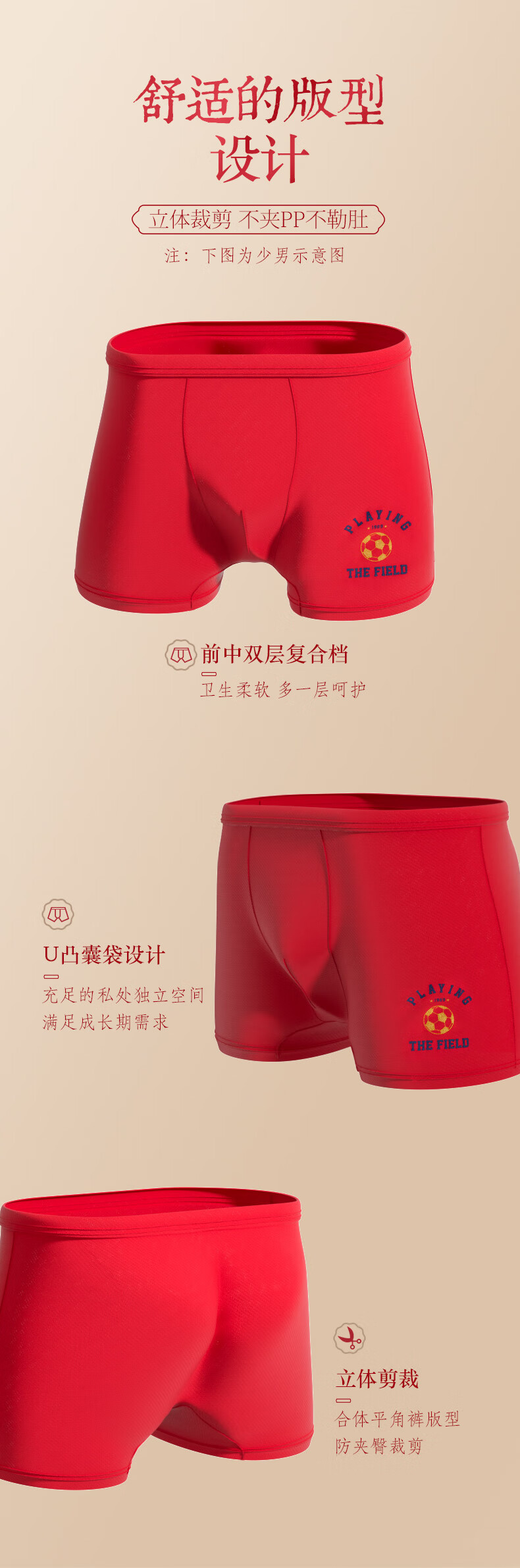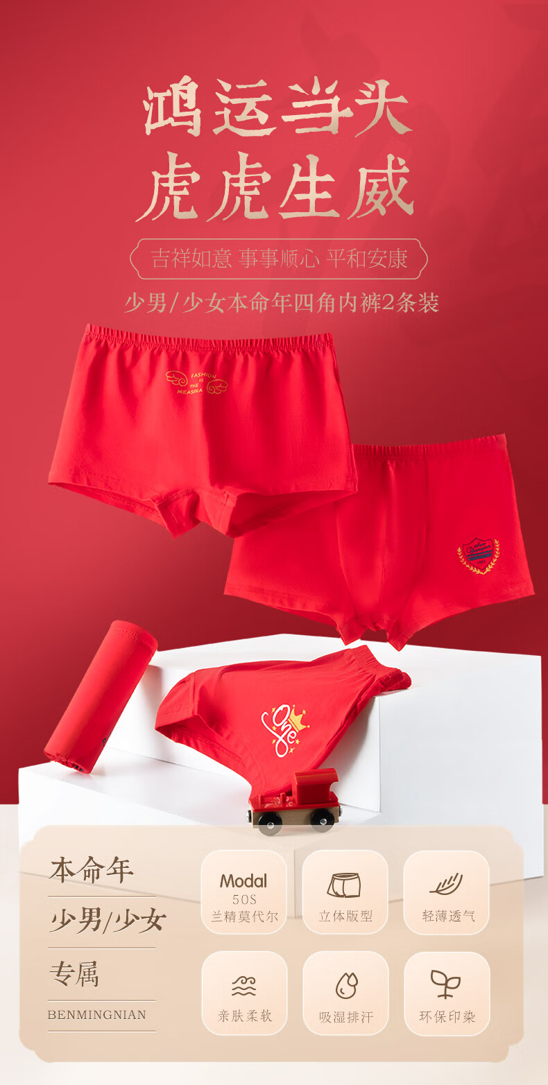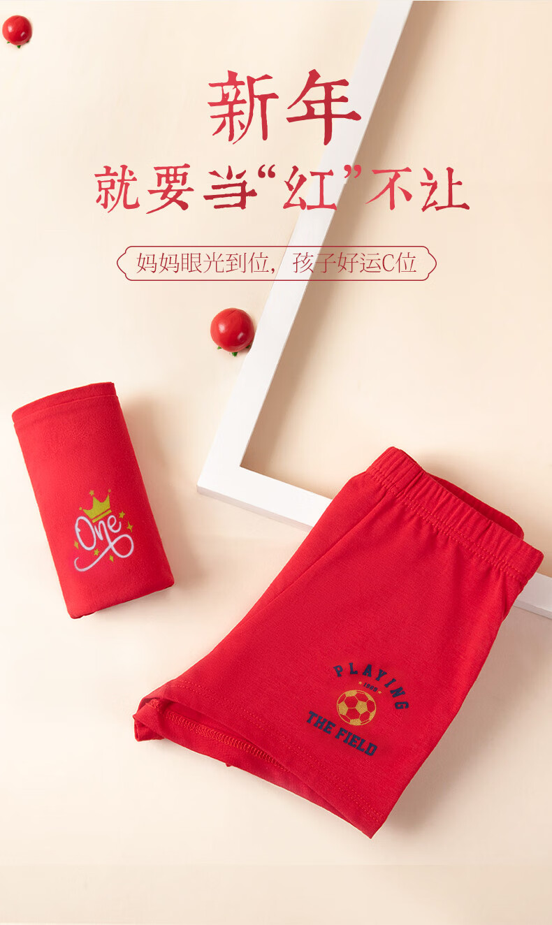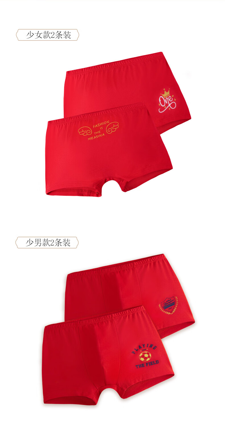 Inboron Horse Year Children's Zodiac Year Underwear Boys and Girls Big Red Boxer Briefs Modal Medium and Large Children's Boxer Boys 2 Pairs 175
