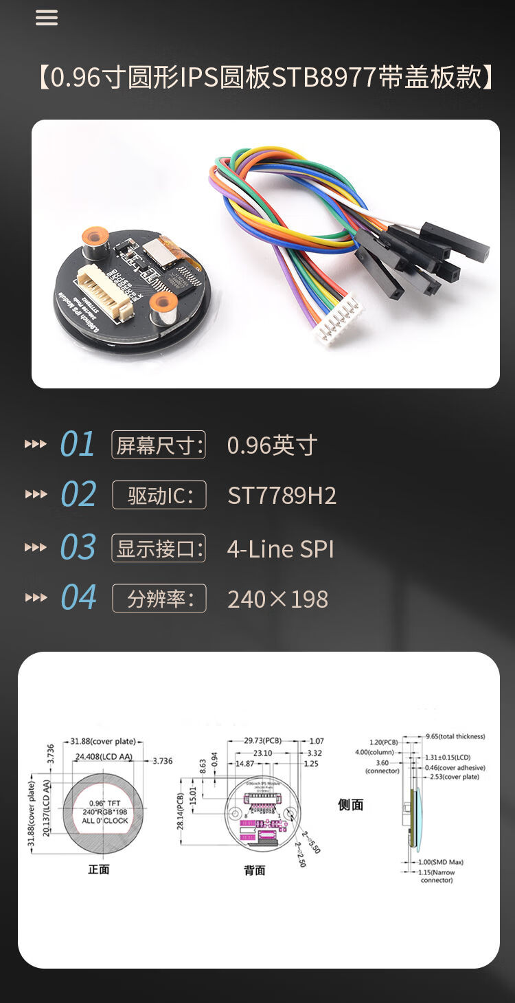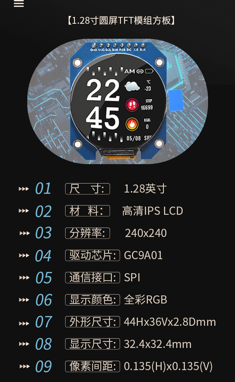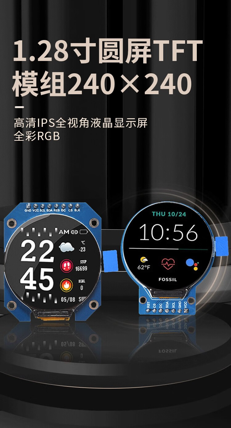 1.28-inch round screen TFT module 240x240 high-definition IPS full viewing angle LCD display full 1.28-inch color IPS screen 7-pin module round plate
