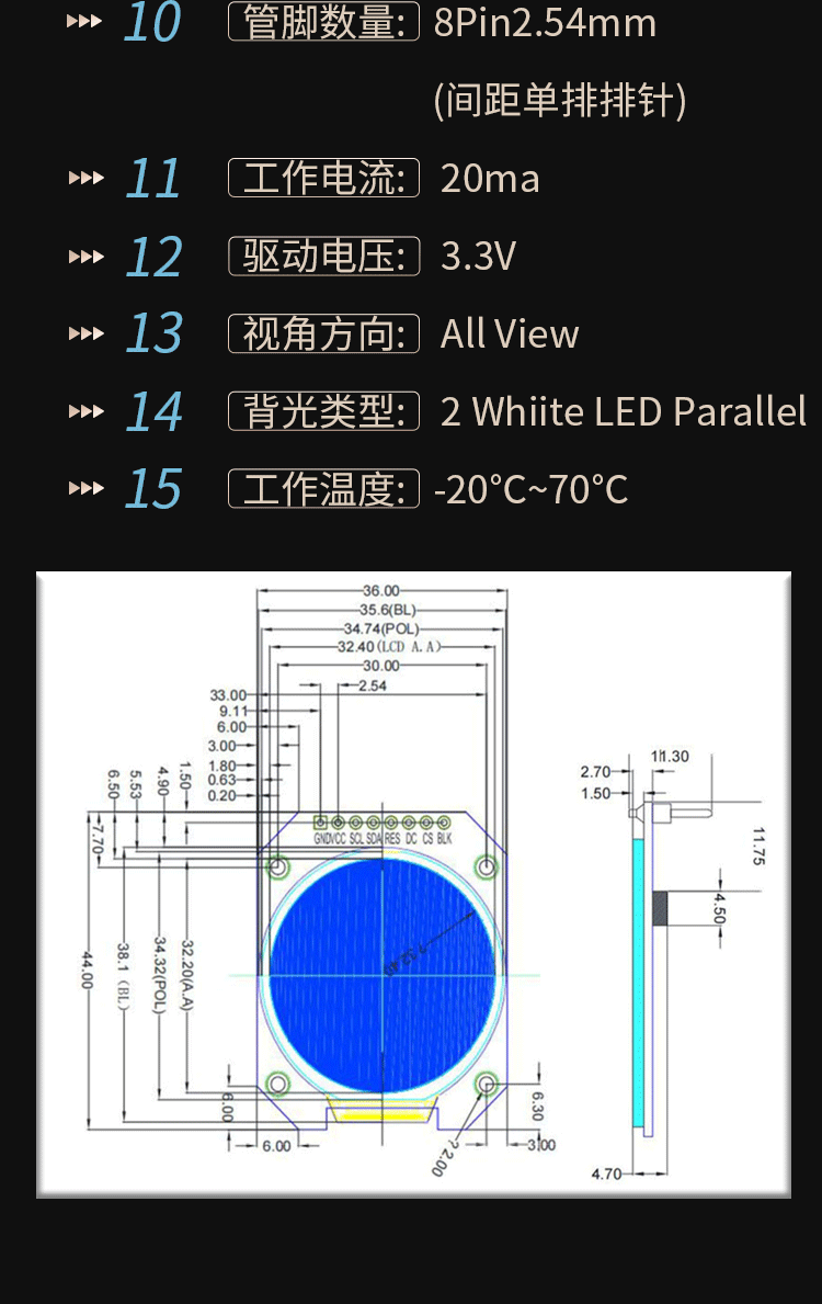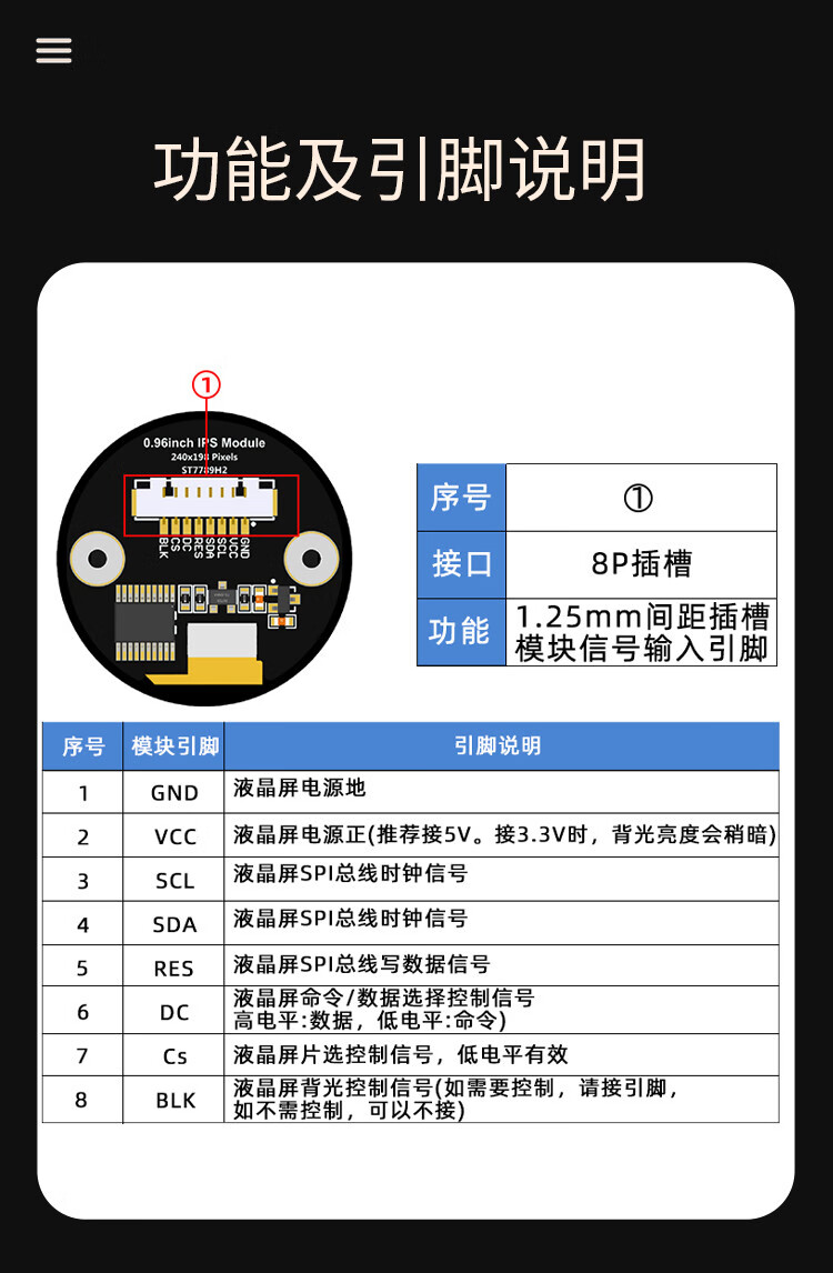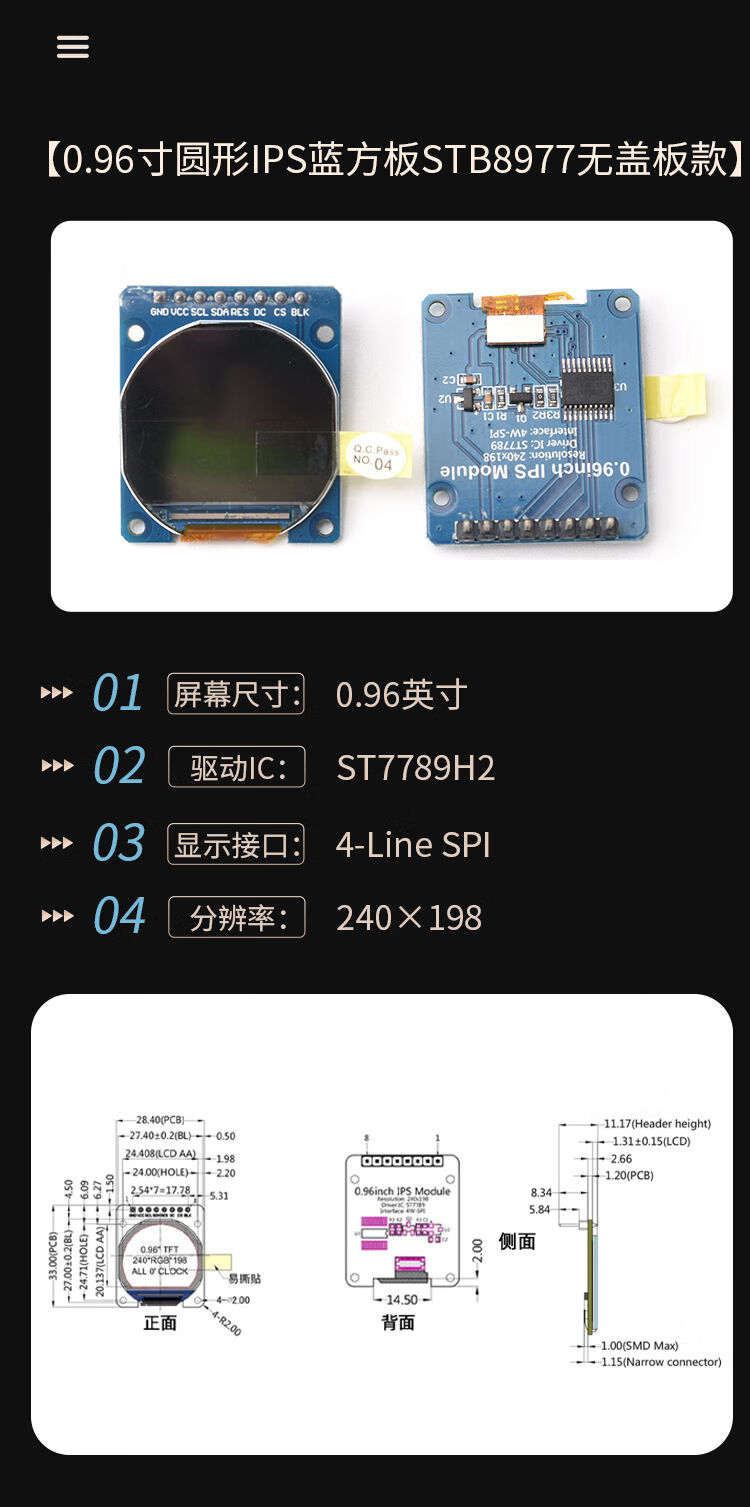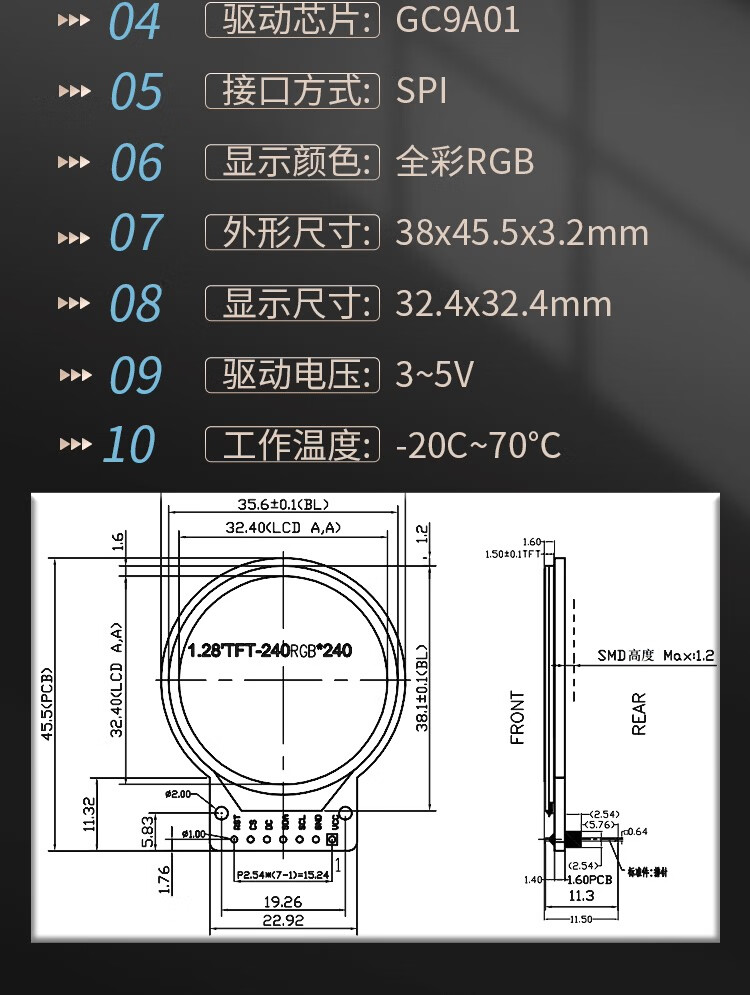 1.28-inch round screen TFT module 240x240 high-definition IPS full viewing angle LCD display full 1.28-inch color IPS screen 7-pin module round plate