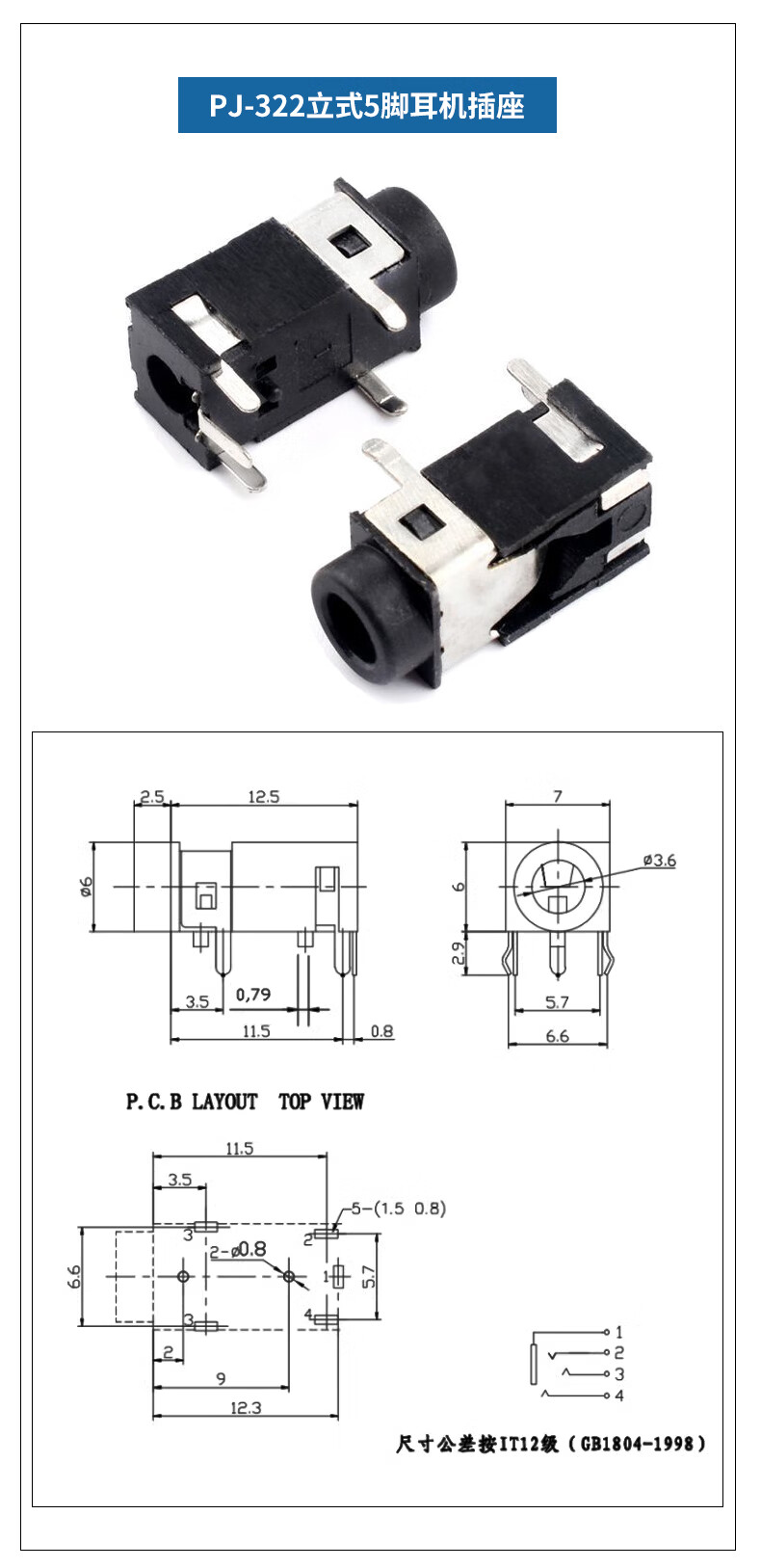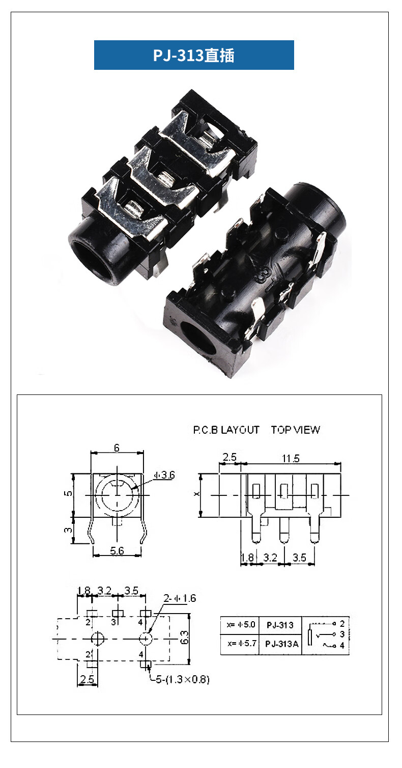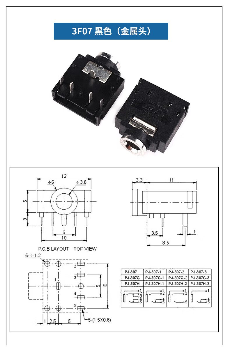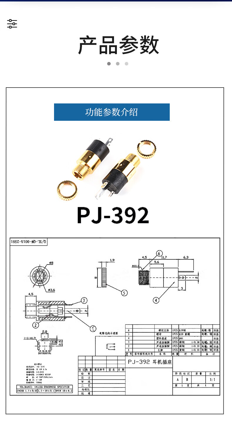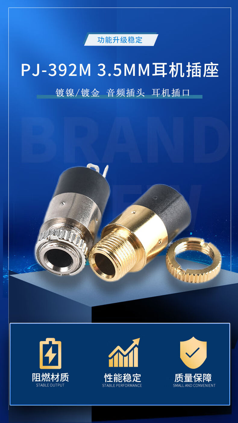 PJ-392 headphone socket 3.5MM audio socket stereo two-channel 3-pin vertical nickel-plated gold-plated audio socket PJ359 (5 pieces)