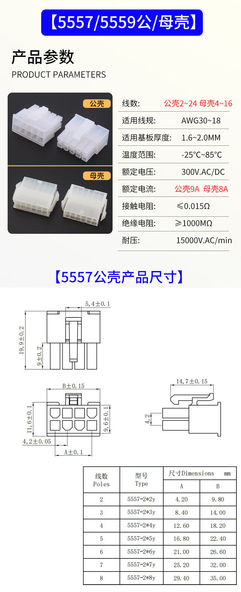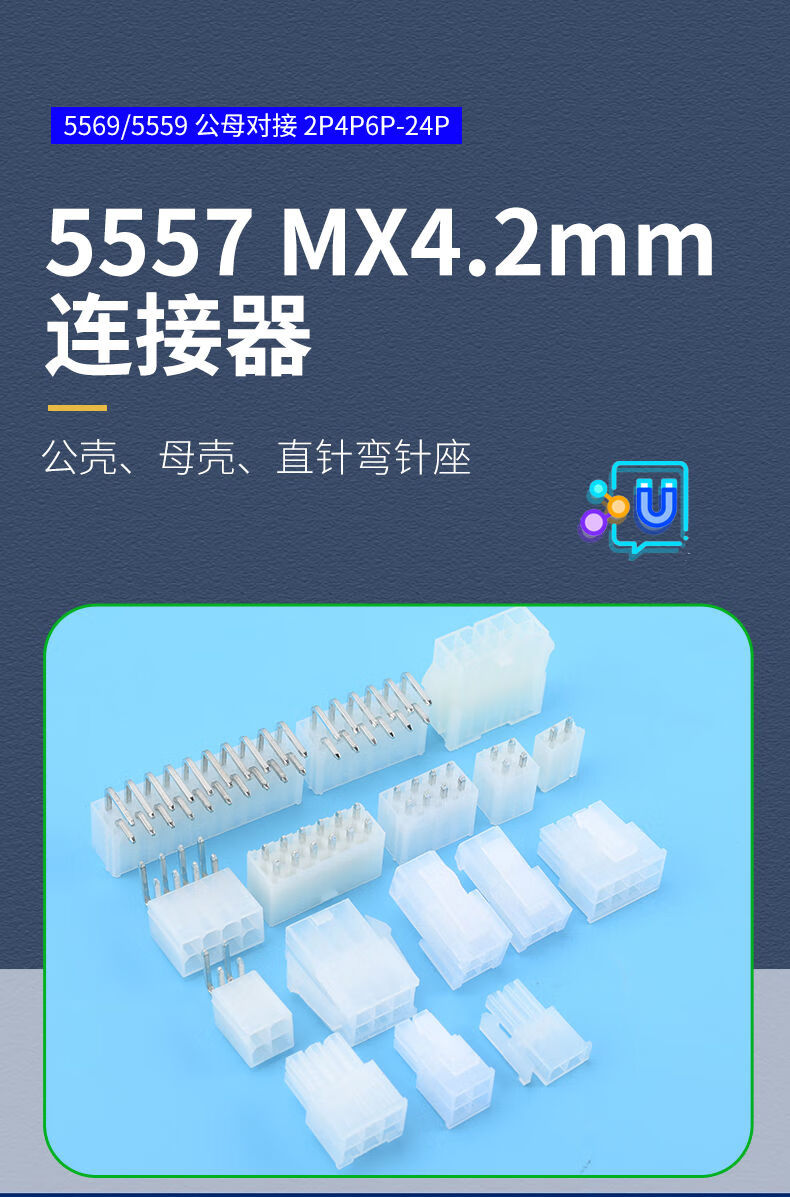 5557 connector MX4.2mm pitch connector 5569/5559 male and female docking 5557 male shell 8P (2*4) (10 pieces)