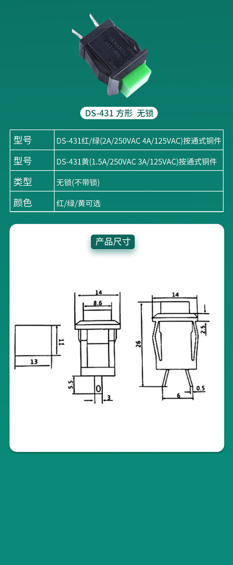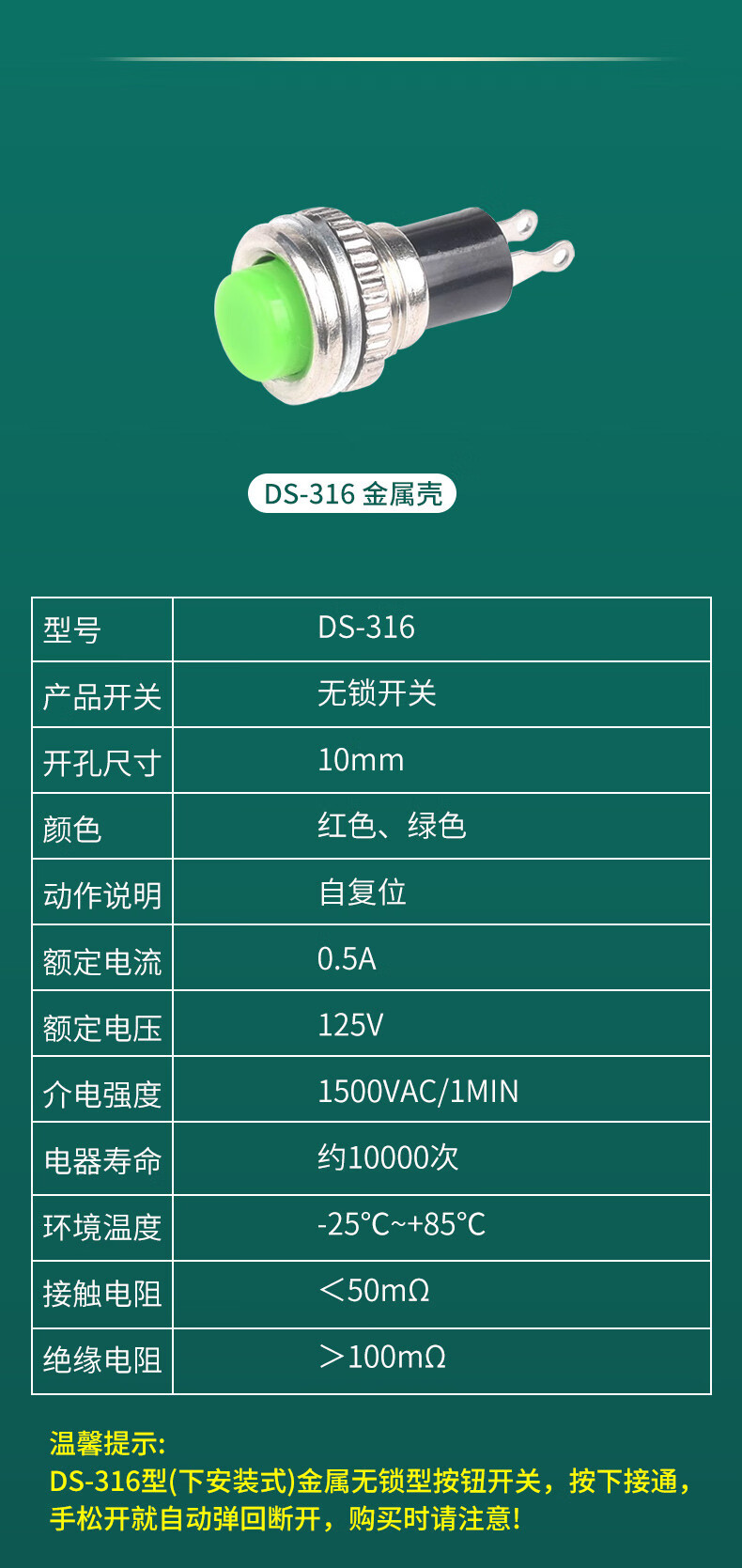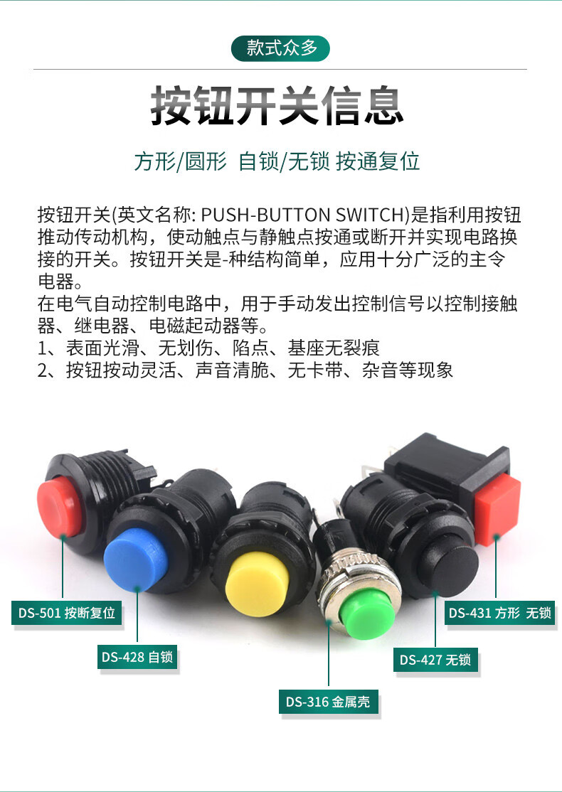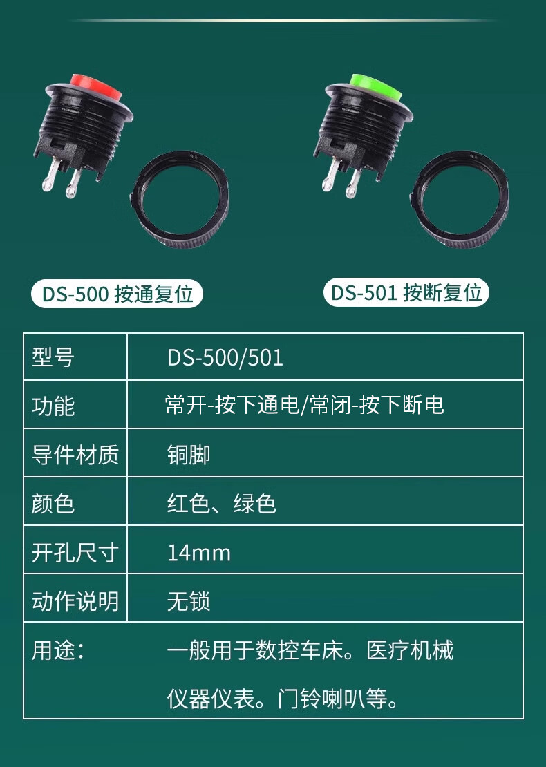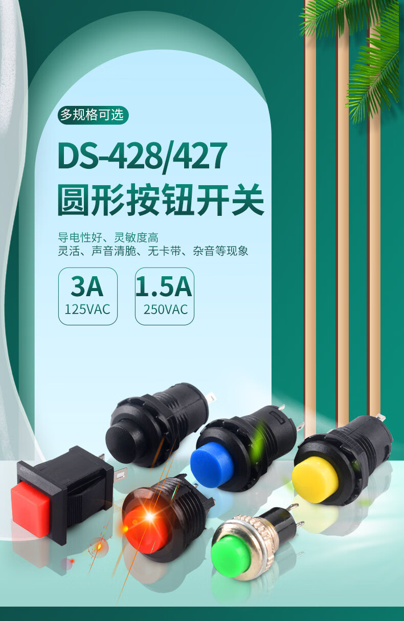 Button switch round DS-428/427/316/431 self-locking no lock reset red yellow green button 12/14mm DS-428 self-locking red button (2 pieces)
