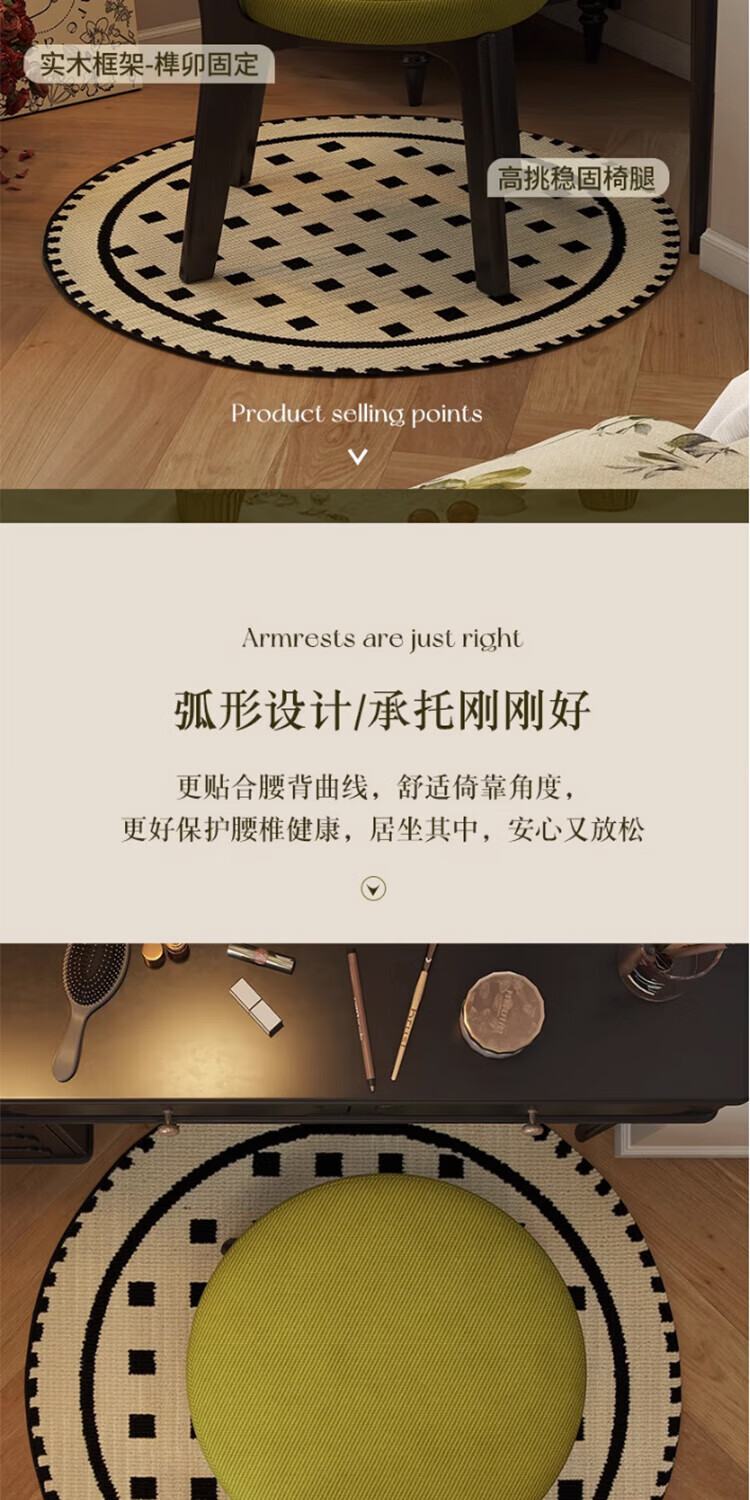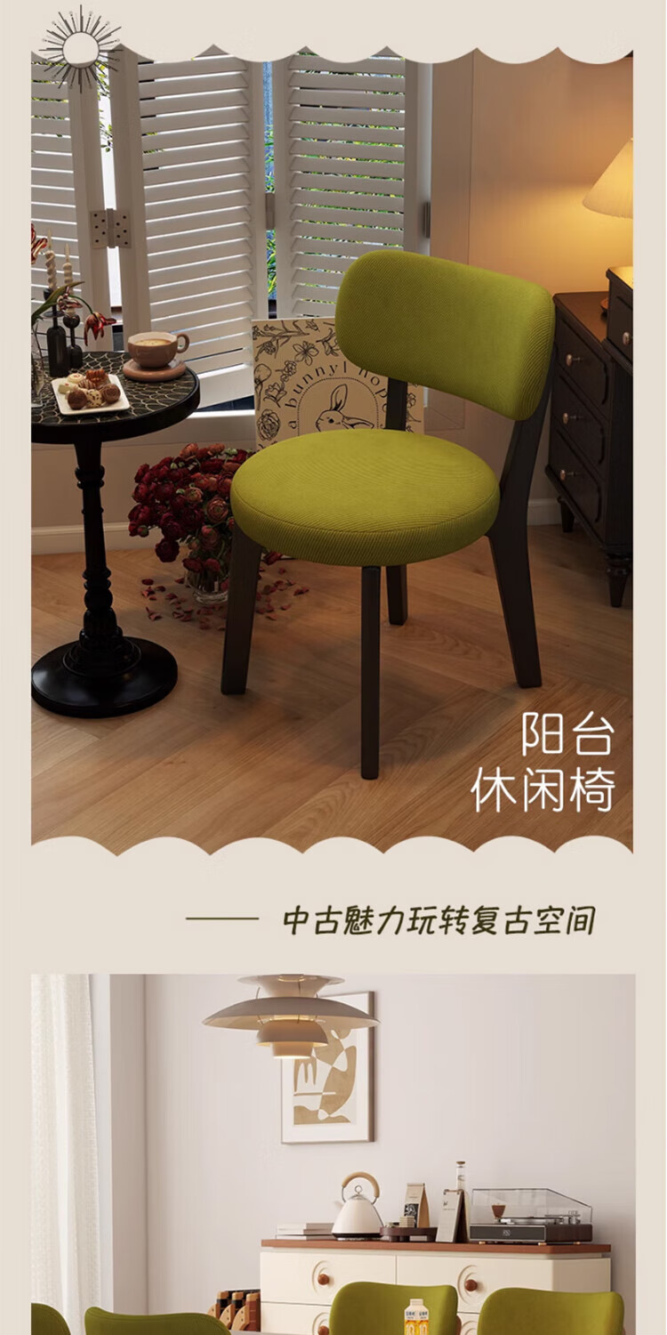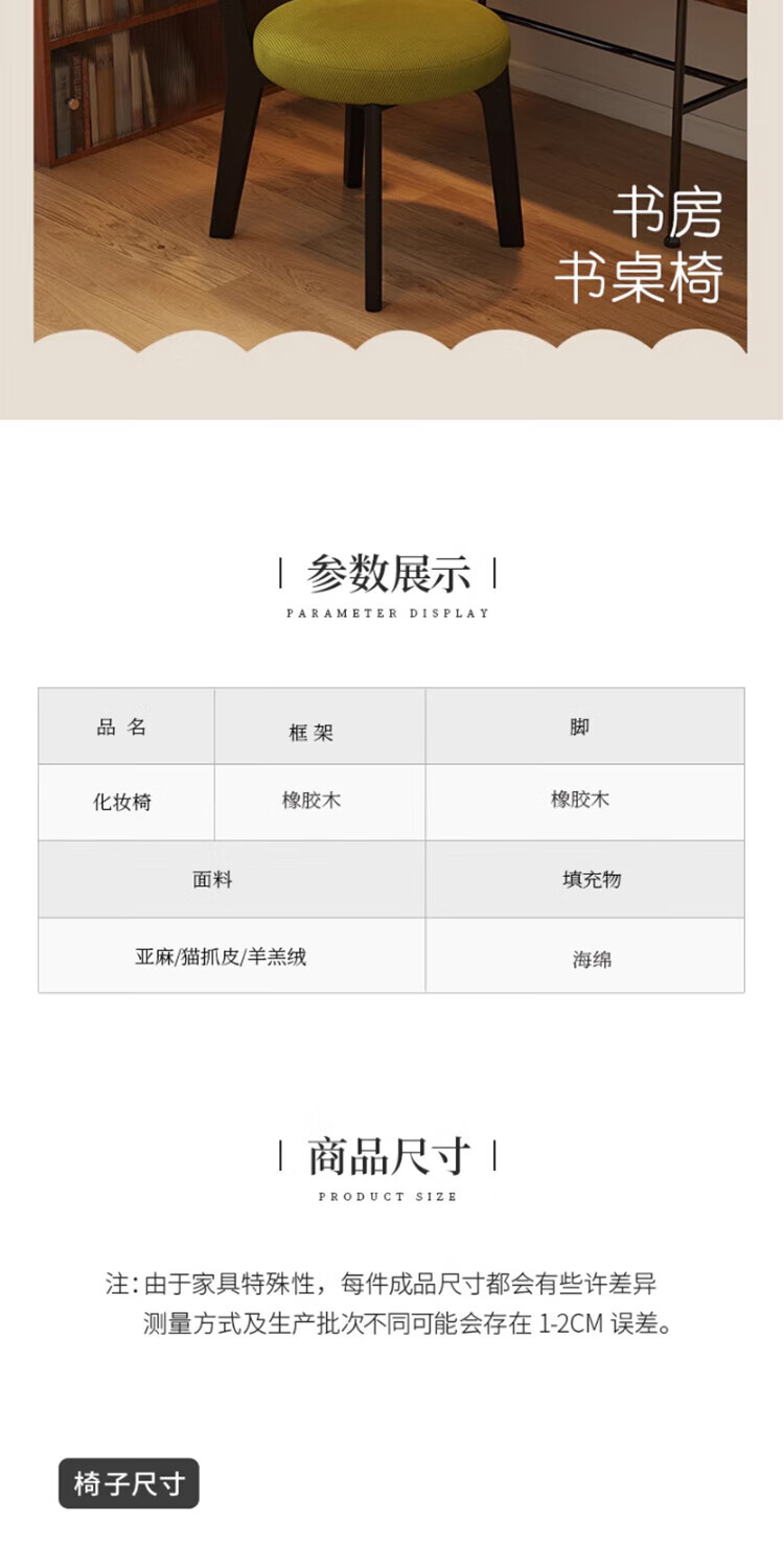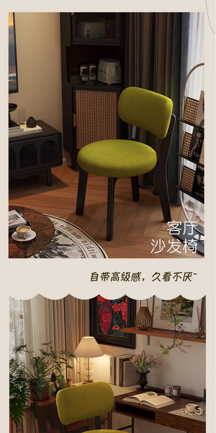 OUJI solid wood second-hand dressing chair, makeup stool, bedroom dressing table, makeup chair, light luxury dressing room, creative dressing stool, grass green cotton and linen + ebony frame
