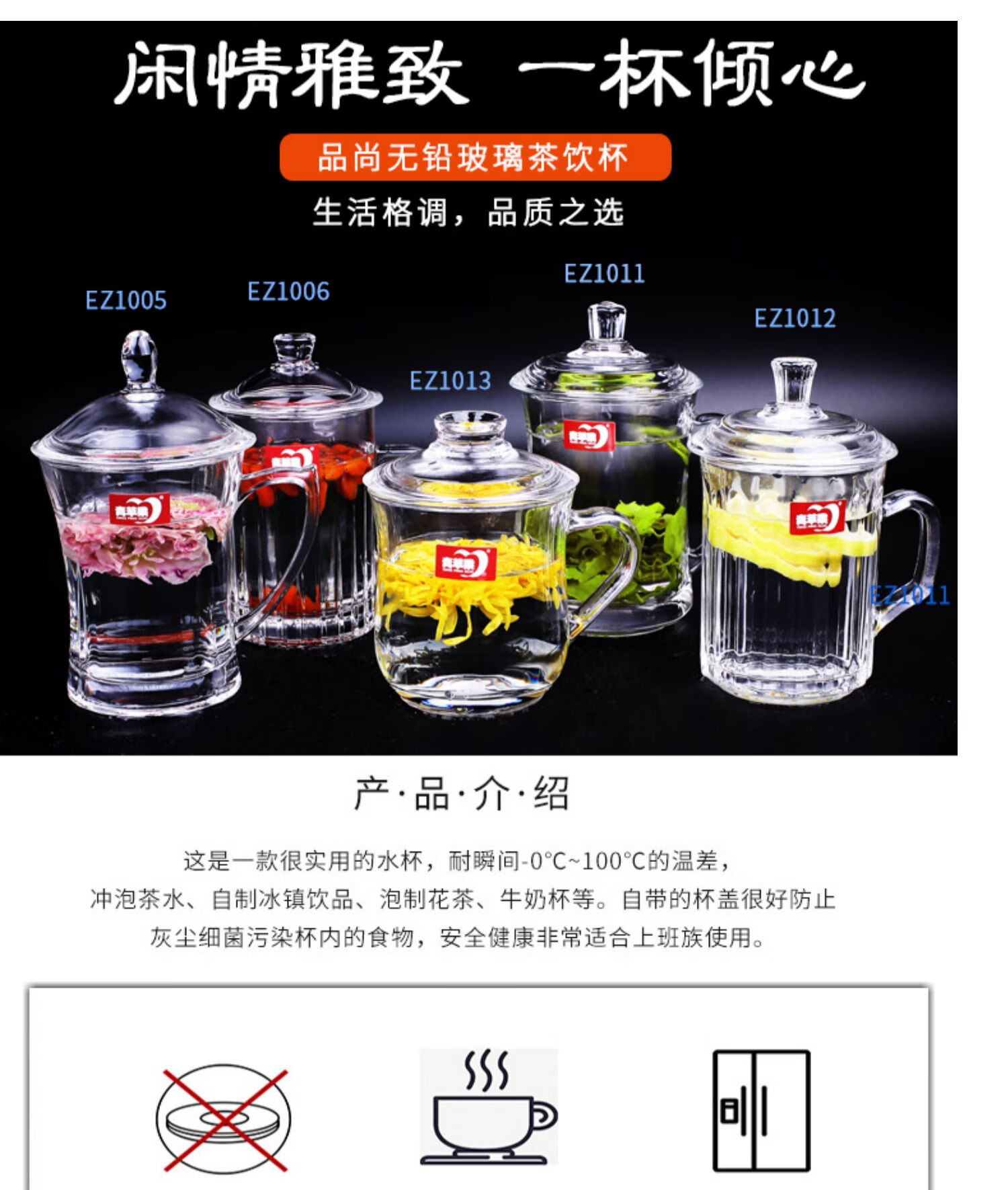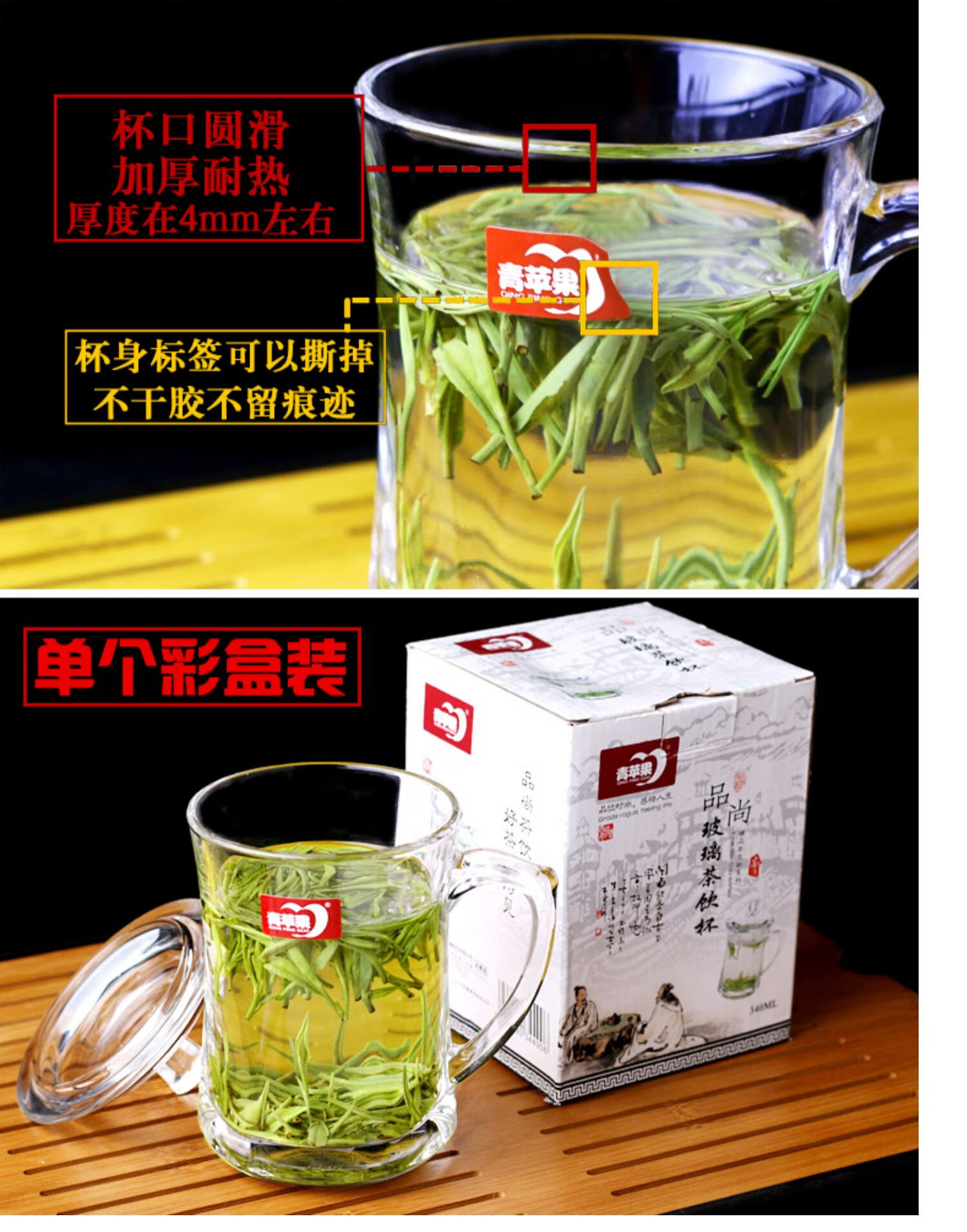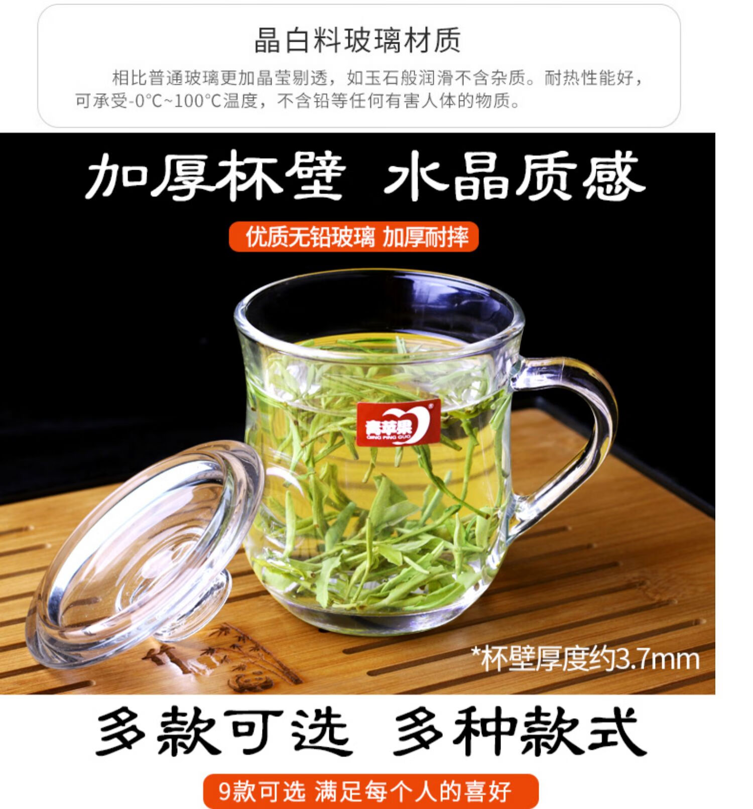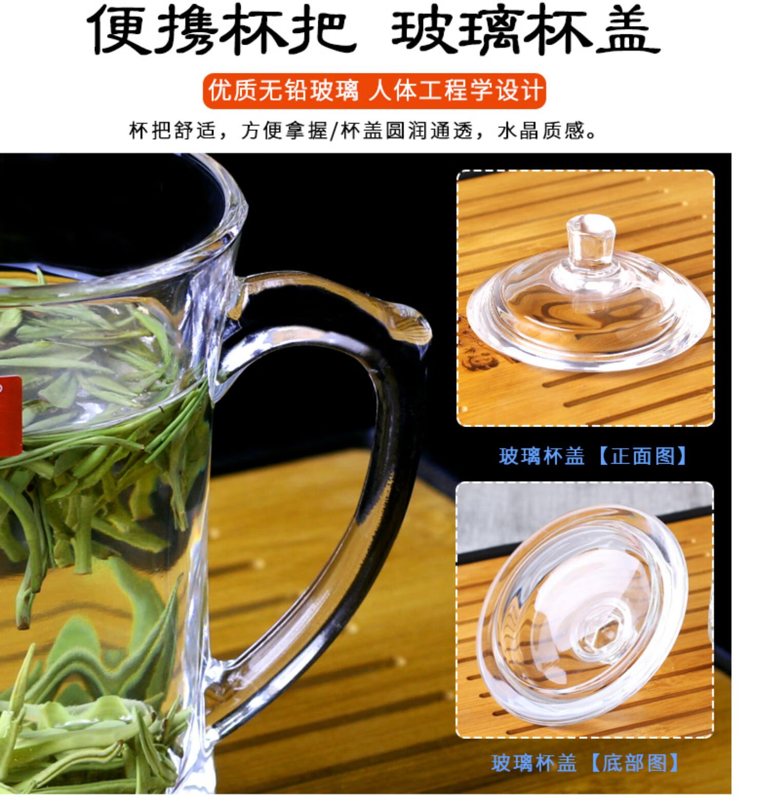 NOTICS household glass drinking cup tea cup office covered male and female water cup with handle large capacity with lid DSZ002 425ML