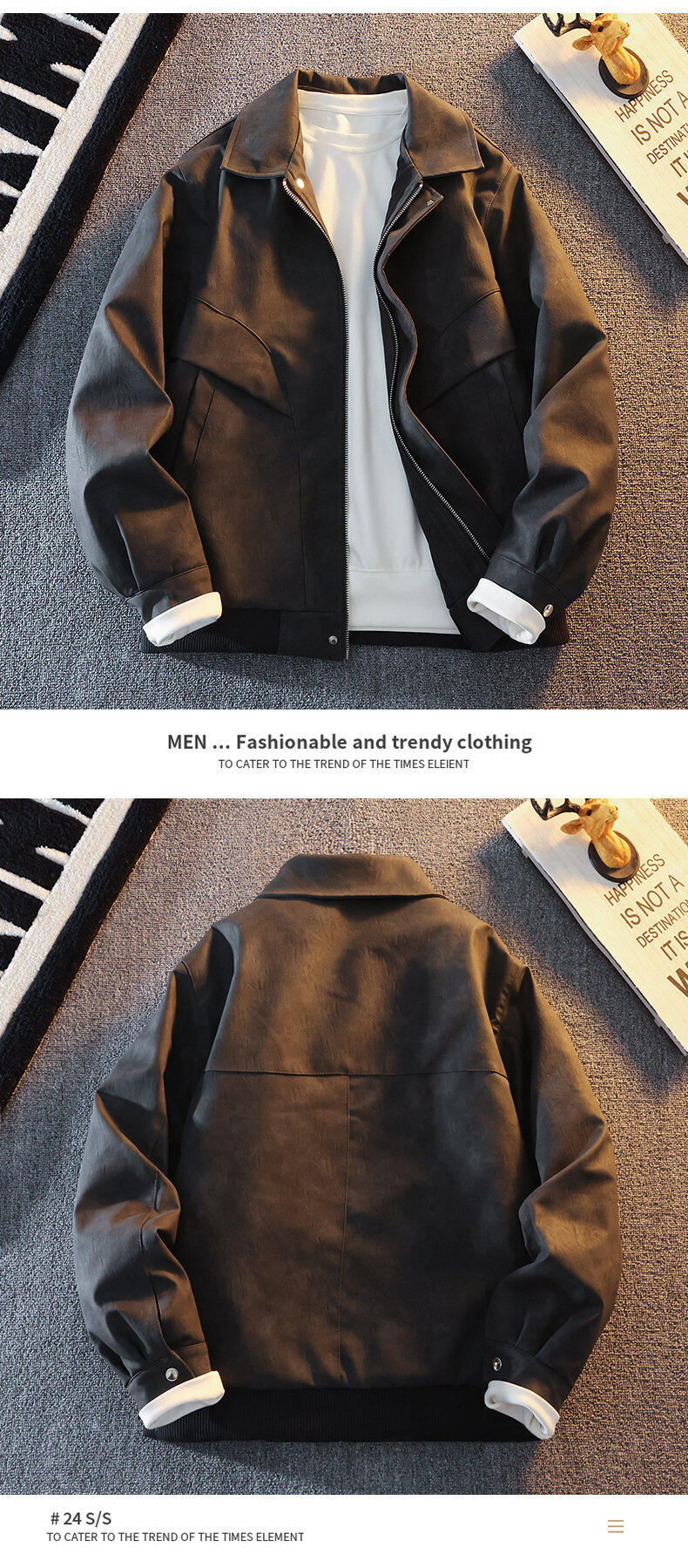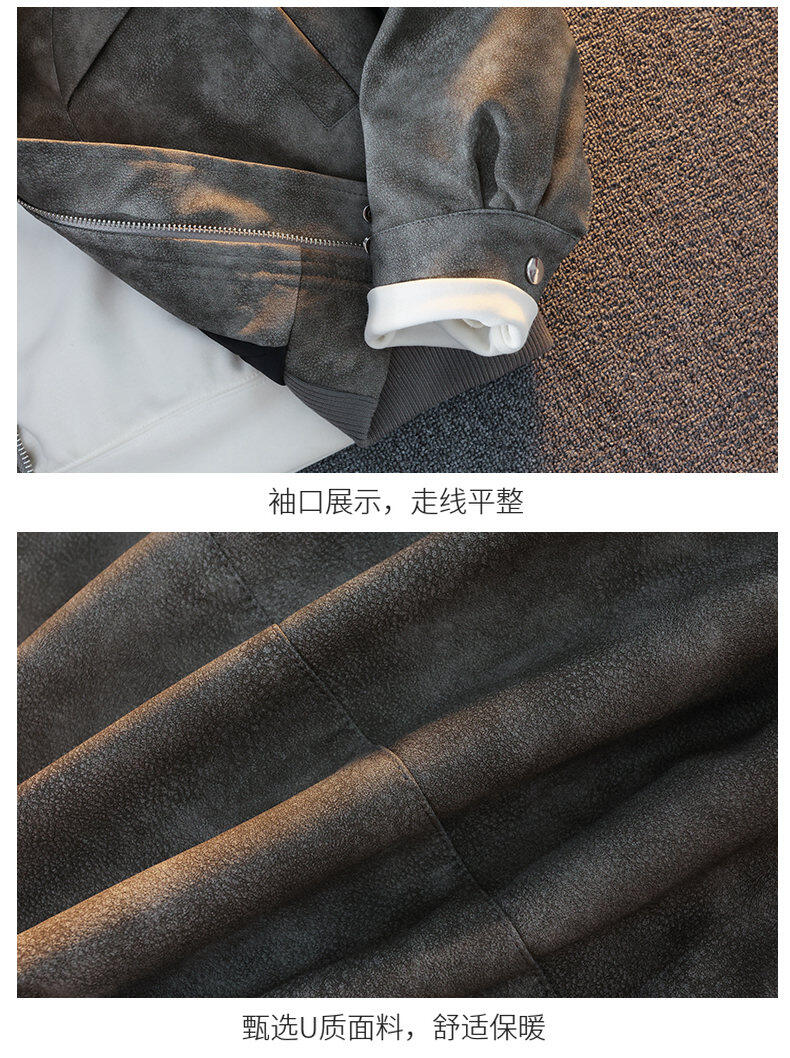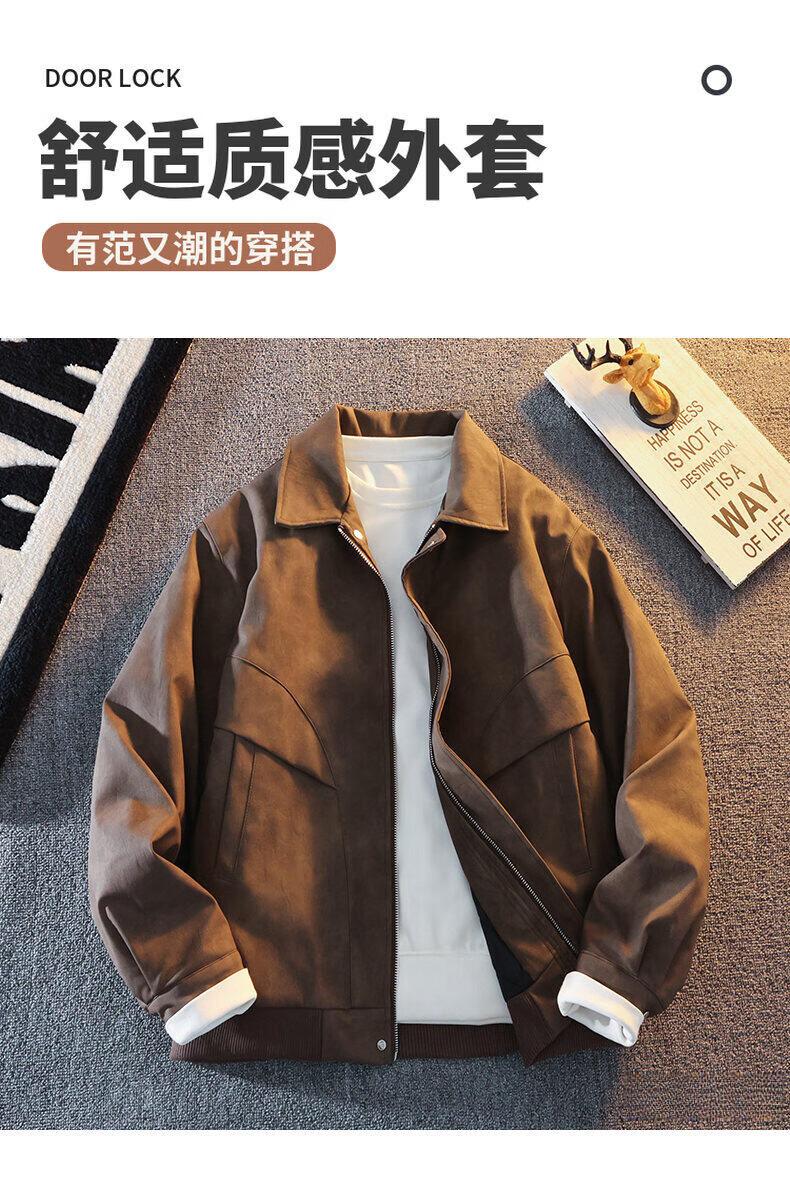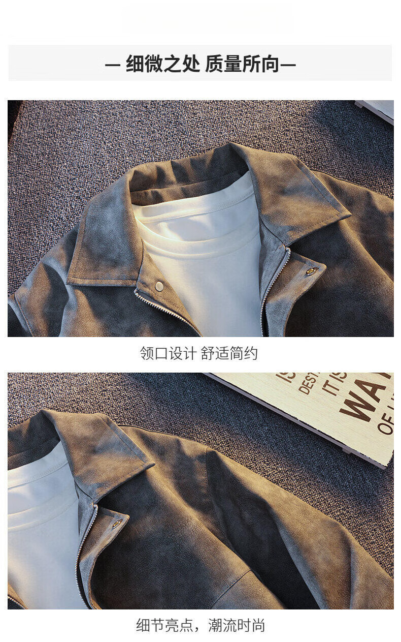 Woodpecker's new Maillard style American retro leather jacket for men 2025 new handsome loose pu lapel jacket coffee color XL