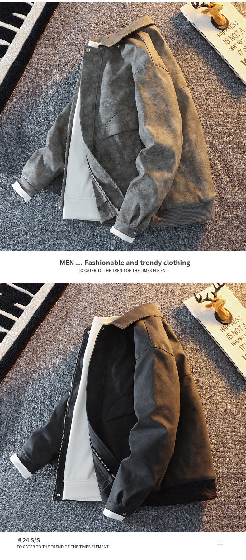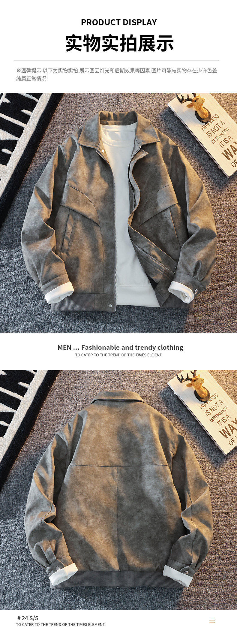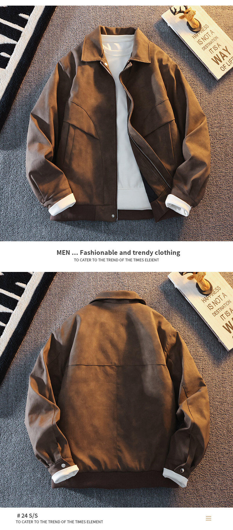 Woodpecker's new Maillard style American retro leather jacket for men 2025 new handsome loose pu lapel jacket coffee color XL