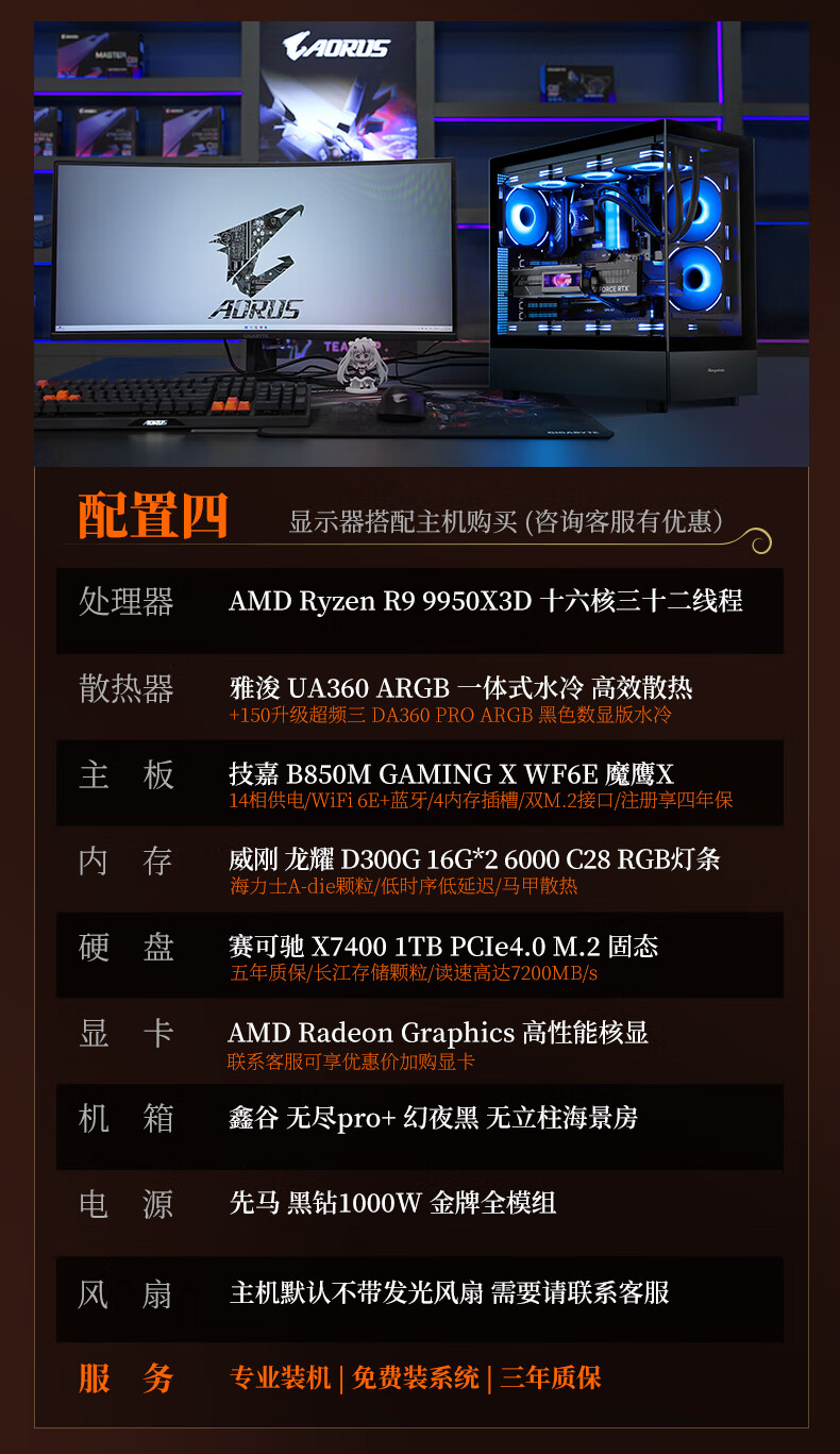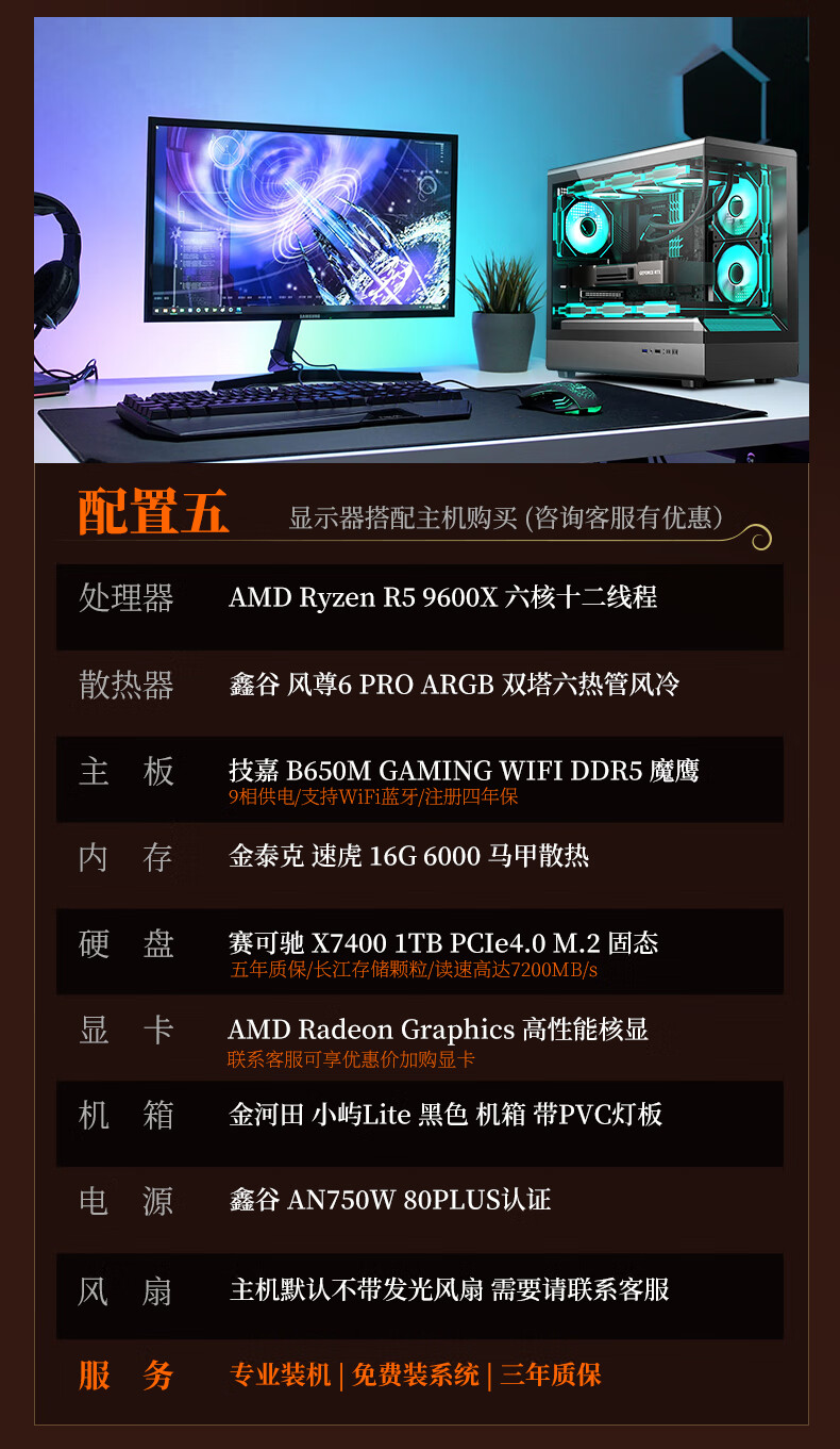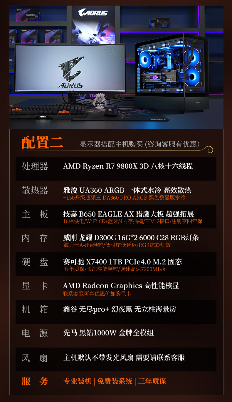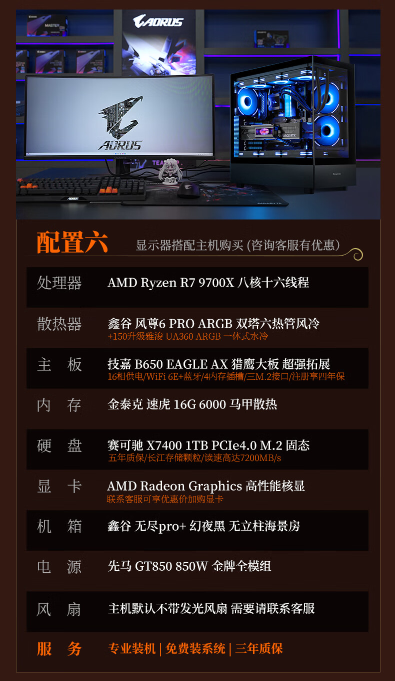 Gigabyte 24-issue interest-free AMD 7800/9800/9900X3D/9950X3D/9600X/9700X core display without graphics card thousand frames e-sports desktop assembly computer host diy with an R7 7800X3D core display cardless transition host