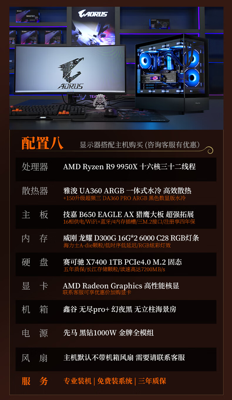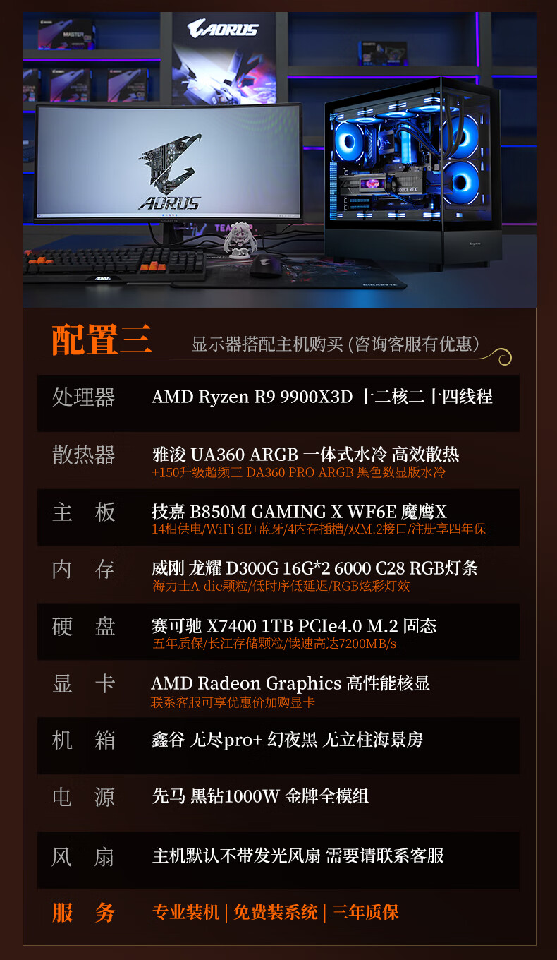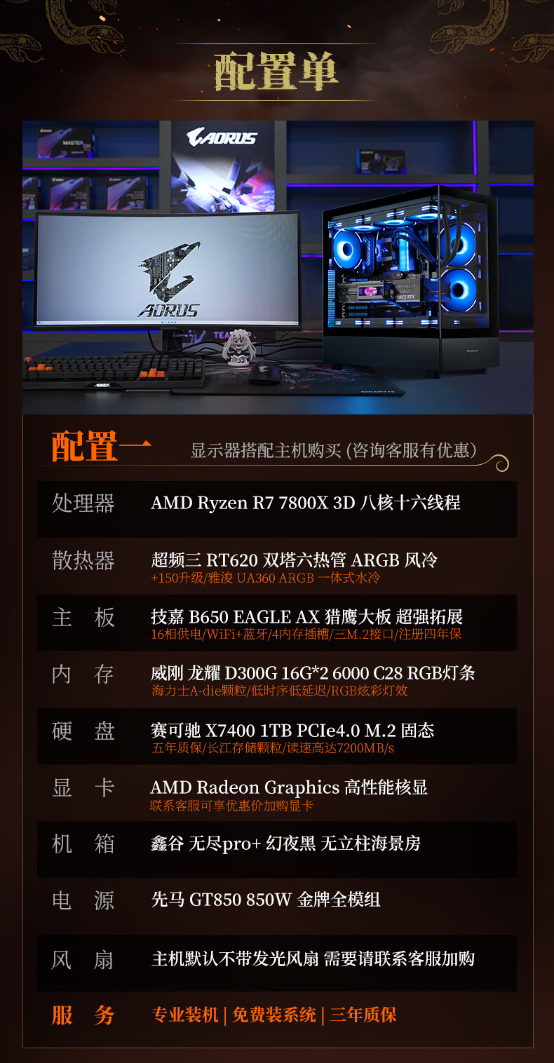 Gigabyte 24-issue interest-free AMD 7800/9800/9900X3D/9950X3D/9600X/9700X core display without graphics card thousand frames e-sports desktop assembly computer host diy with an R7 7800X3D core display cardless transition host