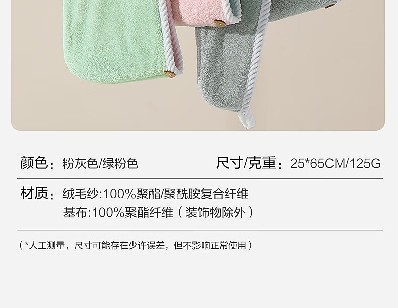 Mercury Home Textiles Hair Drying Cap Double-sided Class A Soft Strong Water Absorbent Thickened Shower Cap Bag Turban Quick-drying Hair Shampoo Towel Drying Hair Cap Class A/Double-sided Pink Gray