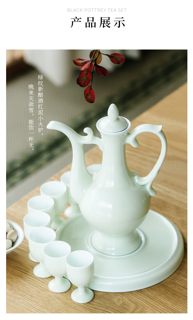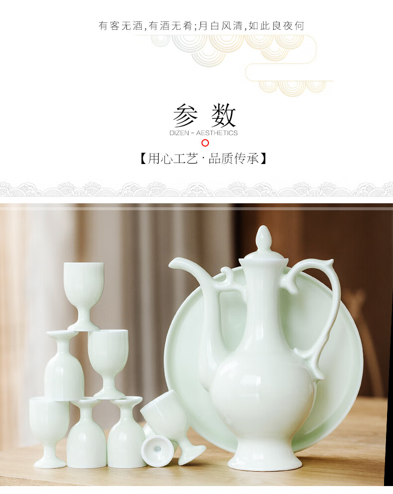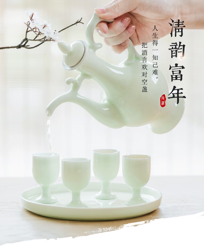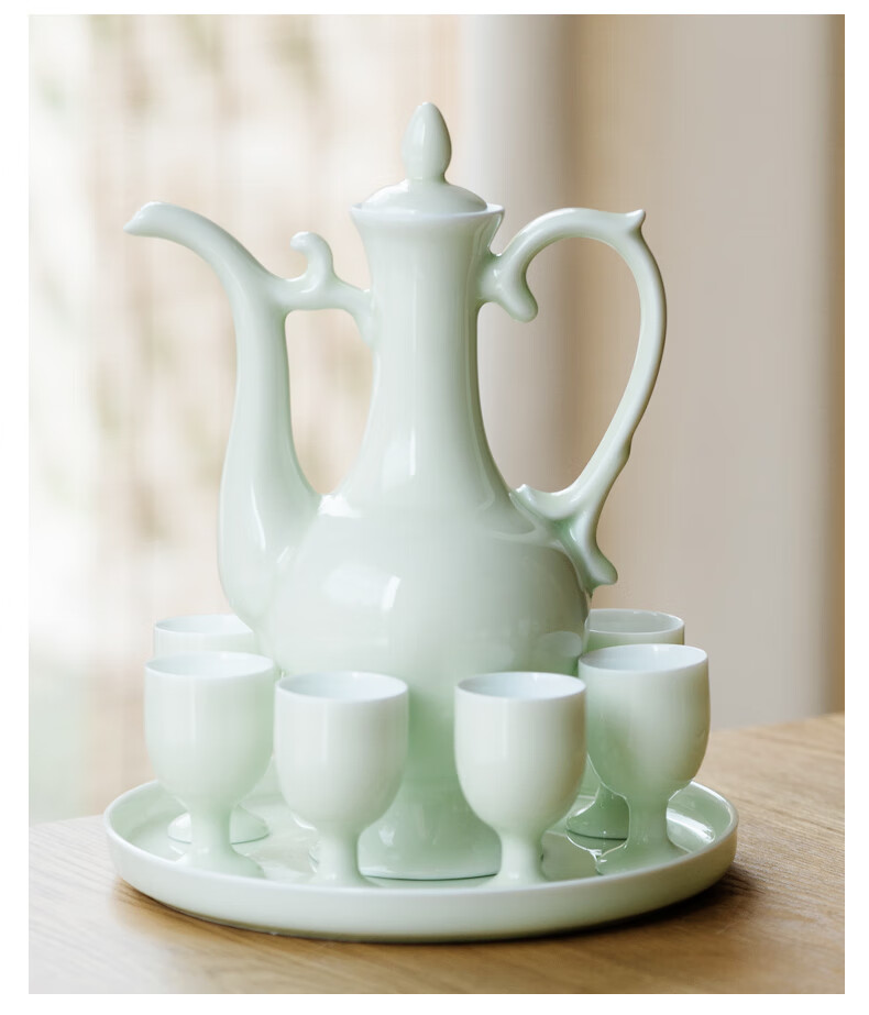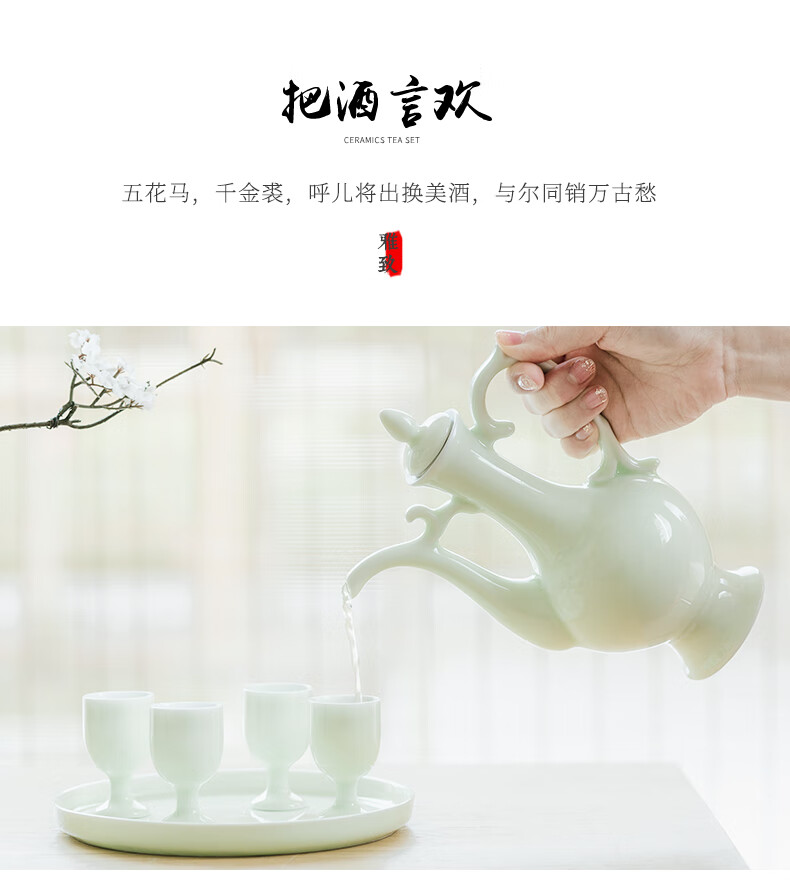 Guoyue Ceramic White Wine Cup Simple Wine Set Home Drinking Glass with Tray Gift Box Wine Jug Tall Wine Glass for Gift Blue and White Landscape Wine Set Gift Box