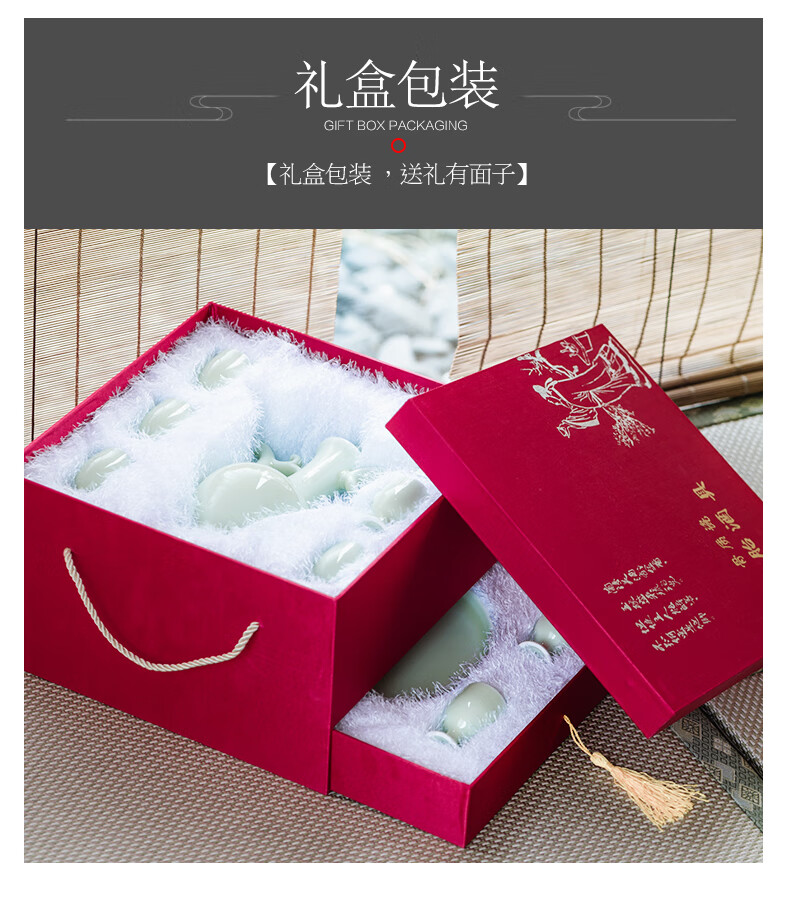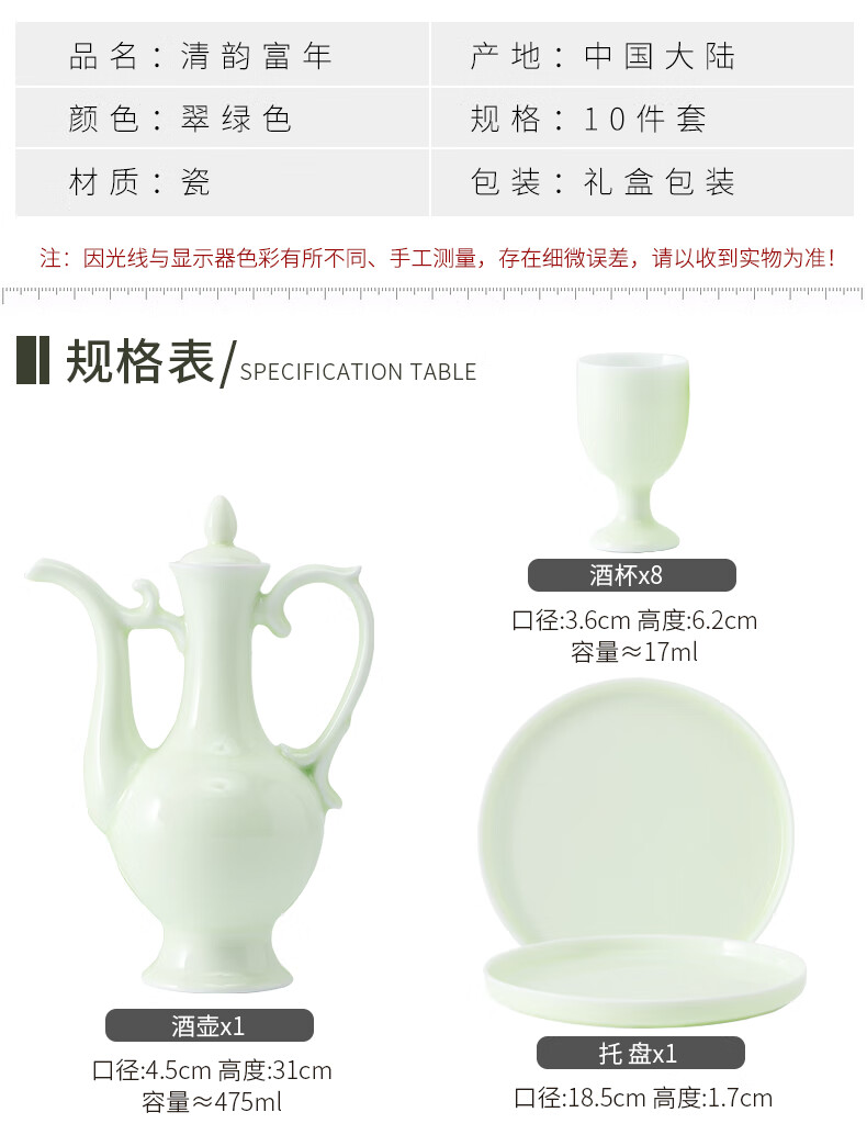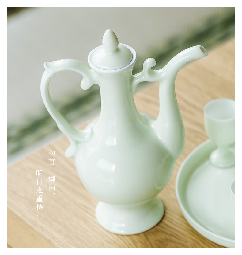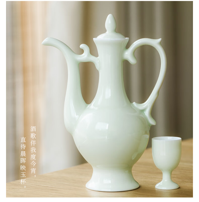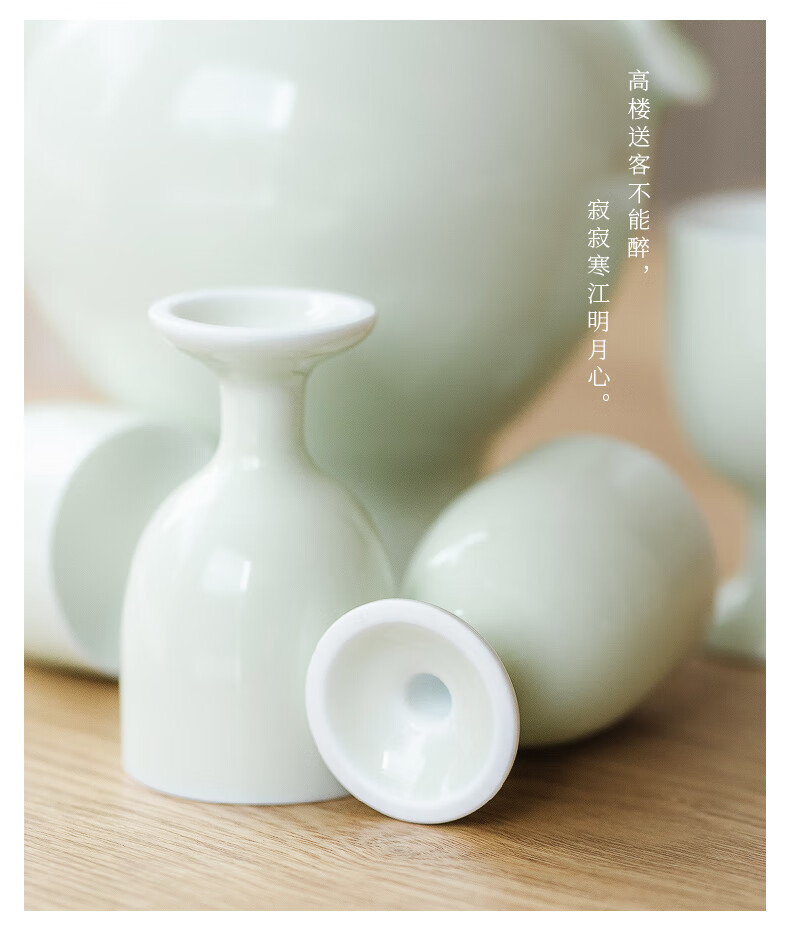 Guoyue Ceramic White Wine Cup Simple Wine Set Home Drinking Glass with Tray Gift Box Wine Jug Tall Wine Glass for Gift Blue and White Landscape Wine Set Gift Box
