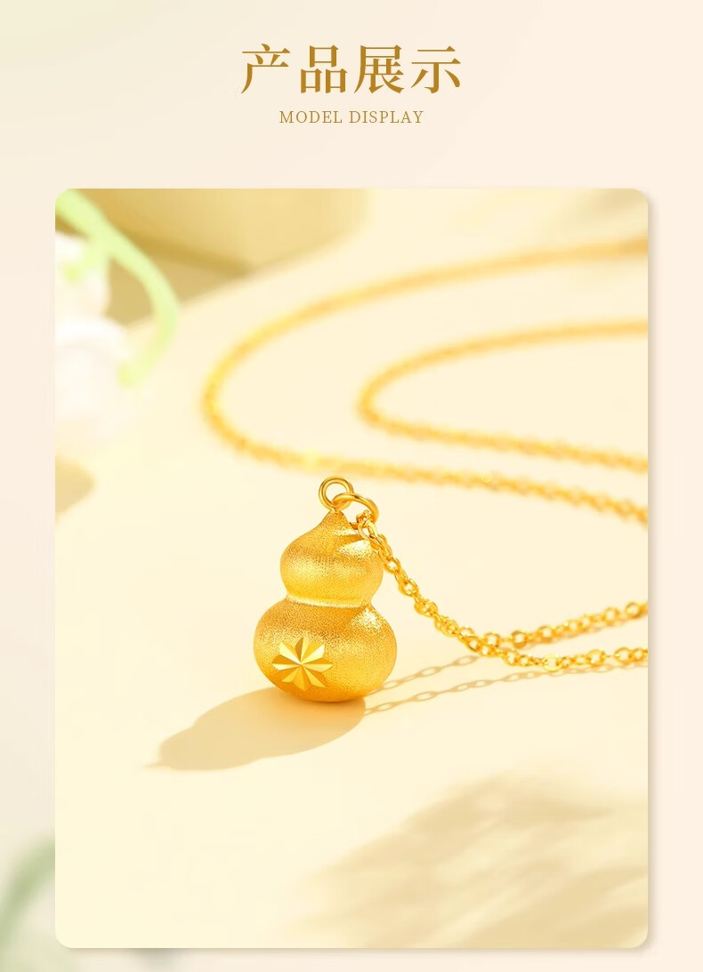 CHINA GOLD Gourd Gold Necklace Women's 999 Pure Gold Fulu Pendant Birthday Gift for Girlfriend and Wife Gold Necklace Gold Weight Approximately 3.8g
