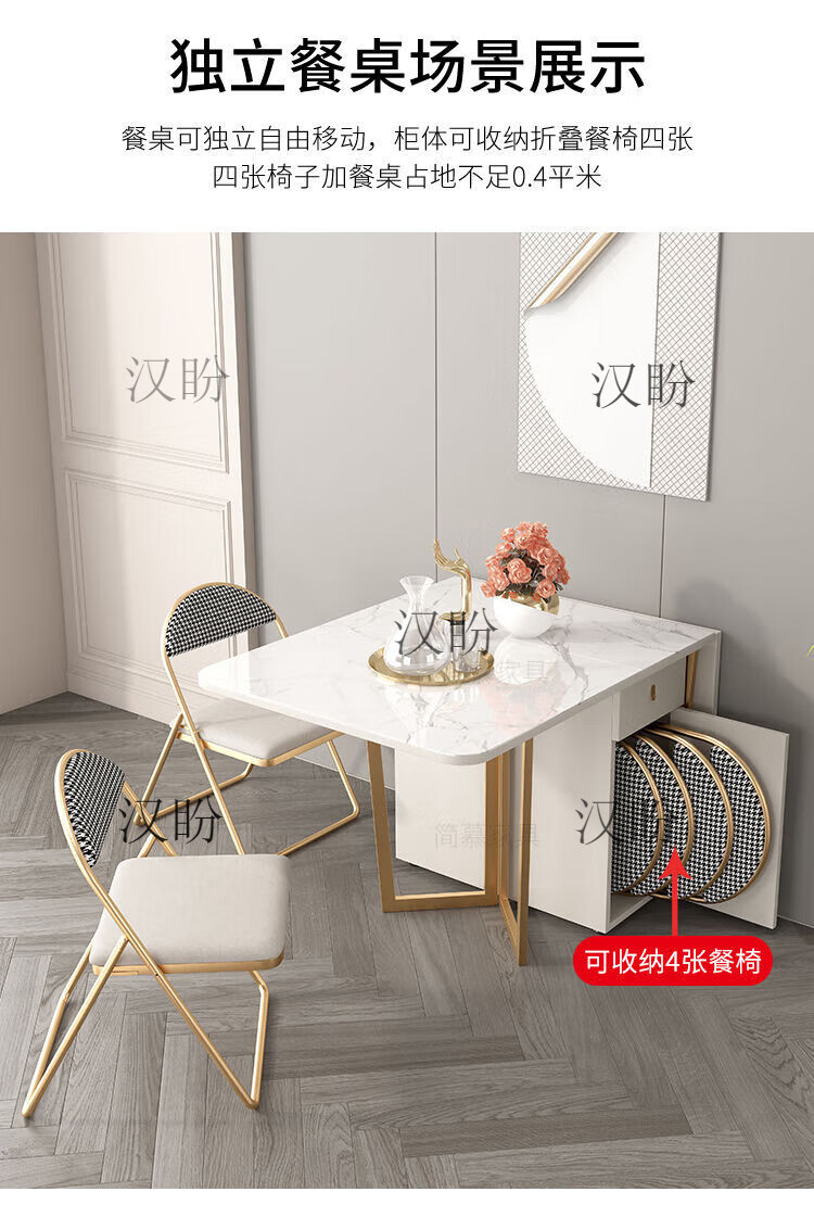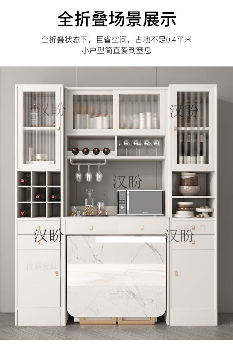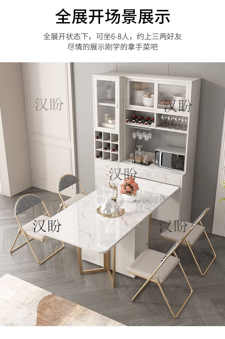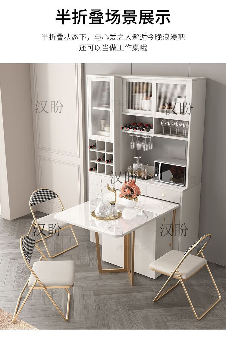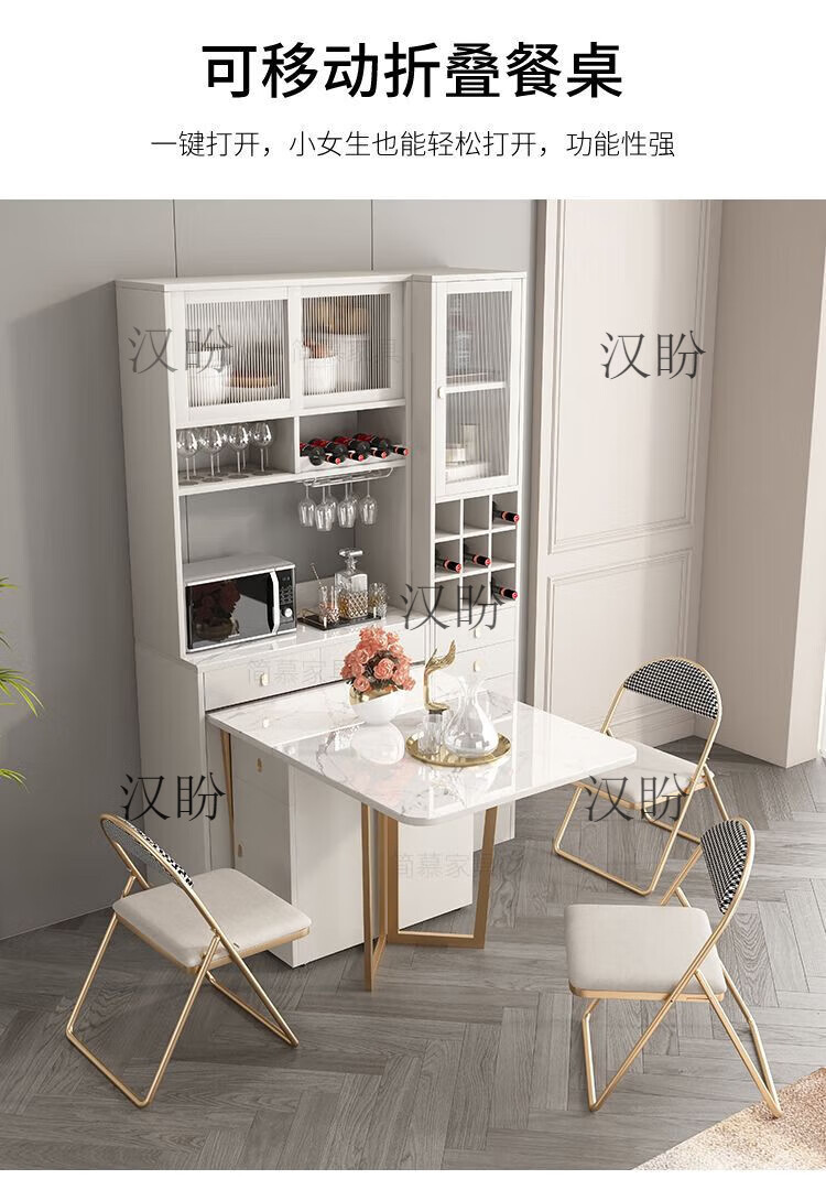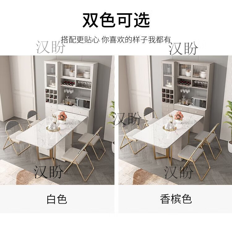 Hanpan slate folding dining table and sideboard integrated multifunctional storage and wine cabinet modern household small apartment retractable dining table Folding dining table cabinet + wine cabinet * 2 + 4 chairs Solid wooden board + delivery and installation