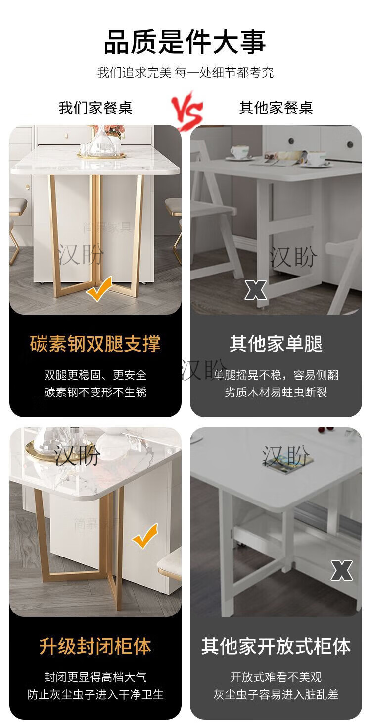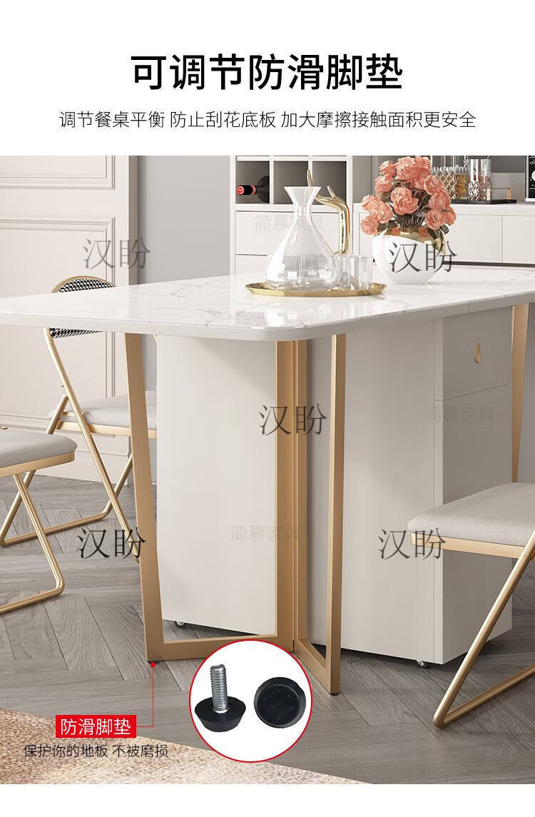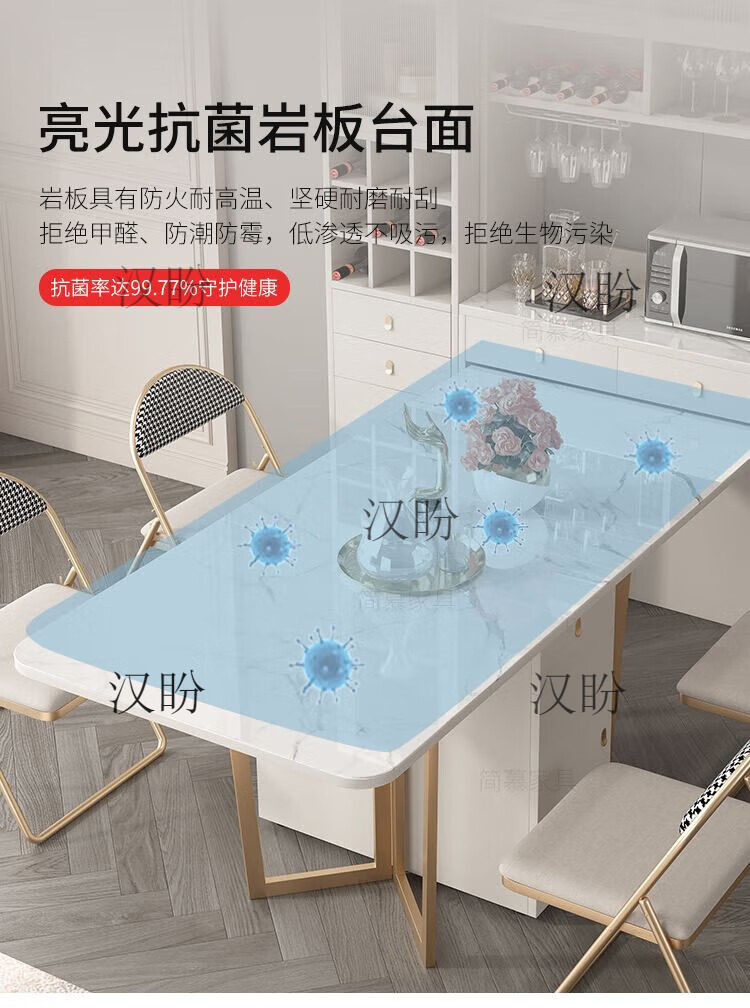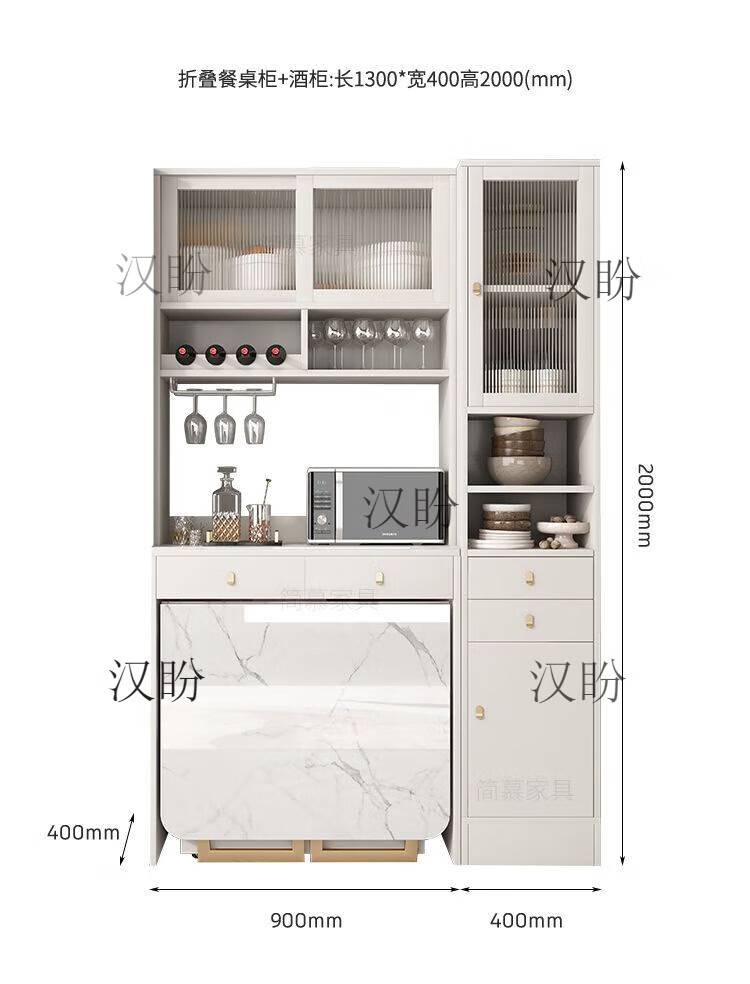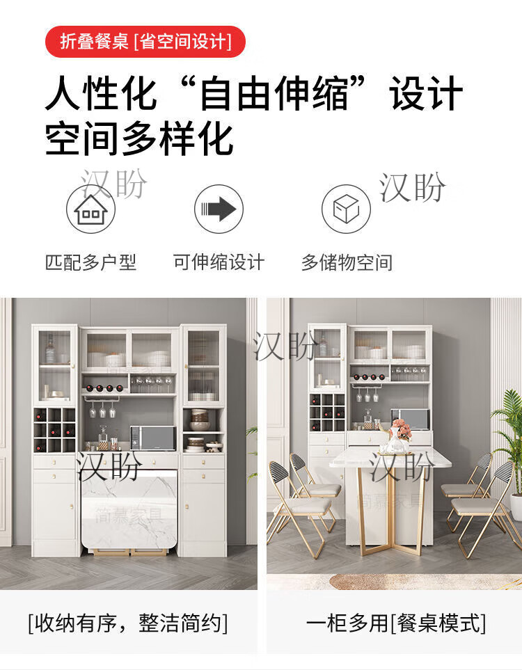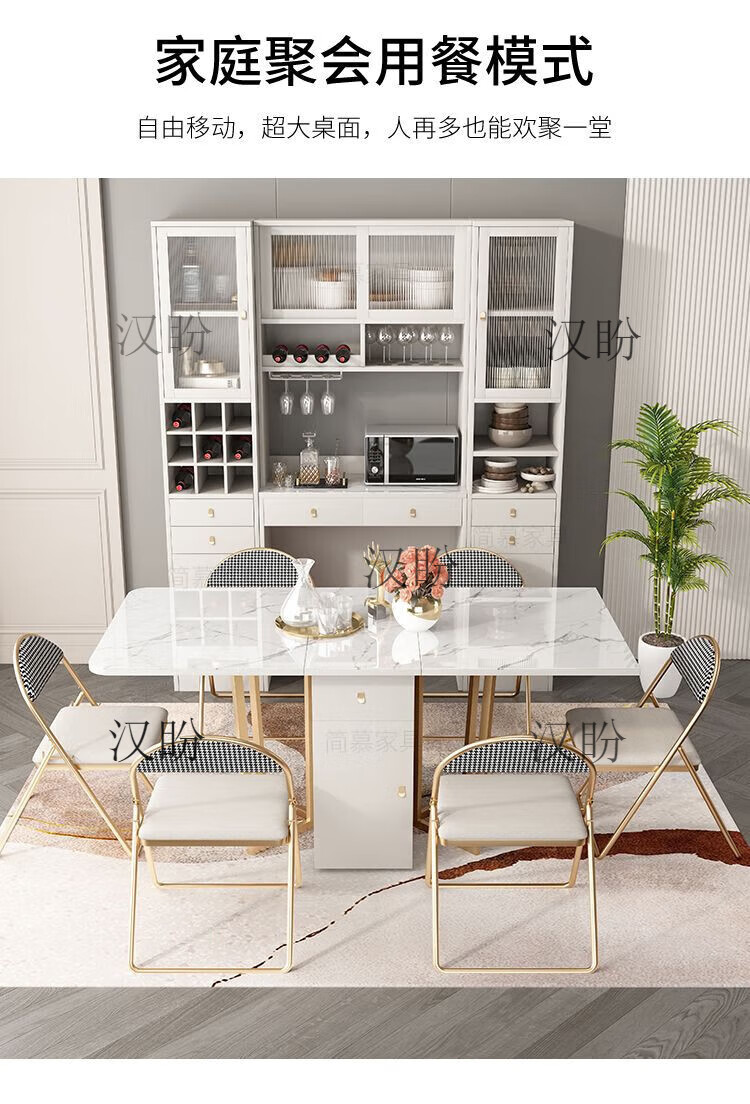 Hanpan slate folding dining table and sideboard integrated multifunctional storage and wine cabinet modern household small apartment retractable dining table Folding dining table cabinet + wine cabinet * 2 + 4 chairs Solid wooden board + delivery and installation