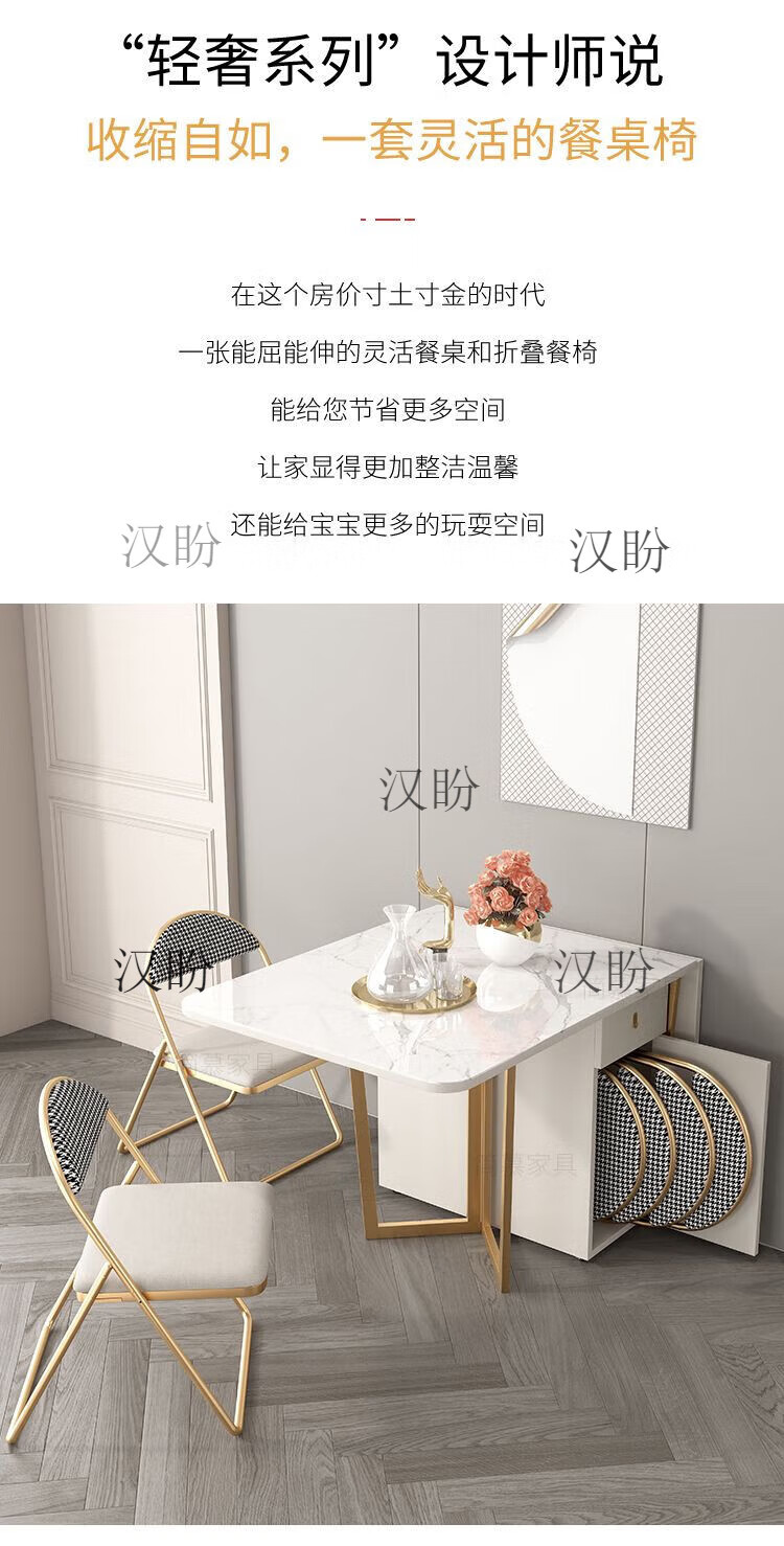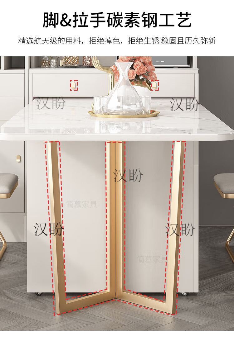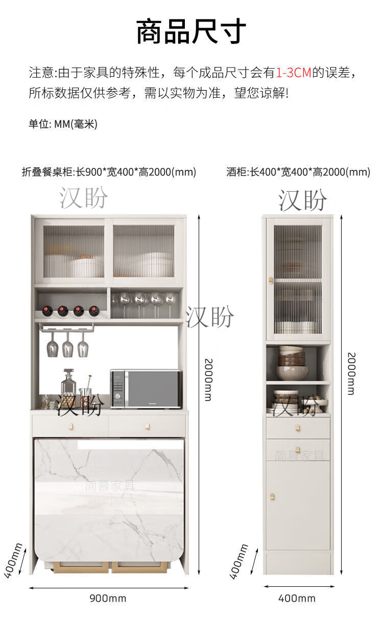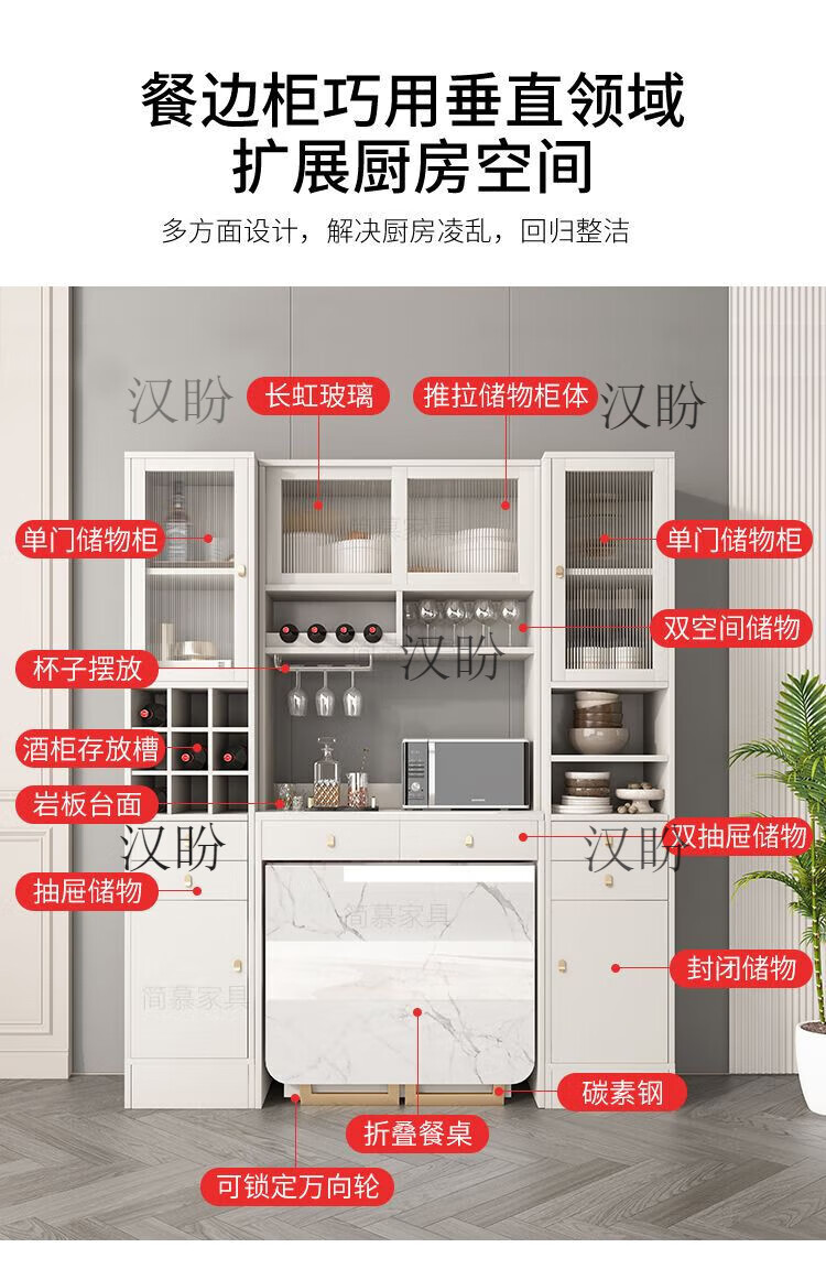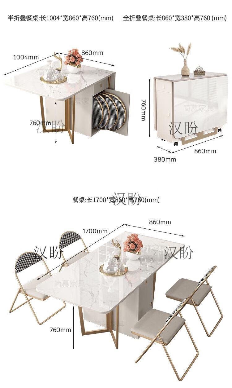 Hanpan slate folding dining table and sideboard integrated multifunctional storage and wine cabinet modern household small apartment retractable dining table Folding dining table cabinet + wine cabinet * 2 + 4 chairs Solid wooden board + delivery and installation