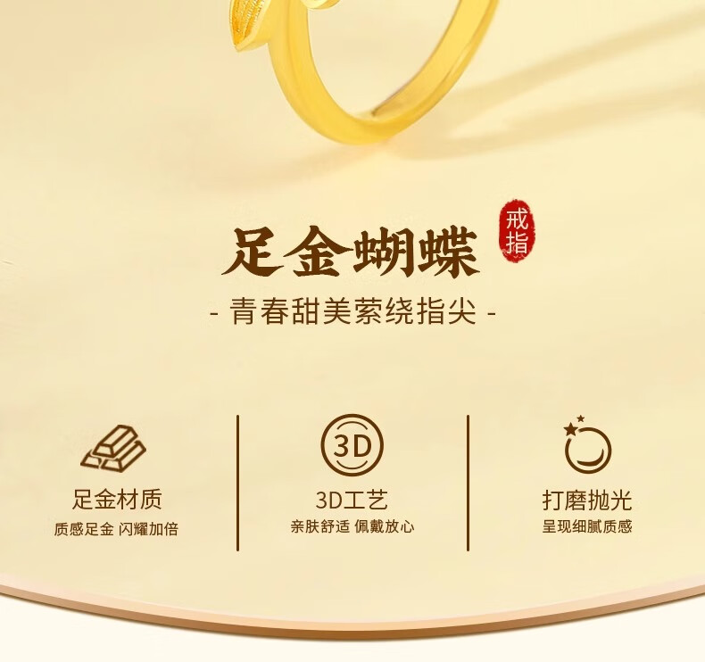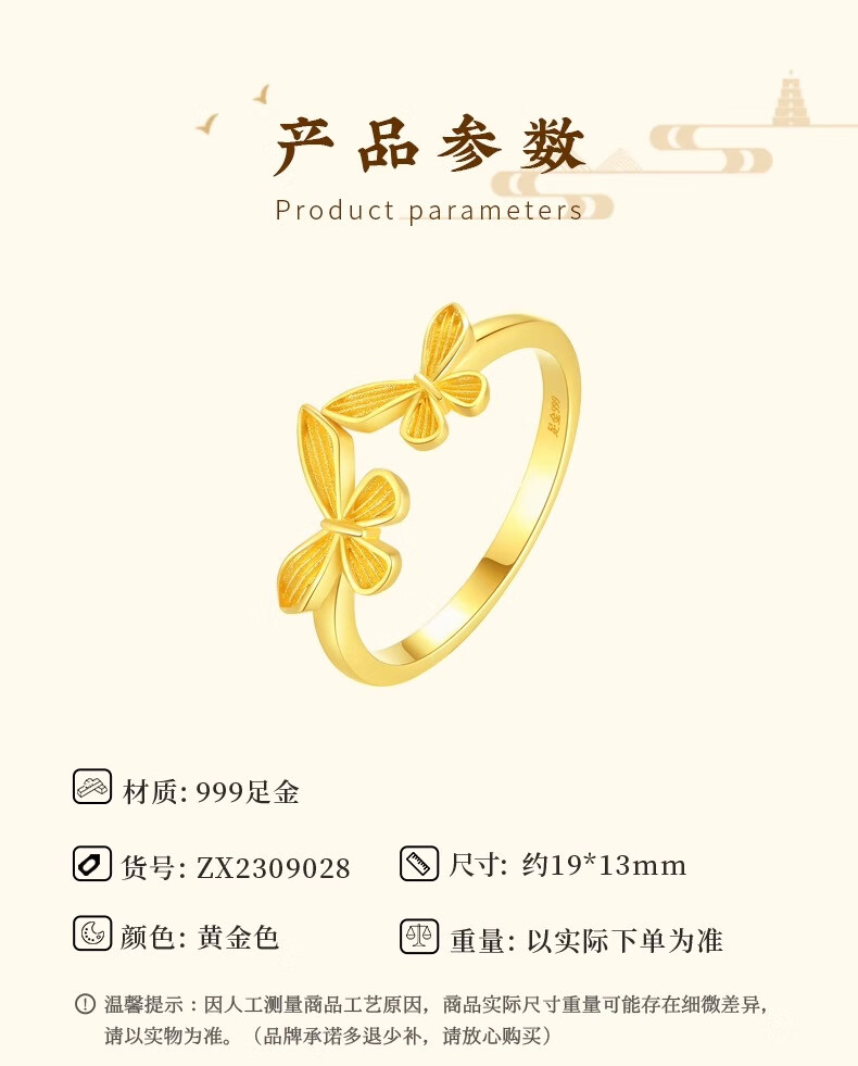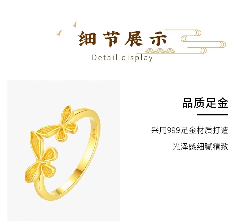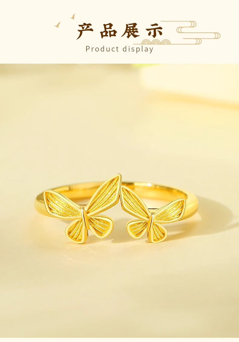 China Gold (CHINA GOLD) Butterfly Gold Ring Women's 999 Pure Gold Live Ring Birthday Gift for Girlfriend and Wife Pure Gold Butterfly Ring * Open Style Gold Weight Approximately 2.7g