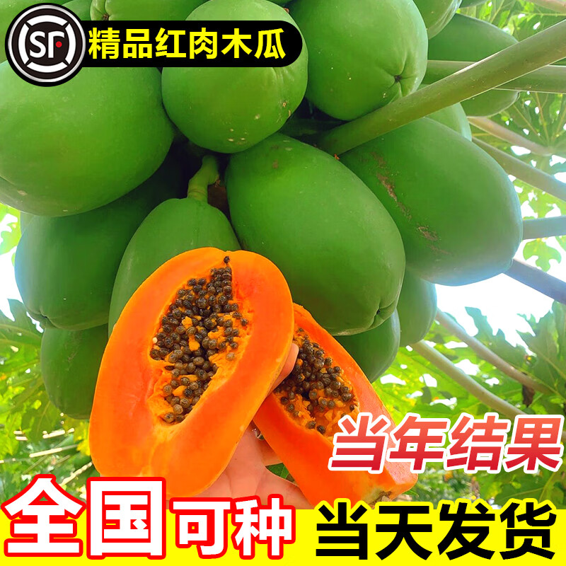 Yimizhu Four Seasons Papaya Fruit Tree Fruit Seedlings Rock Sugar Red Heart Fruit Papaya Extra Large Seedlings Fruit Trees Potted Planting in the North and South Courtyard Rock Sugar Fruit Papaya 1 Sweet and Soft Glutinous Year