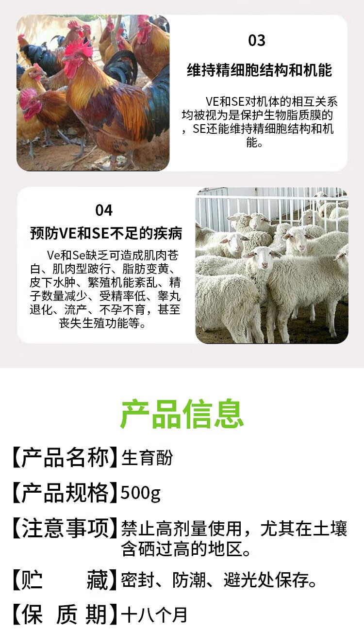 LISM Veterinary Vitamin E Powder Tocopherol VE Fox, Mink, Chicken, Duck, Rabbit, Cow, Sheep, Pig and Dog Oestrus Powder Breeding Feed Additive 1Jin Jin is equal to 0.5kg in one bag