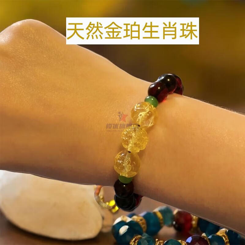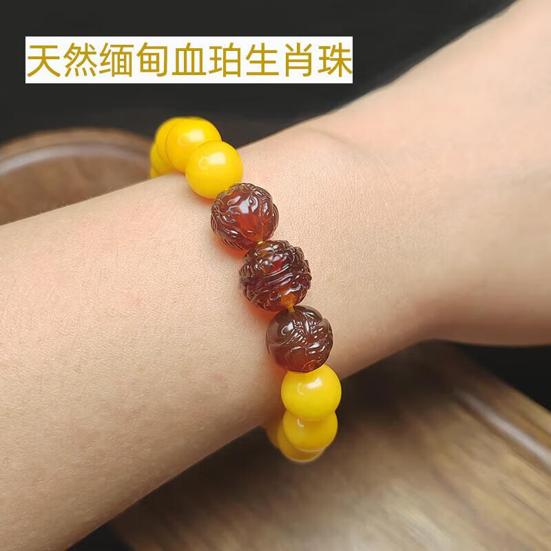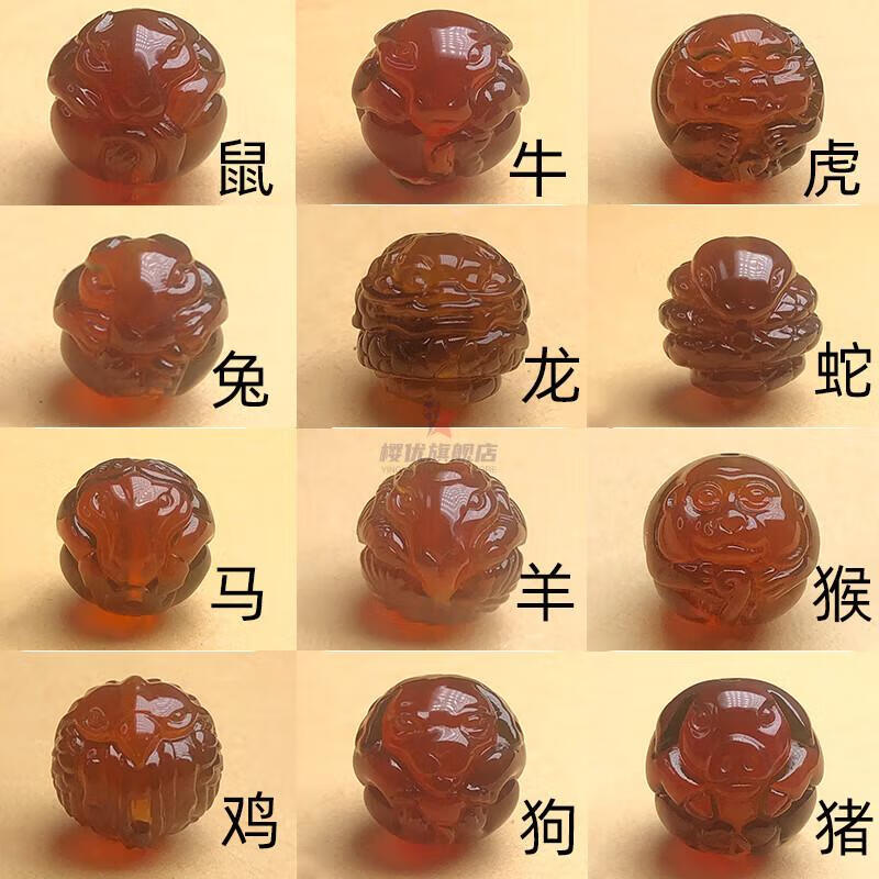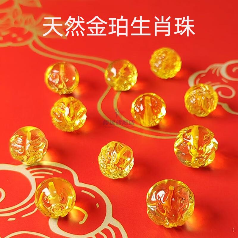 Yingyou natural amber beeswax Burmese brown red blood amber gold amber zodiac beads carved loose beads pendant bracelet accessories Burmese amber zodiac tiger 14mm 1 piece