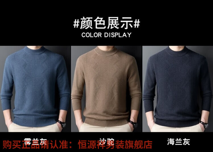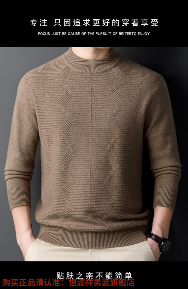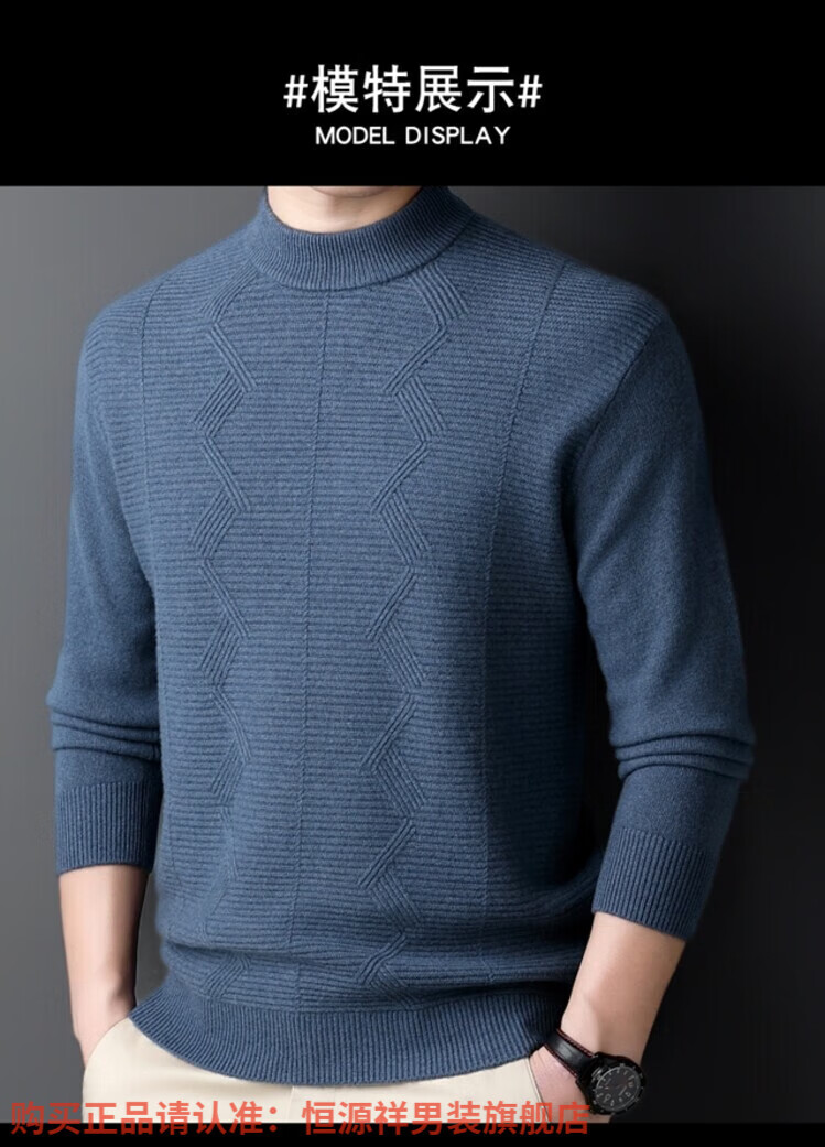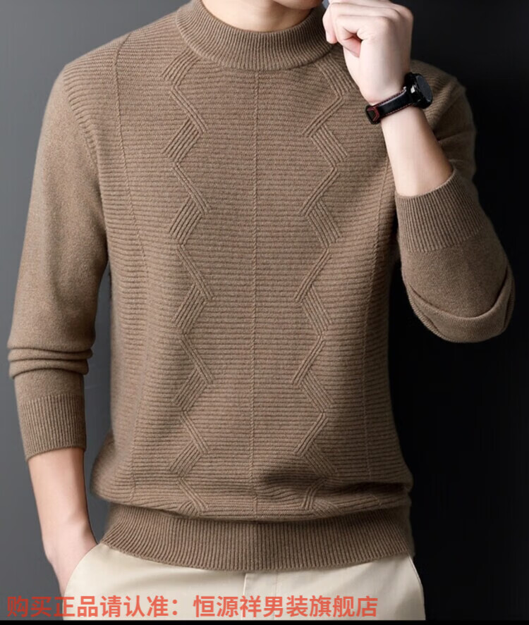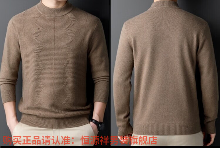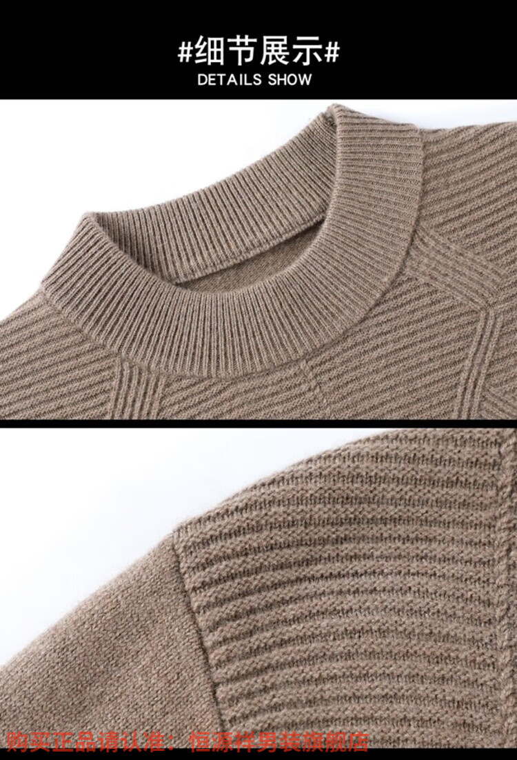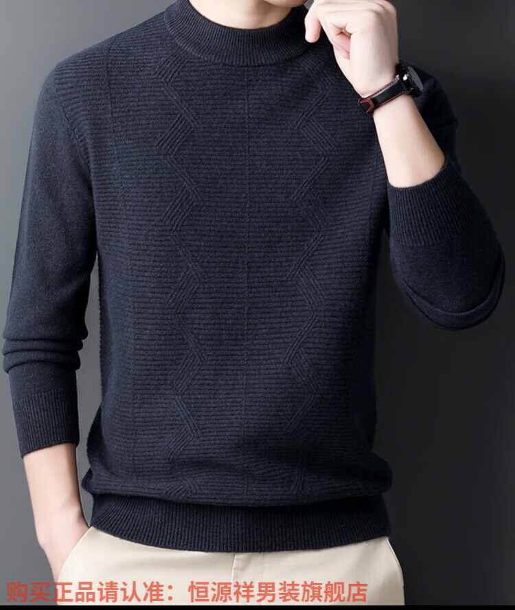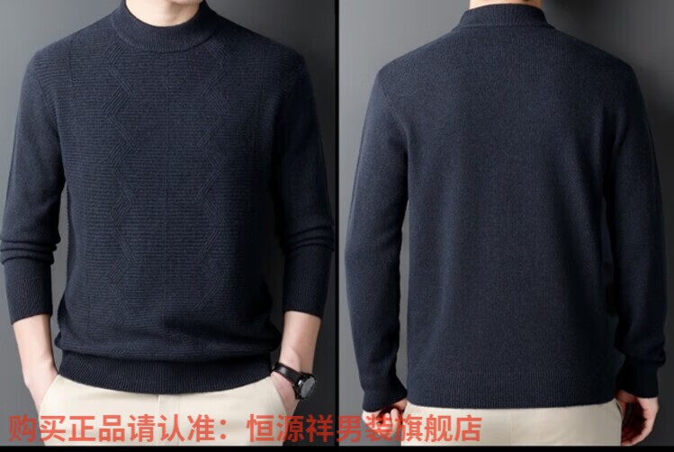 Hengyuanxiang light luxury high-end cashmere wool sweater men's round neck sweater winter middle-aged pullover thickened warm top bottoming shirt Shatuo sheep wool 90.9%, cashmere 9.1% 2XL
