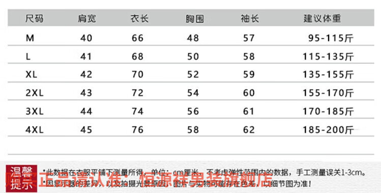 China (cm) 165 / 88-90 170 / 96-98 175 / 108-110 180 / 118-122 185 / 126-130