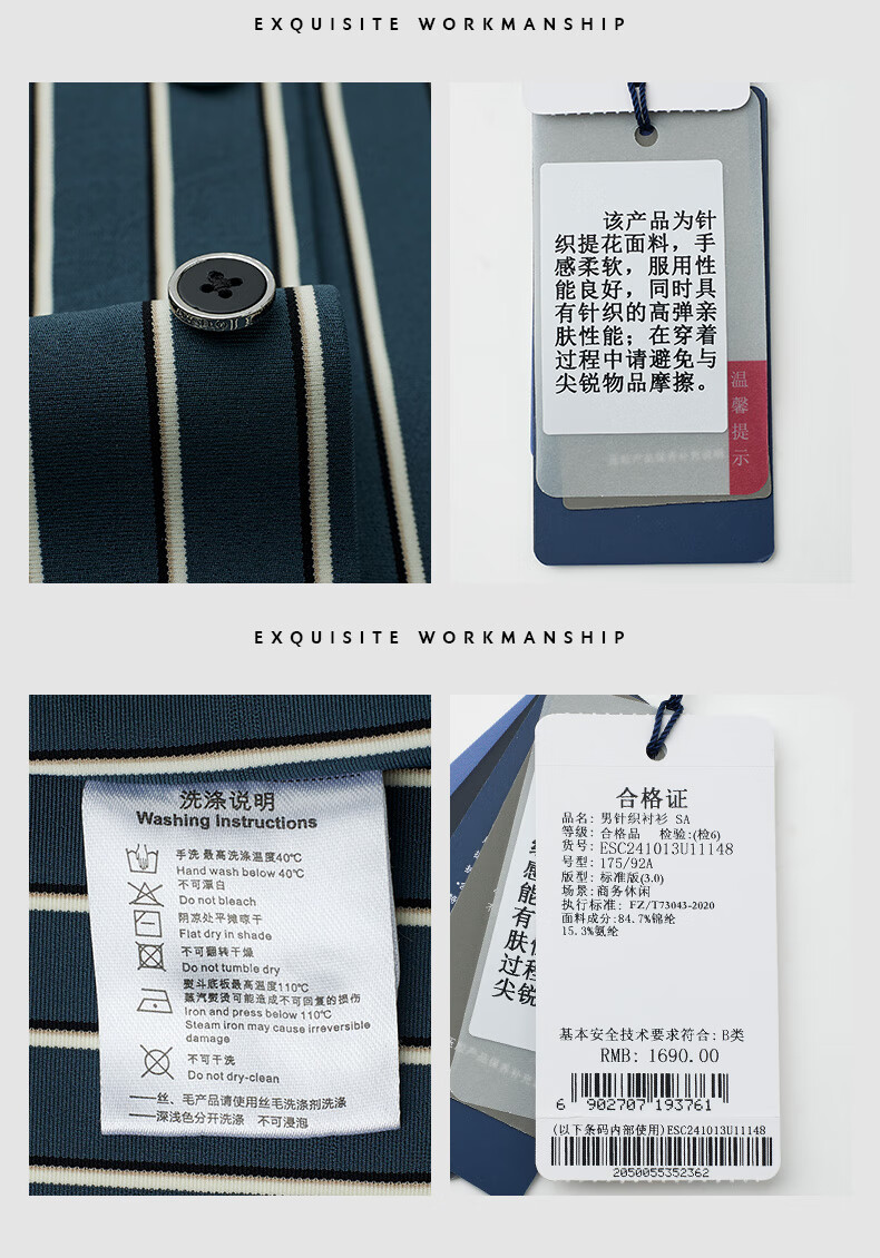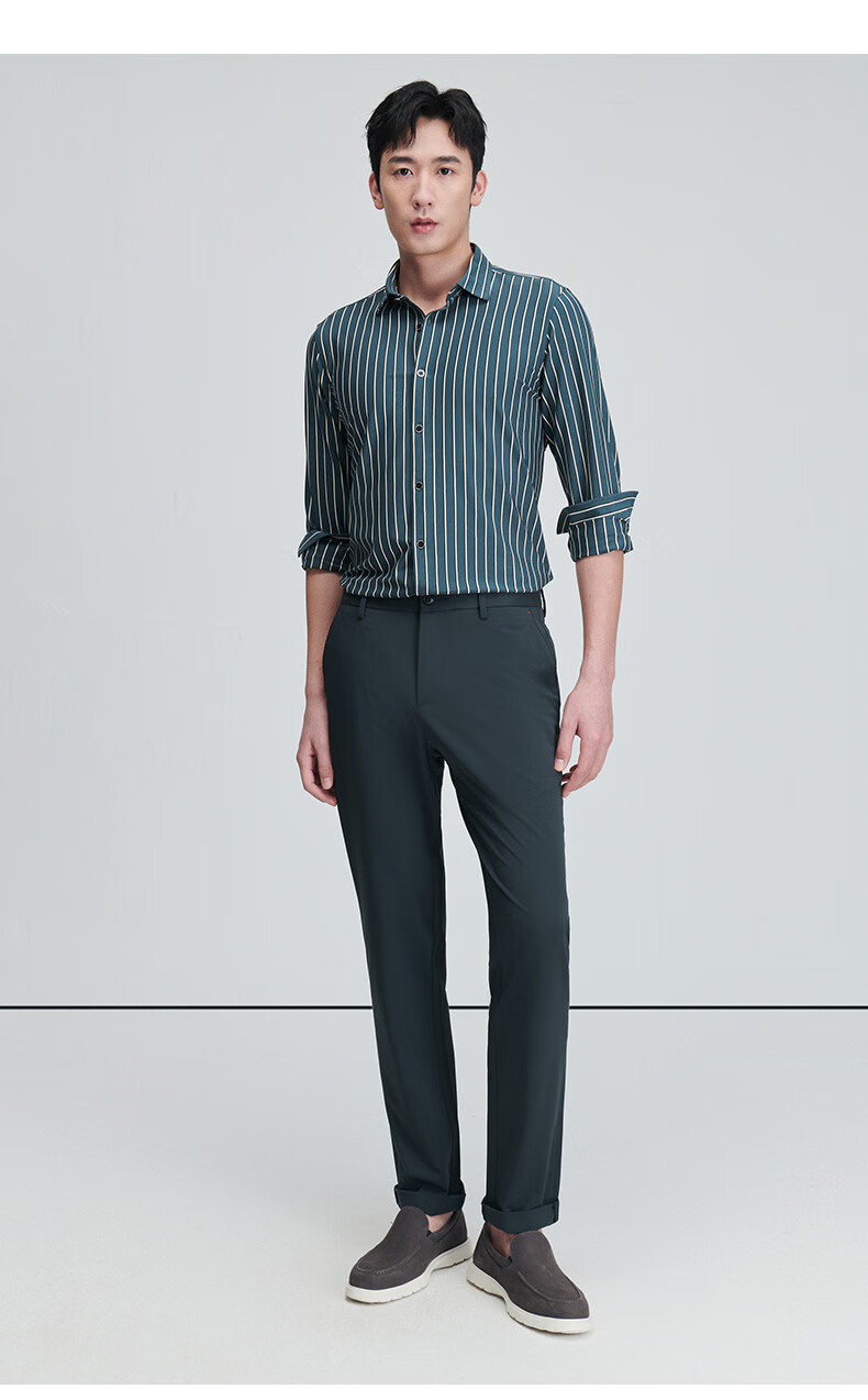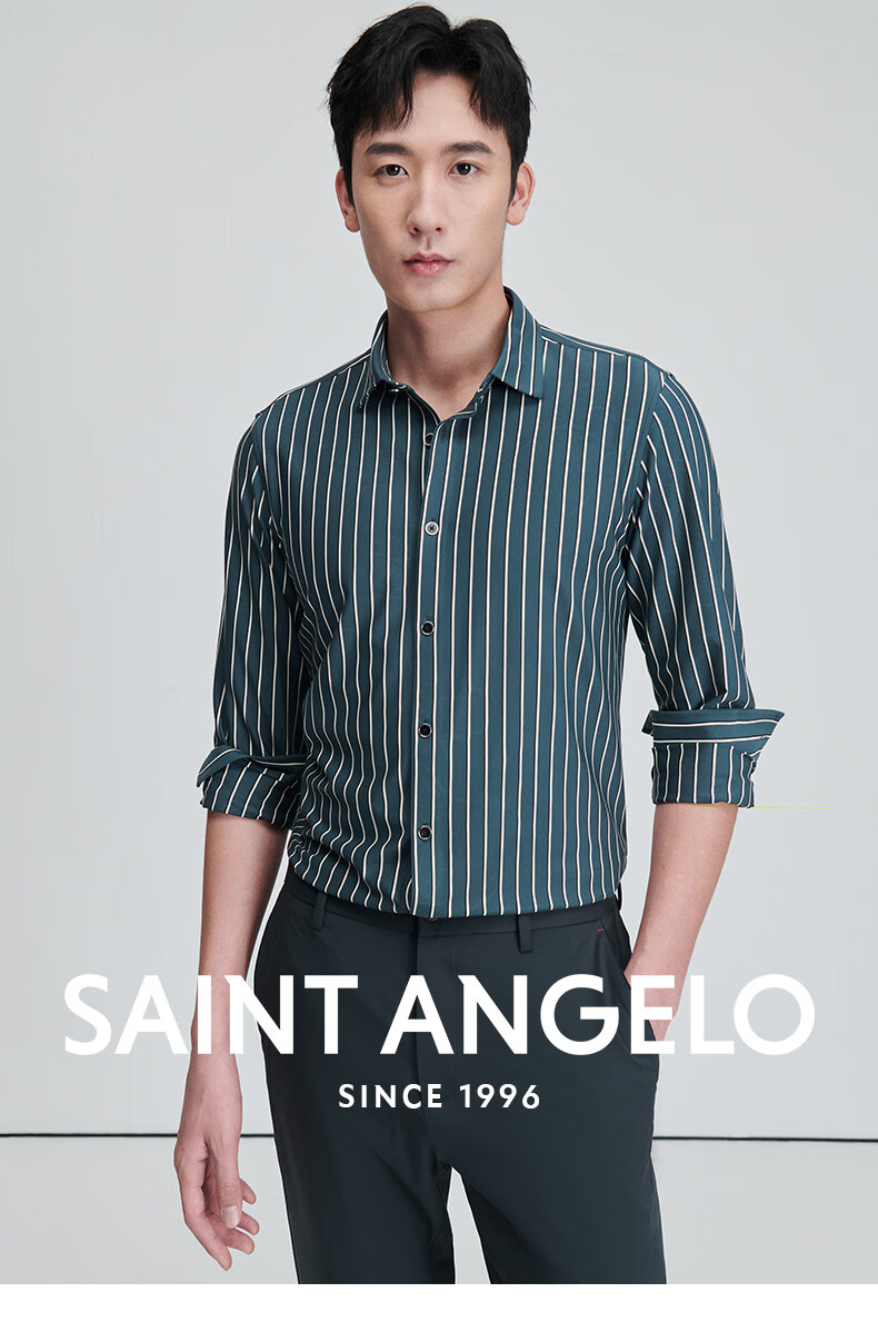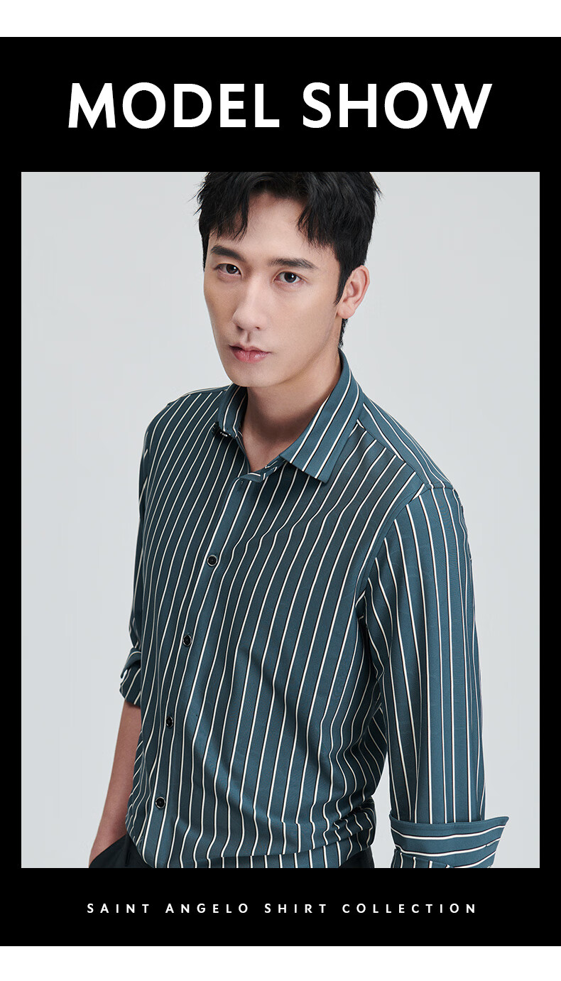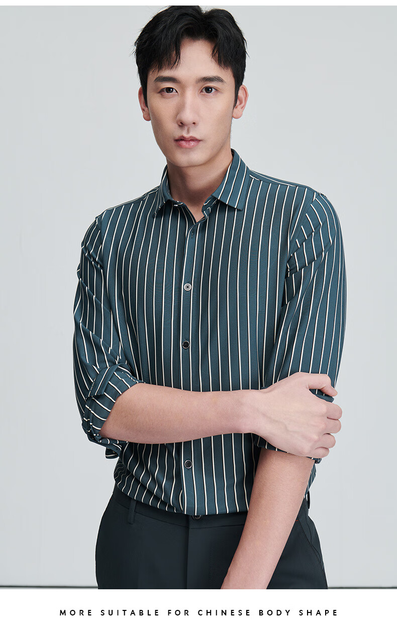 Angel Bird casual long-sleeved shirt men's spring style men's fashion business casual long-sleeved shirt striped knitted shirt men's teal 48 (175/92)