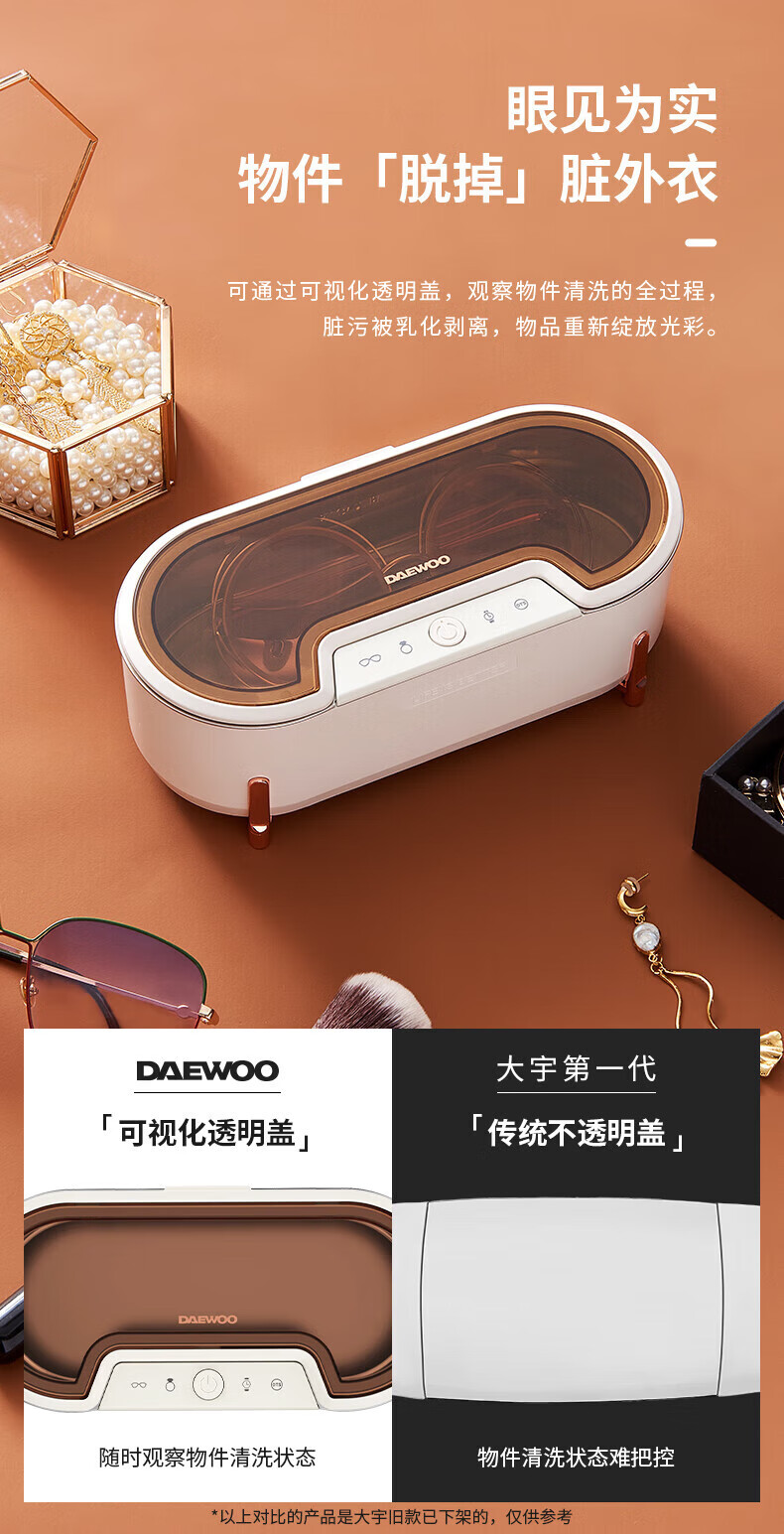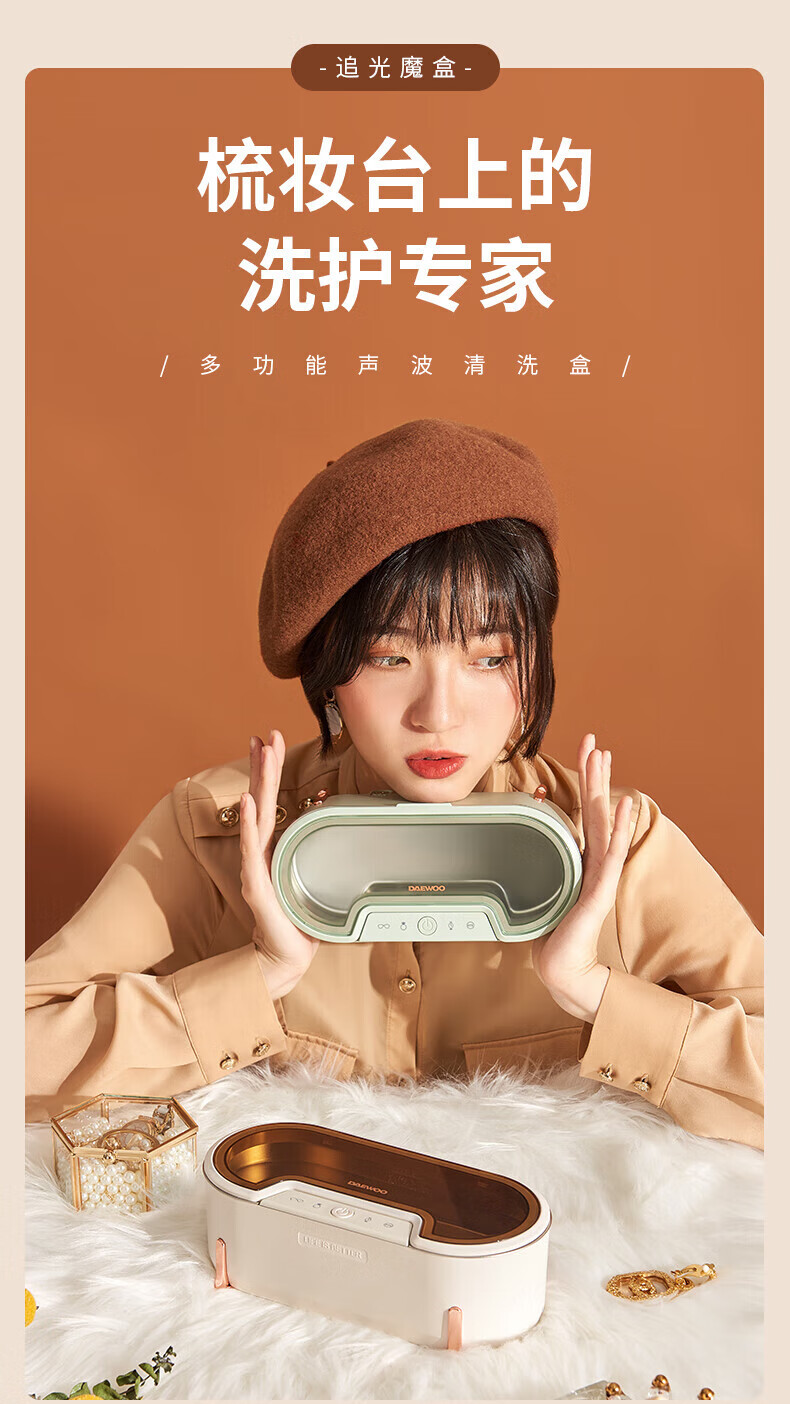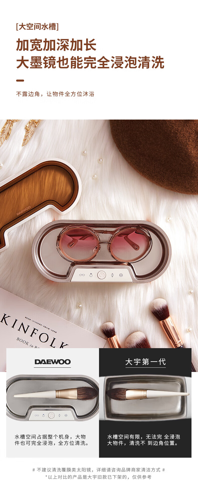 Daewoo 360 Deep Cleaning Ultrasonic Cleaning Machine Glasses Ultrasonic Cleaner Fully Automatic Portable Home Jewelry Watch Strap Makeup Brush Cleaner Four-level Adjustment + Cleaning Fluid Sonic Glasses Cleaning Machine丨Milk White