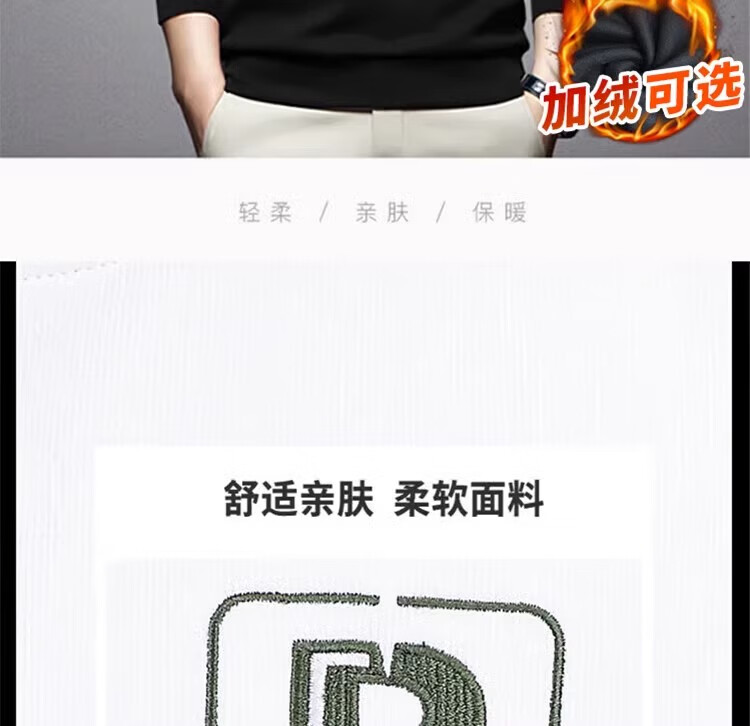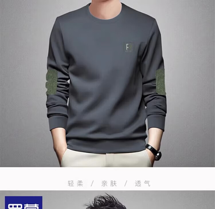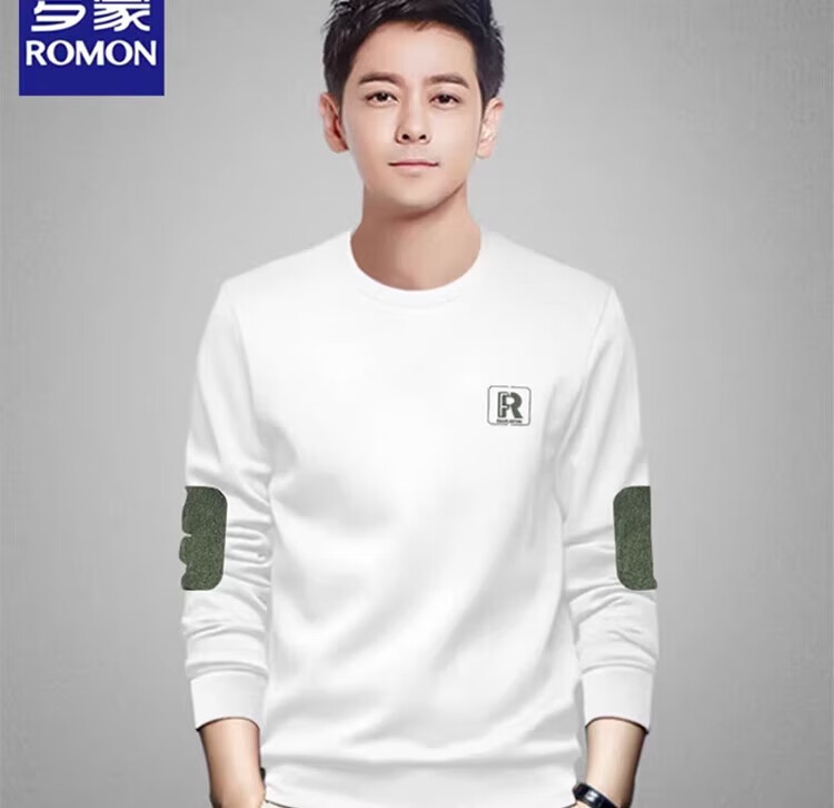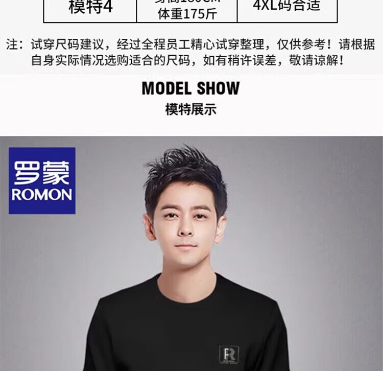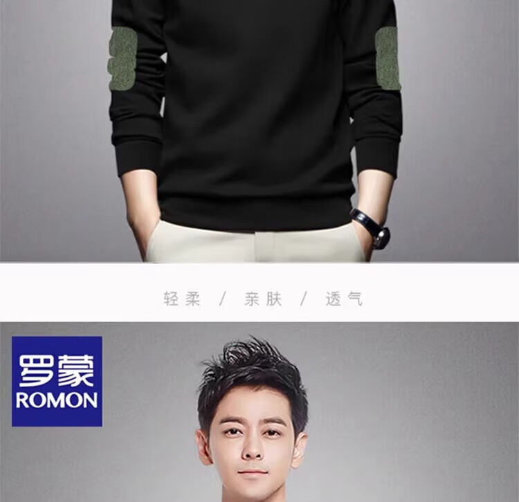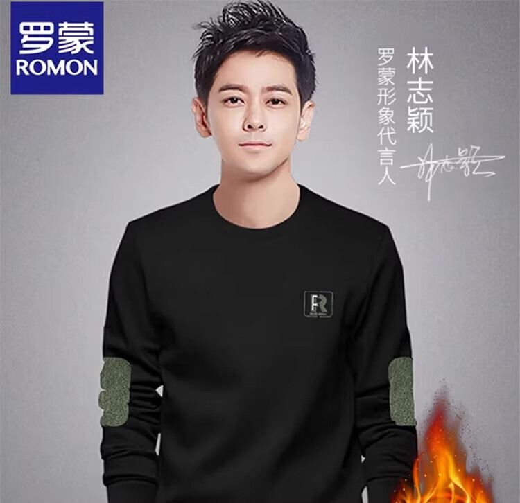Romon round neck sweatshirt men's 2026 spring and autumn new long-sleeved loose top plus velvet thickened warm base layer black regular style XL