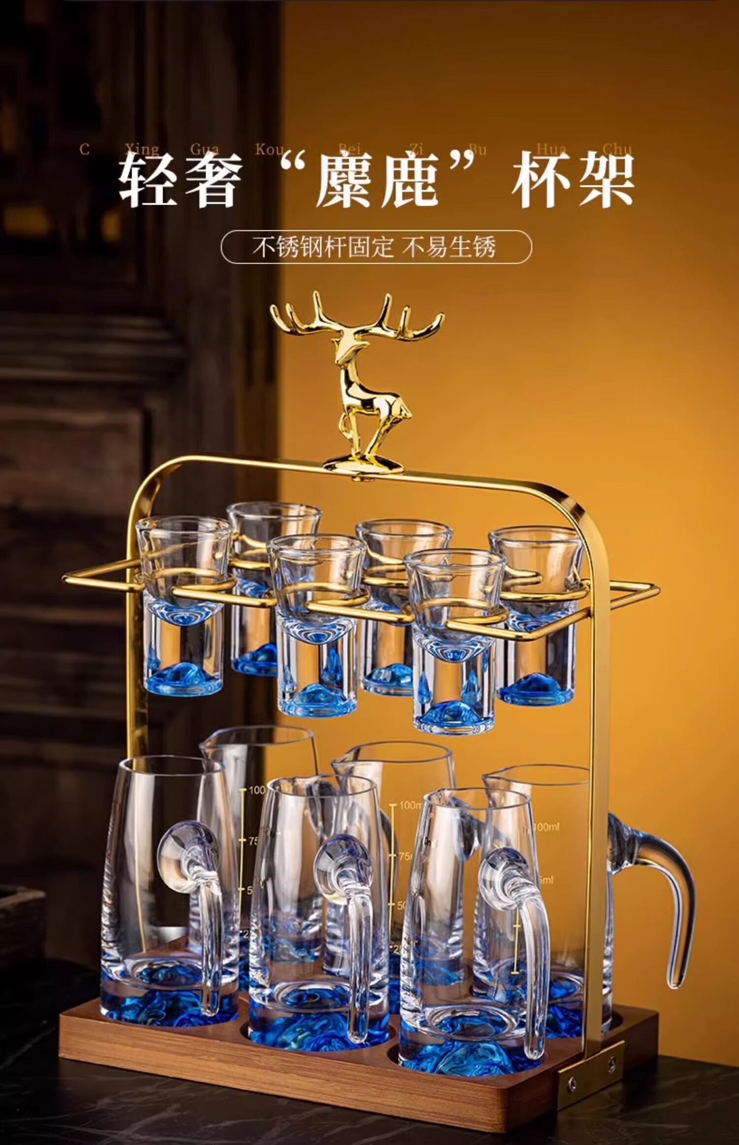 Liuquan Blue Mountain white wine glass creative iceberg crystal glass wine dispenser high-end wine set gift for men to send leaders standard style 1 wine container + 6 white wine glasses