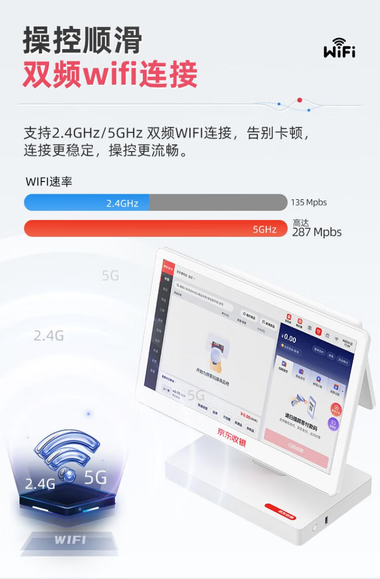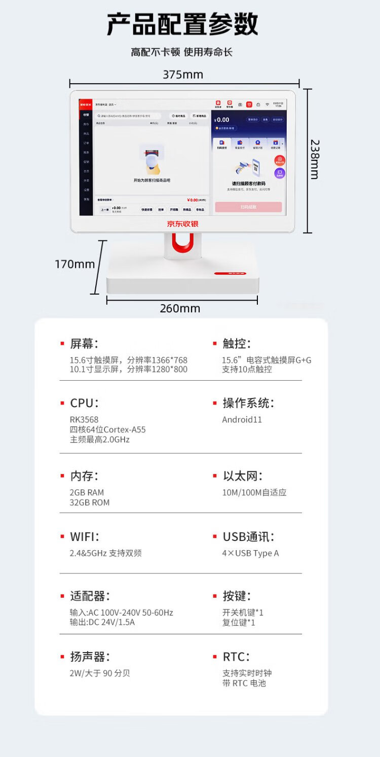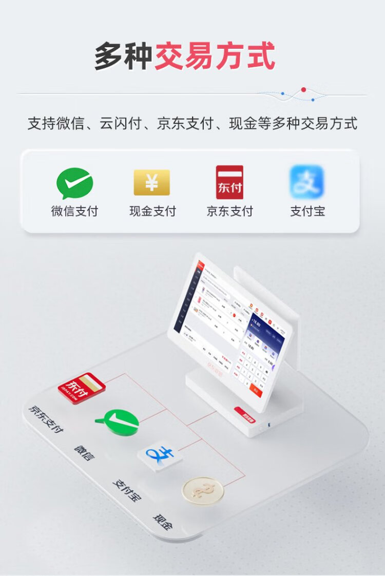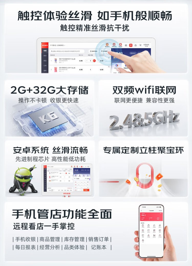 Jingdong cashier K6 cash register merchant supermarket convenience store retail system management all-in-one machine Jingdong payment cash register weighing catering ordering commercial cashier member management system New K6 dual screen + code scanning gun + cashier software