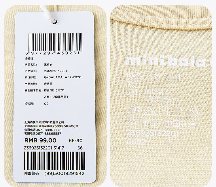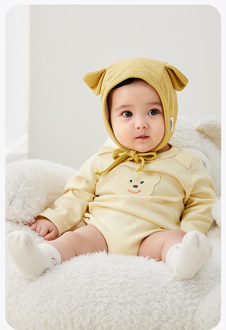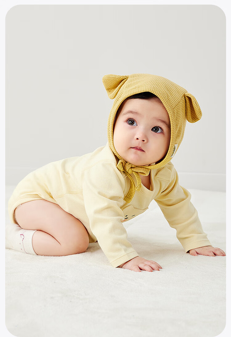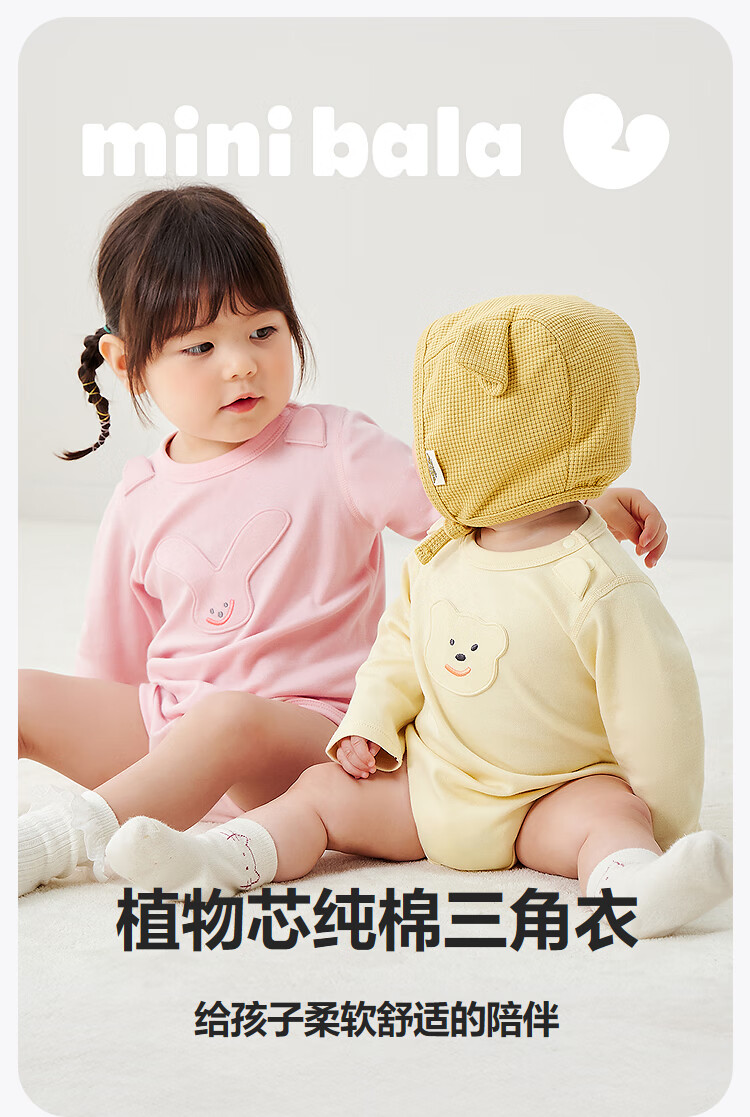 Mini Bala plant core baby pure cotton skin-friendly triangle baby bottoming rompers one-piece light yellow 31417 66cm