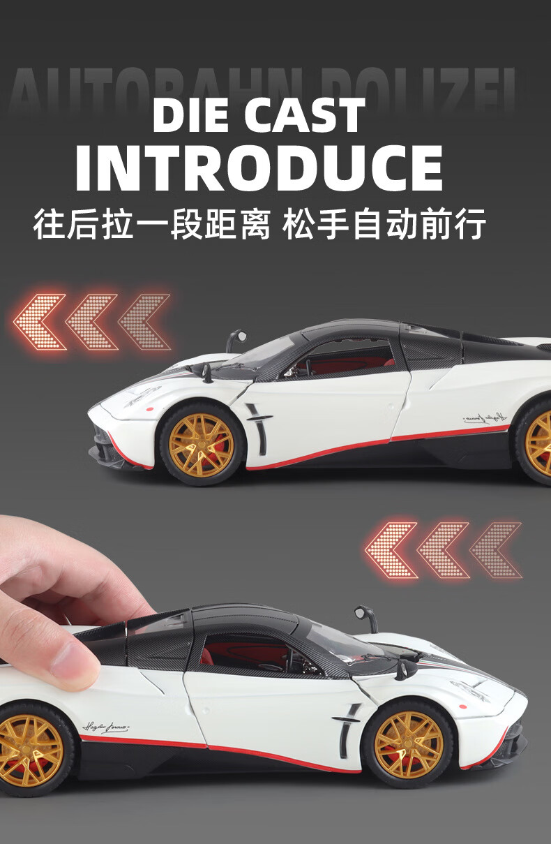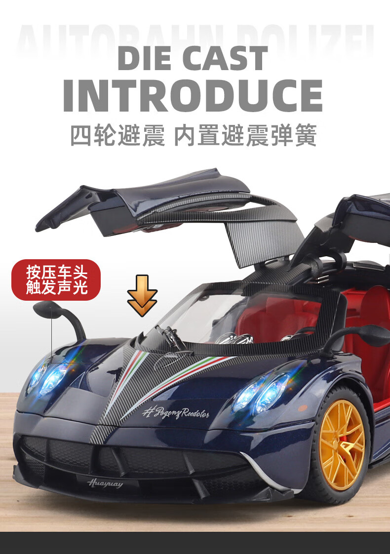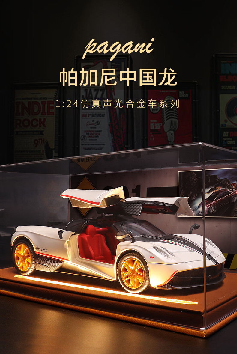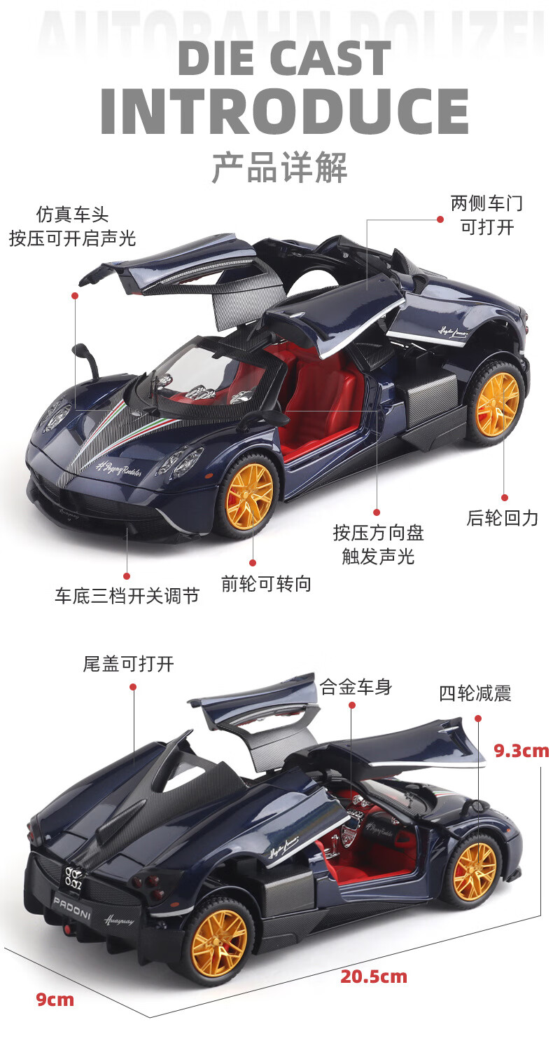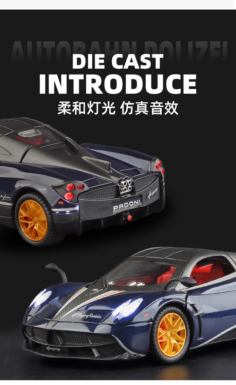 IGIFTFIRE1 24 Pagani sports car alloy car model audio steering car toy car birthday gift children's pull-back car display box with light + Pagani blue