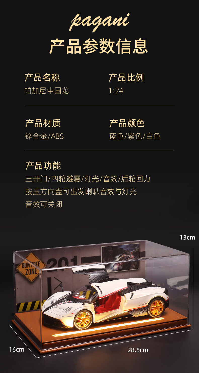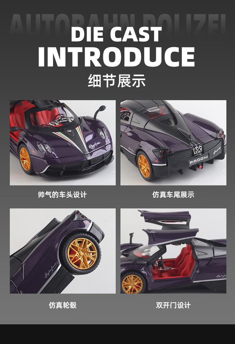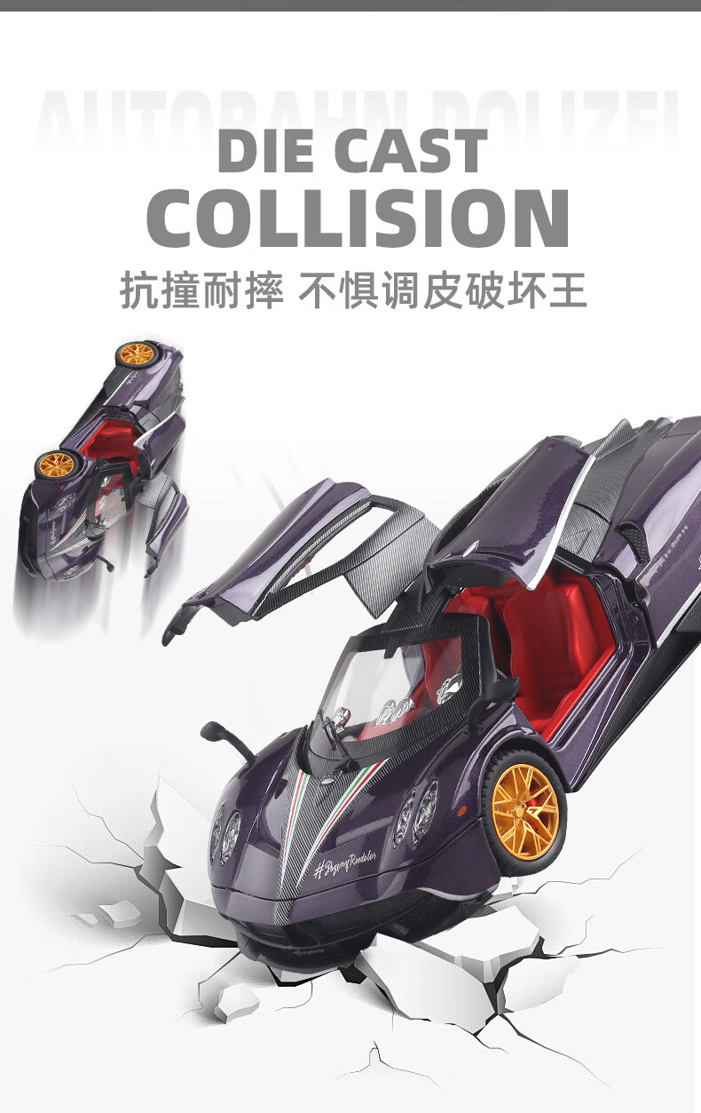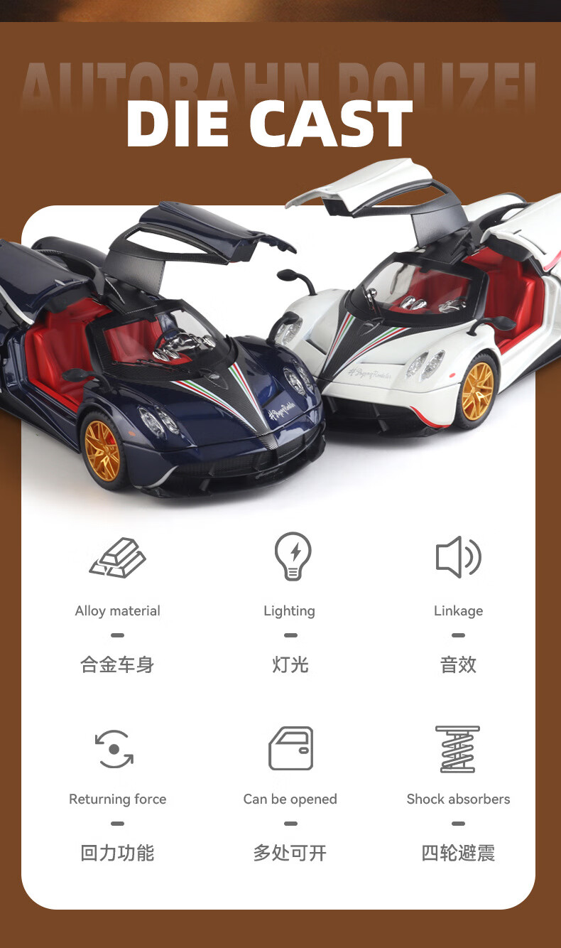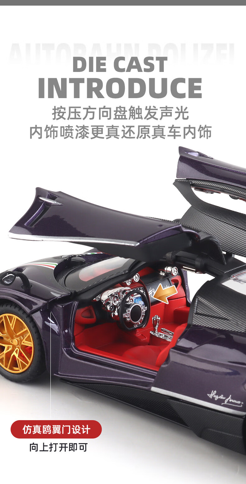 IGIFTFIRE1 24 Pagani sports car alloy car model audio steering car toy car birthday gift children's pull-back car display box with light + Pagani blue