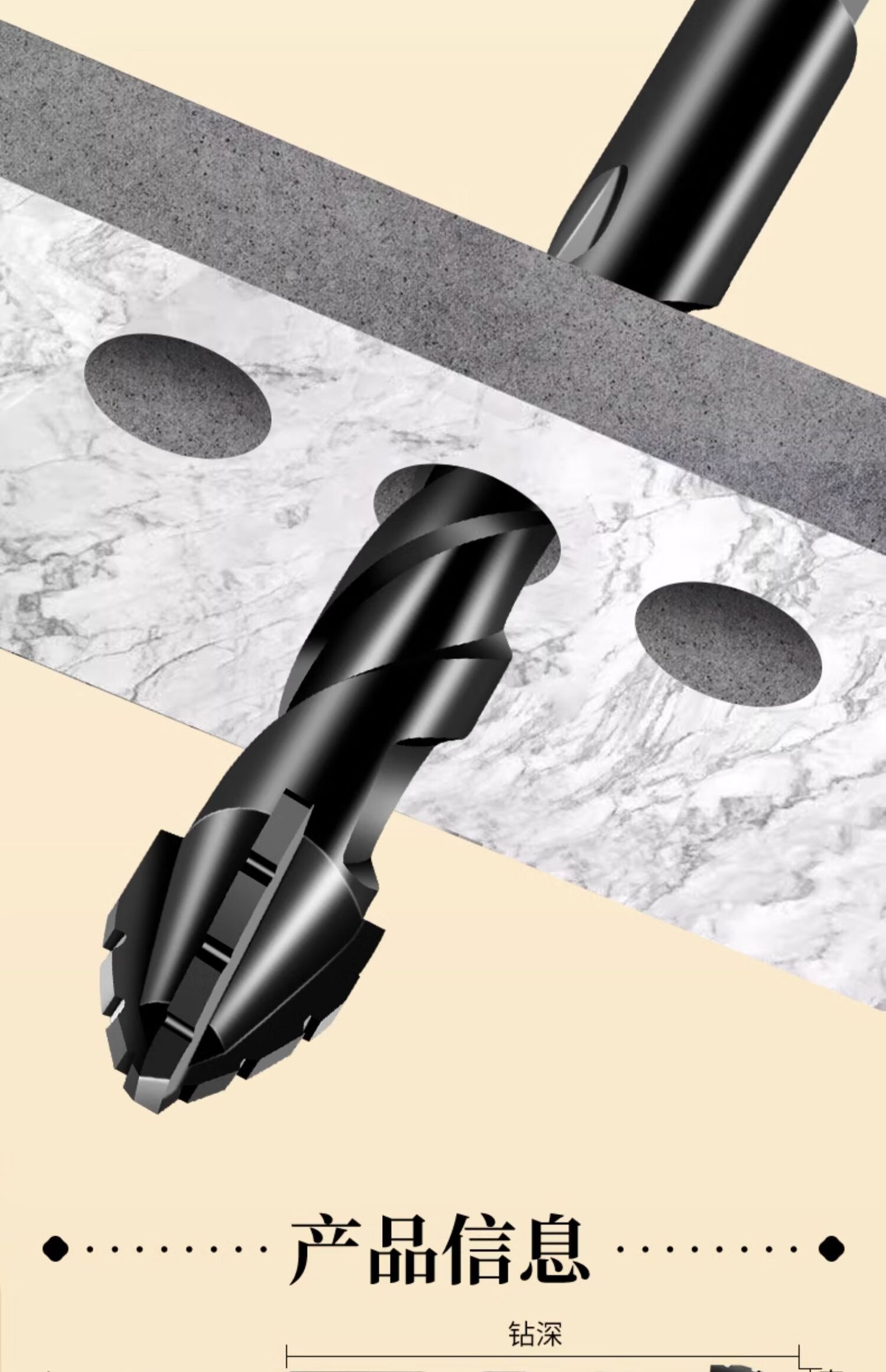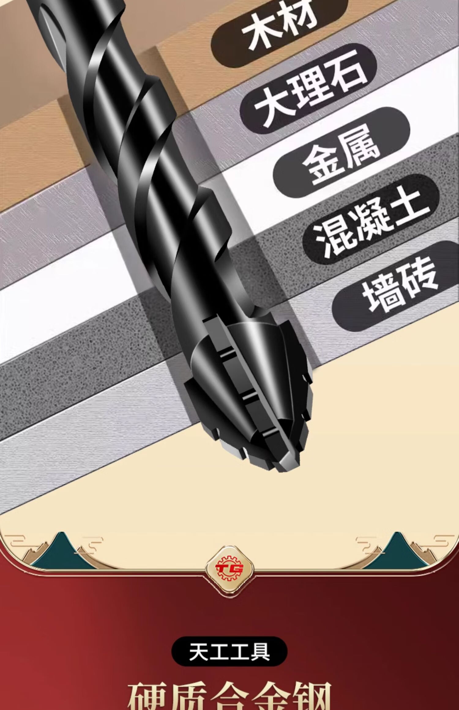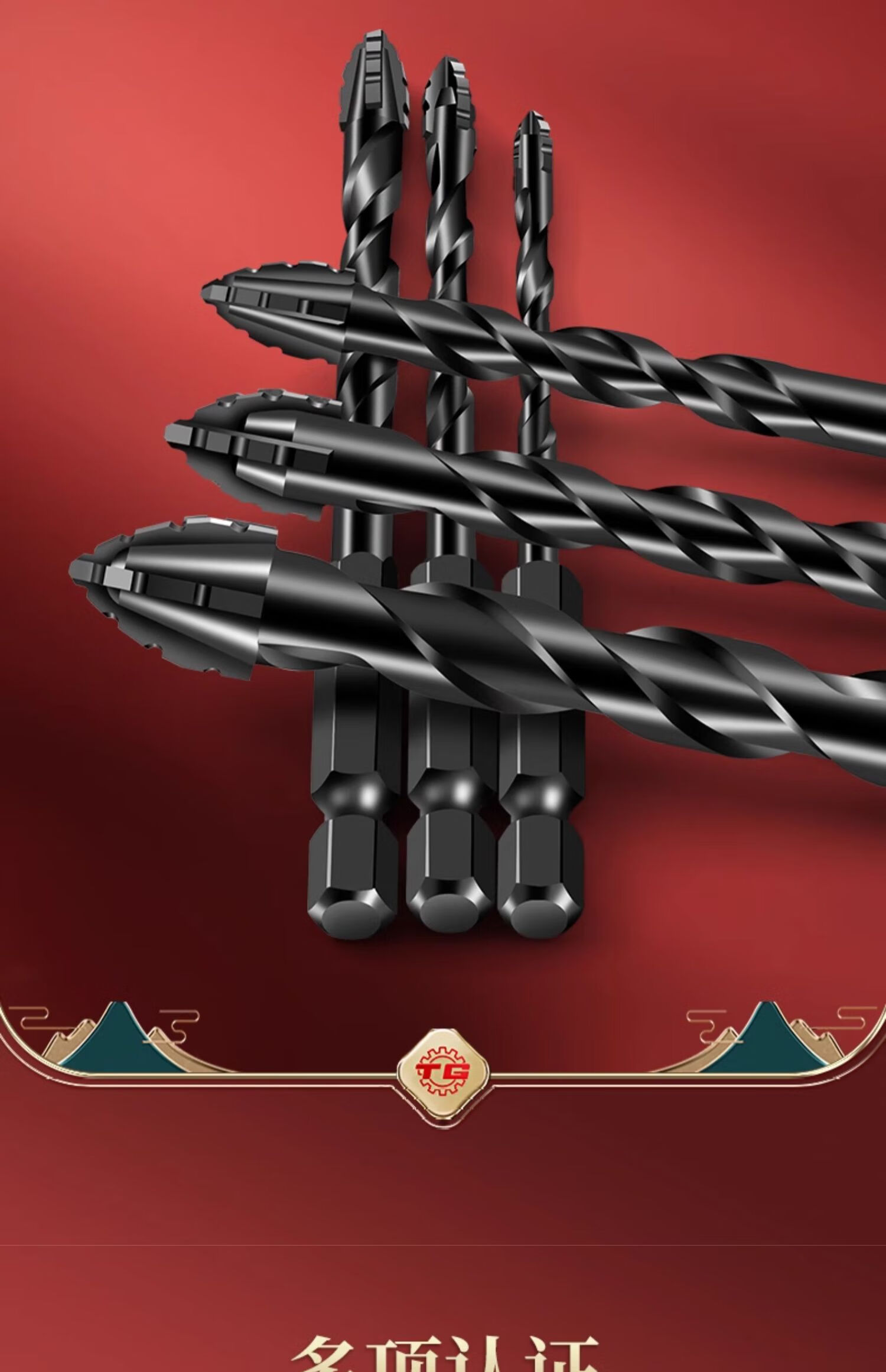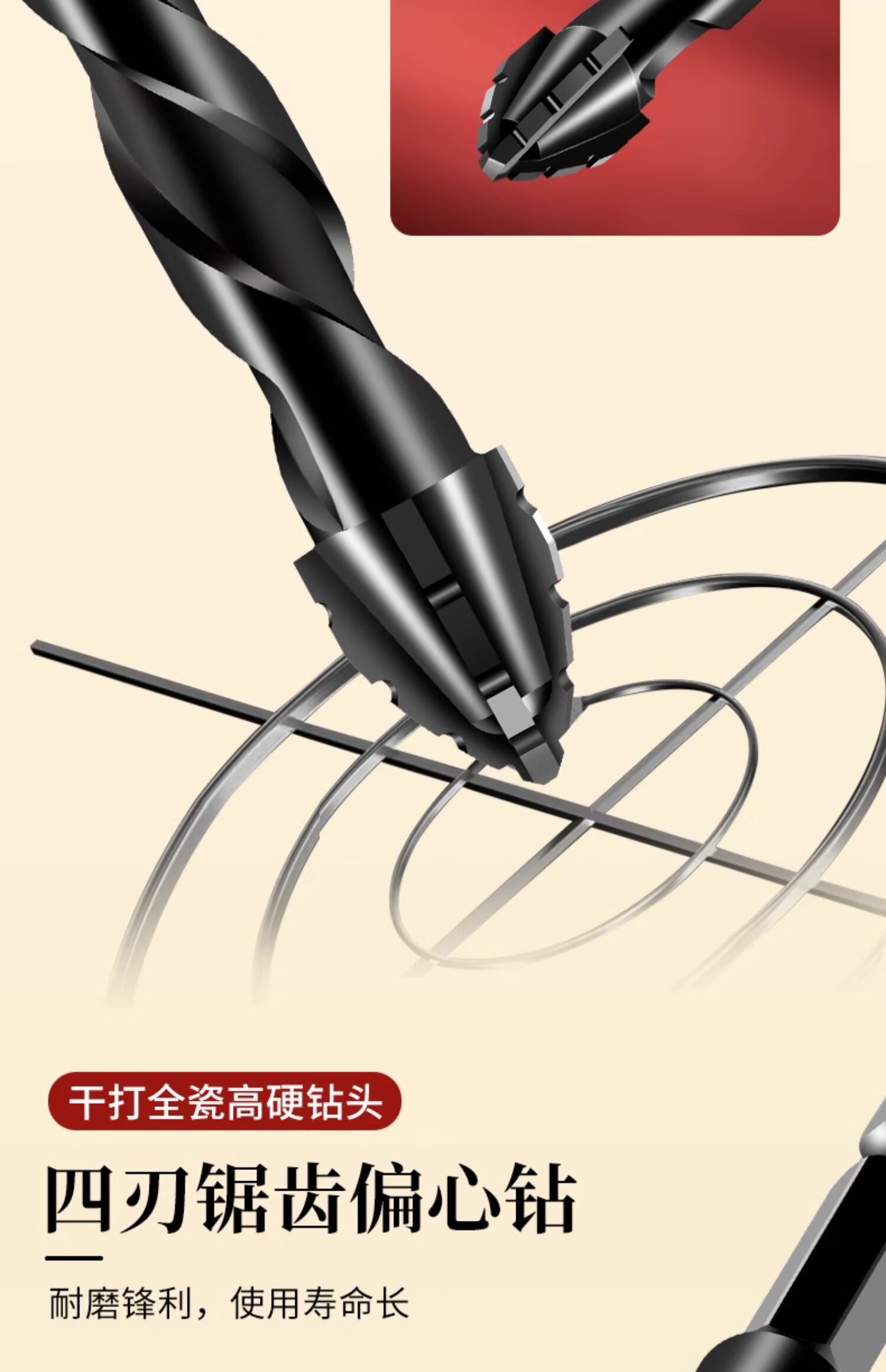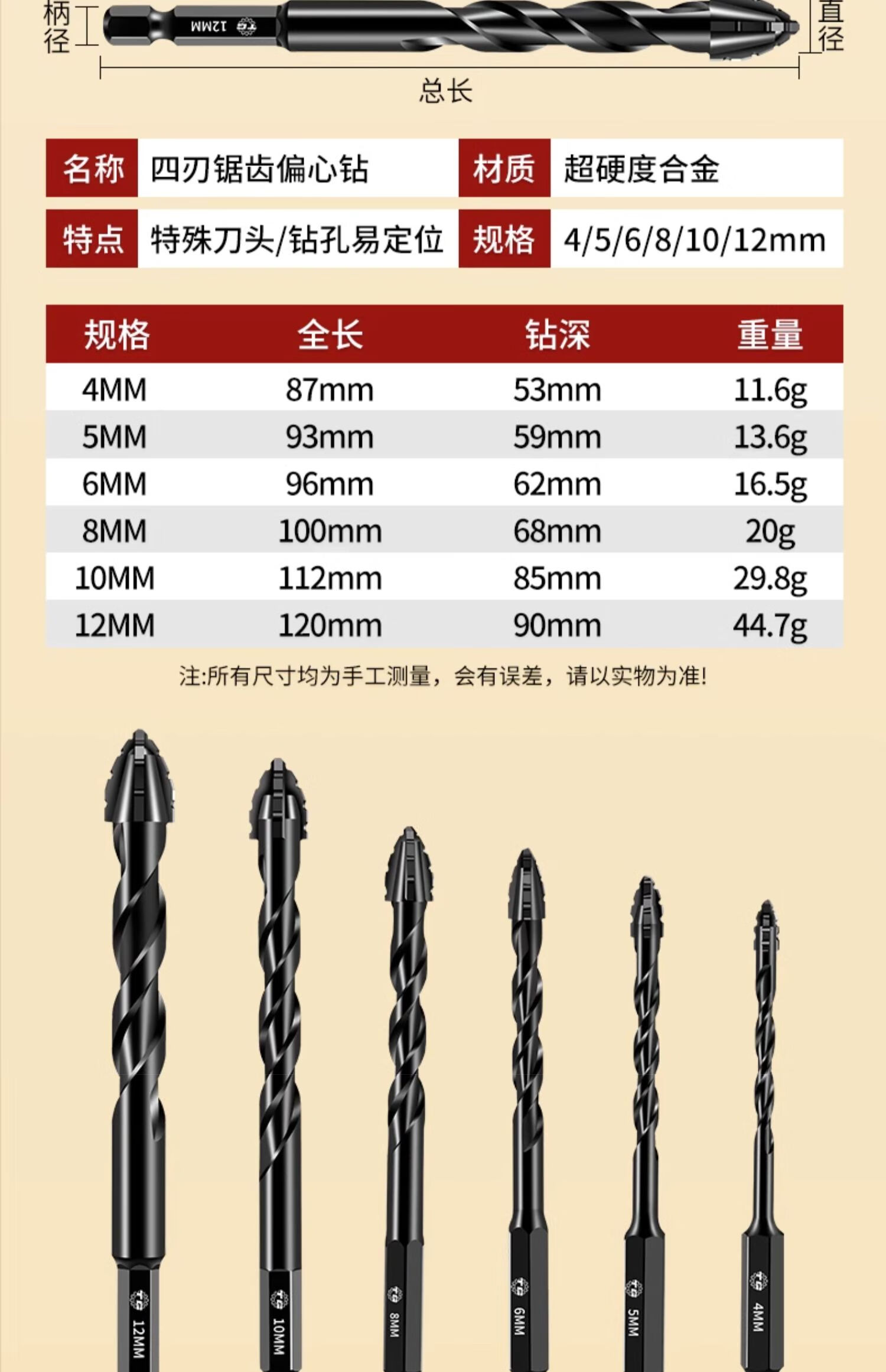 TIANGONG's new four-edged serrated eccentric dry drilling all-ceramic ceramic glass marble concrete stainless steel drill bit super-hard four-edged alloy 6mm one No Specifications