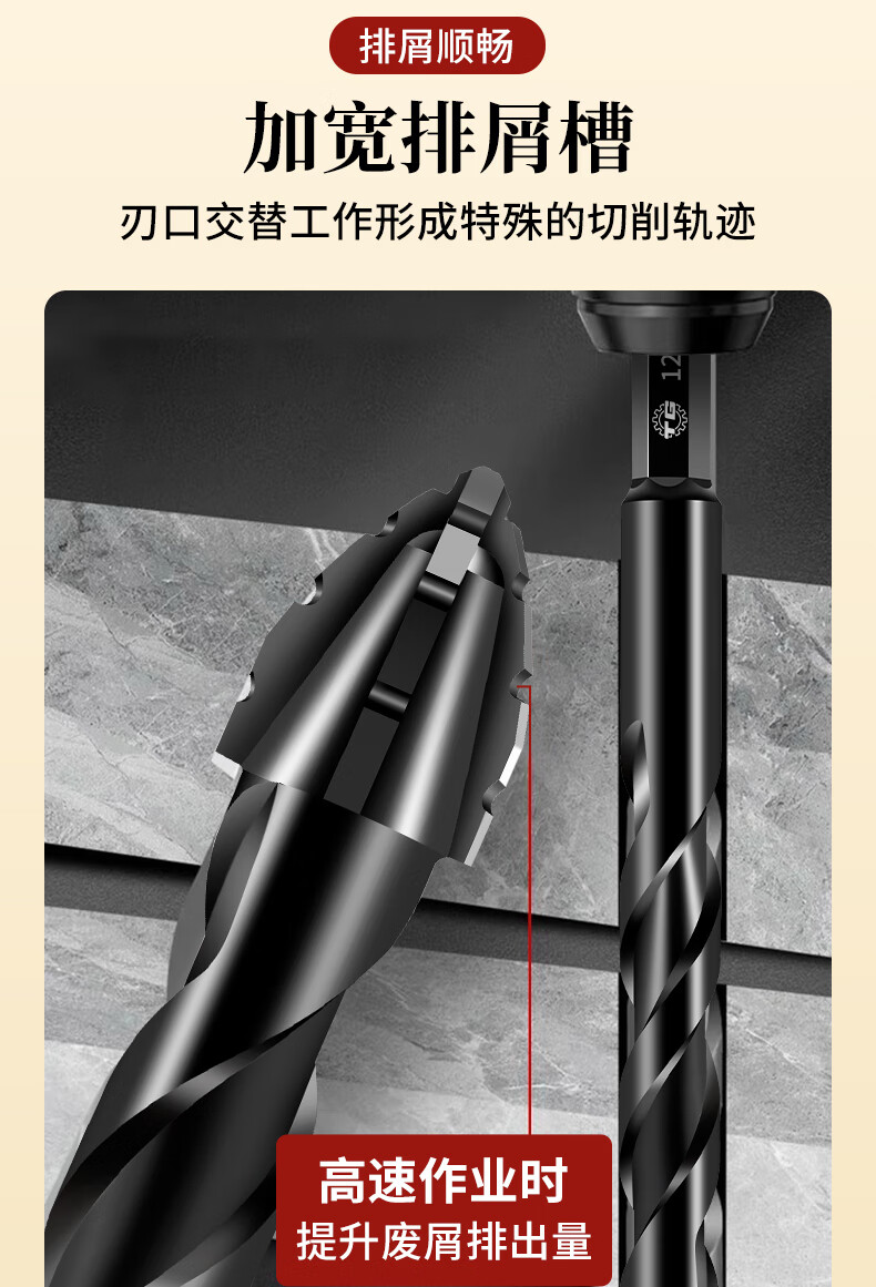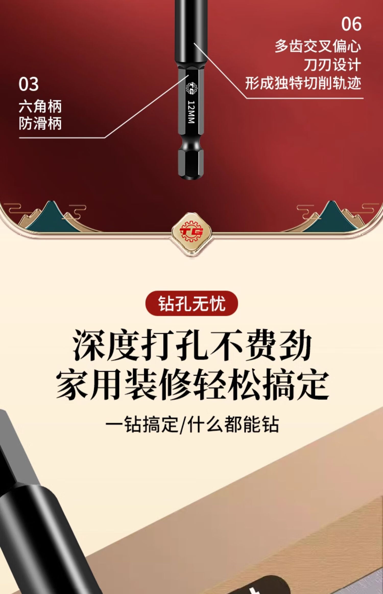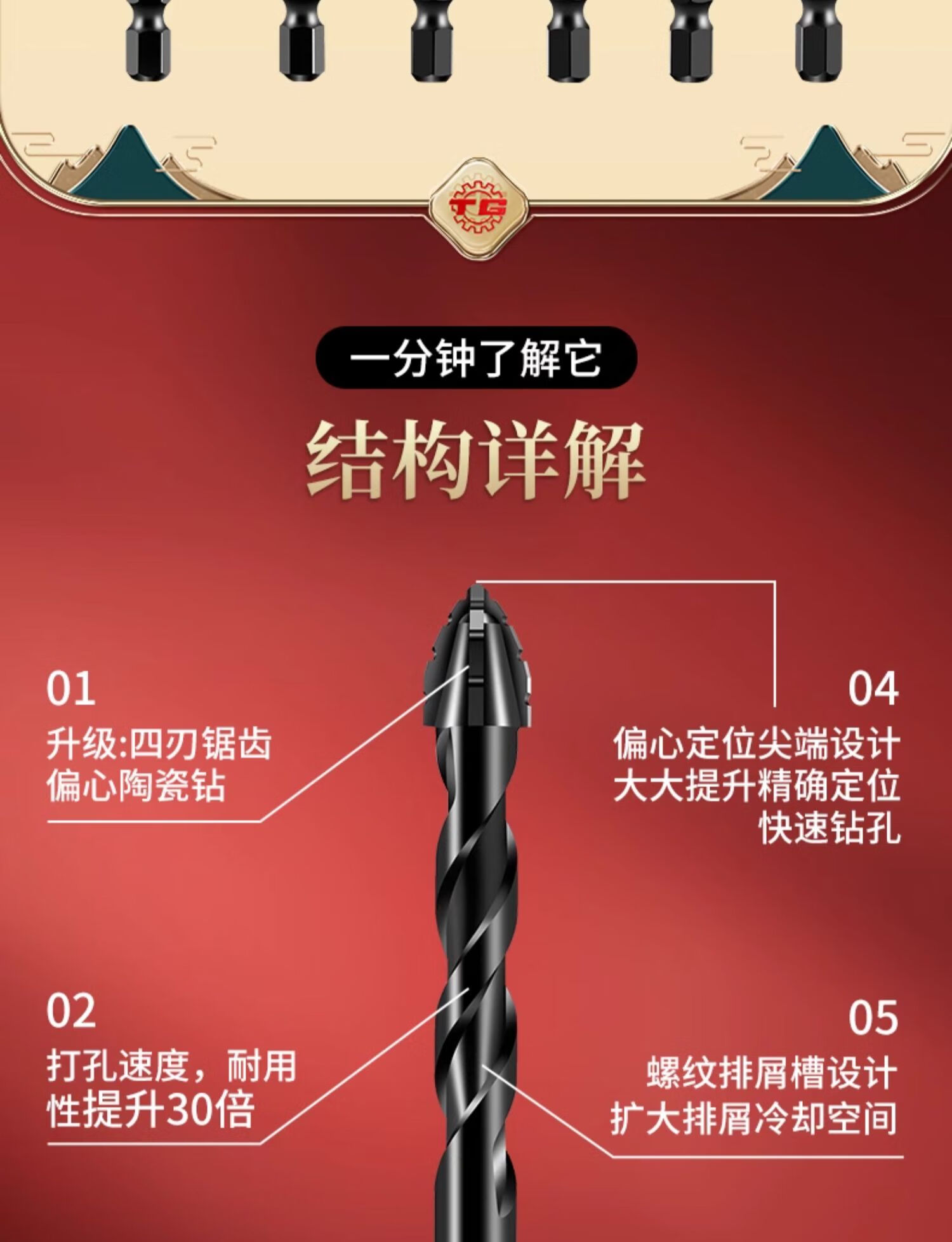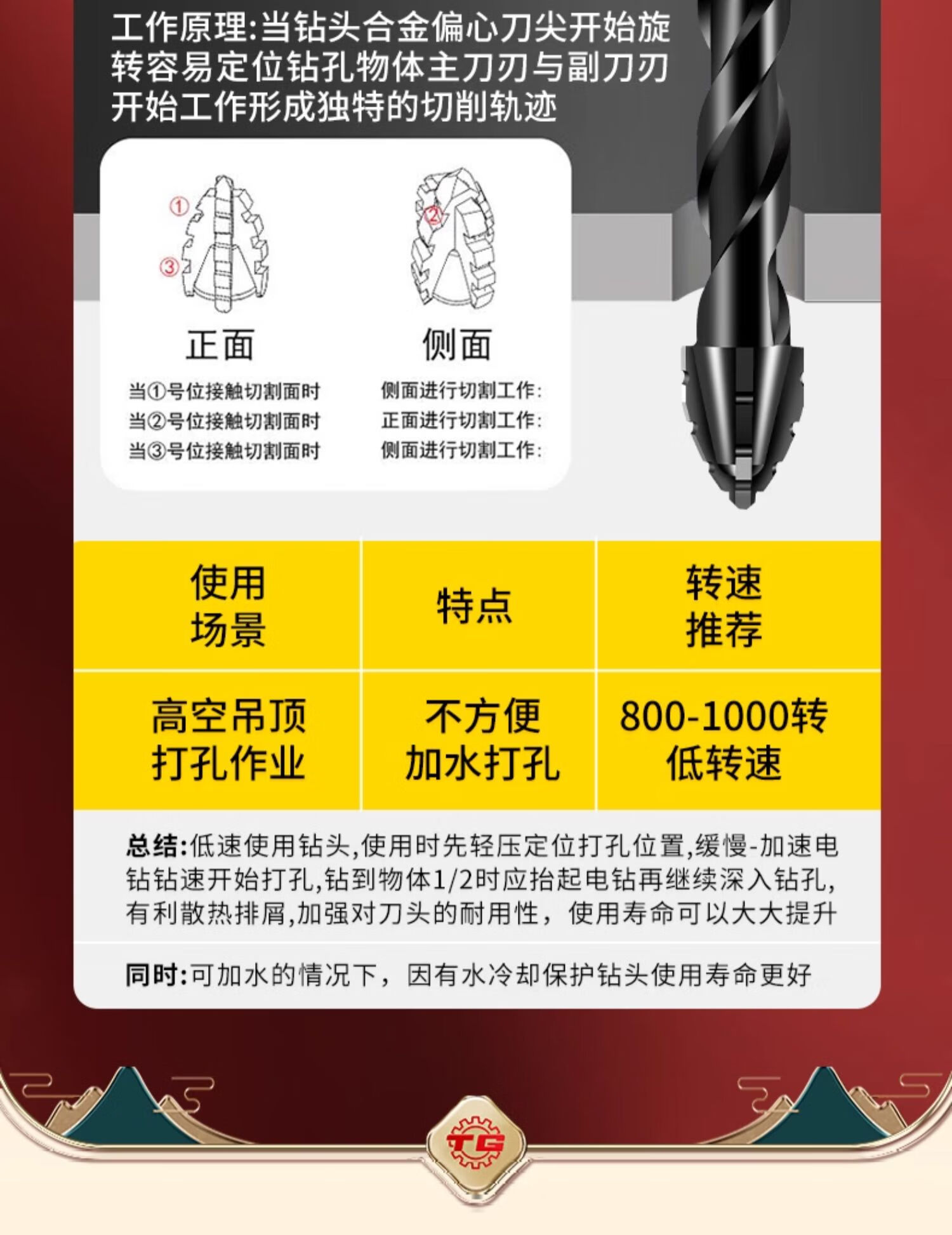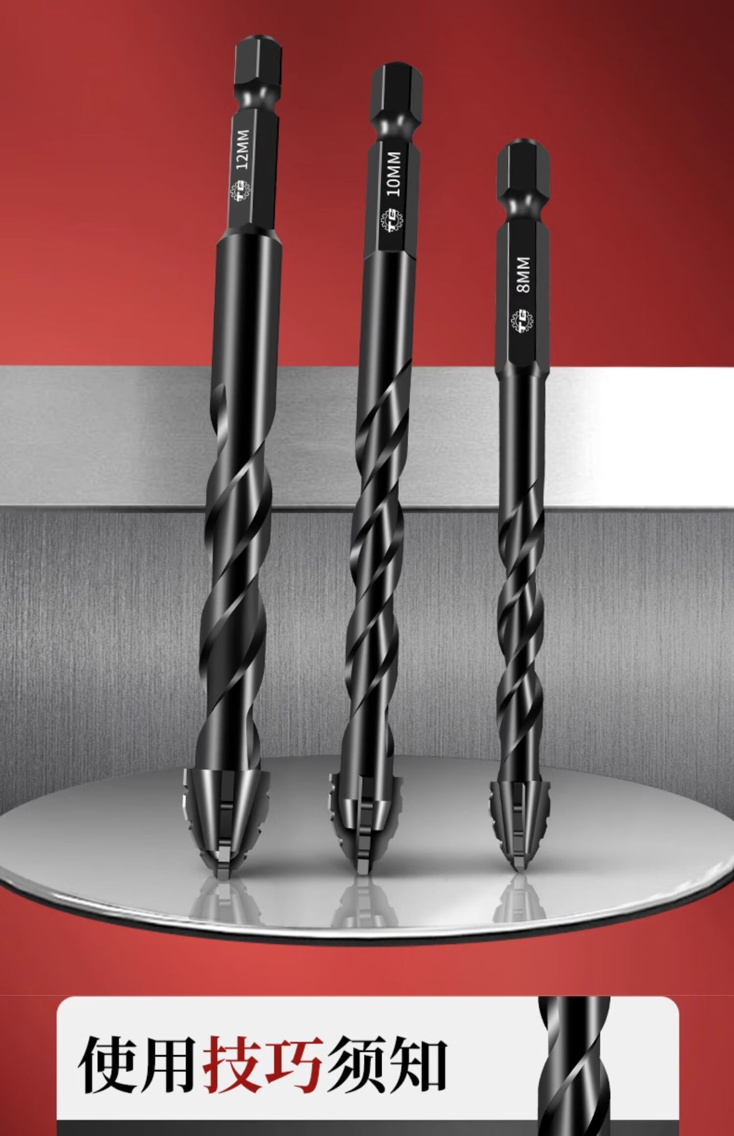 TIANGONG's new four-edged serrated eccentric dry drilling all-ceramic ceramic glass marble concrete stainless steel drill bit super-hard four-edged alloy 6mm one No Specifications