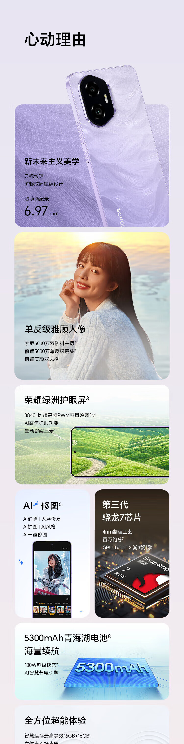Hi nova 300 Huawei smart mobile phone, new 5G mobile phone, NFC, anti-fall, waterproof, DSLR-level Yagu portrait, Oasis eye protection screen, Qinghai Lake battery, AI camera phone, Luyan purple 12GB+512GB
