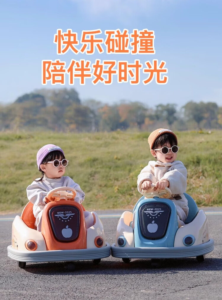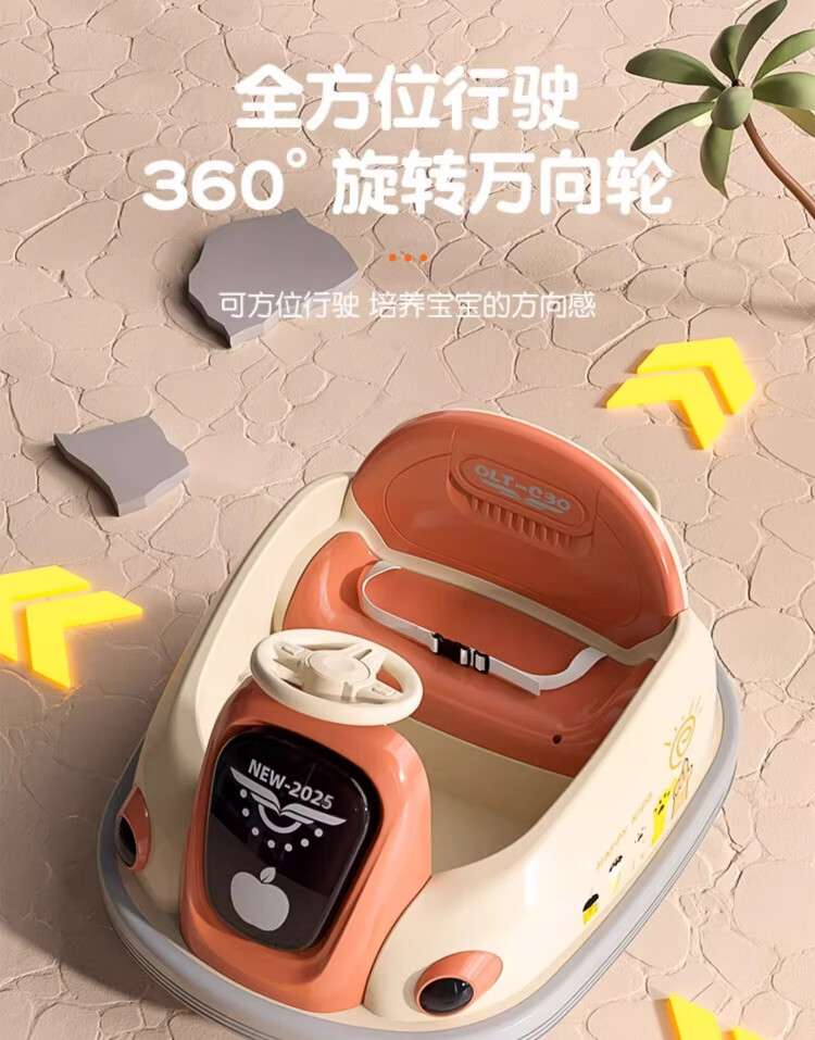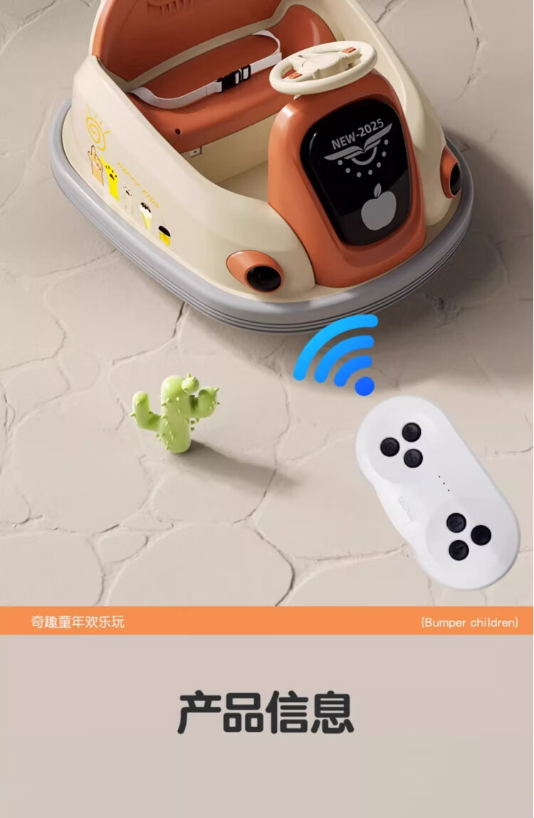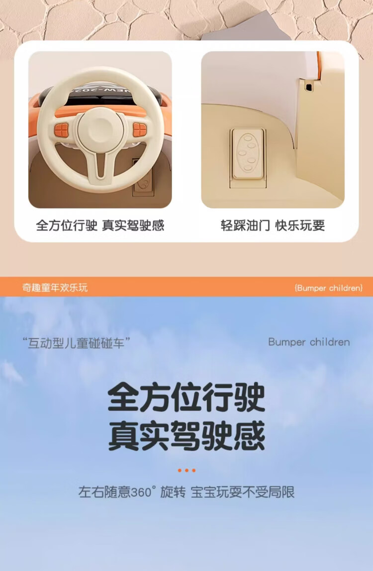 Ouletong children's electric bumper car, baby toy car, can sit on a person with remote control baby four-wheel car charging stroller Smart Orange 7A large battery + dual drive + remote control Bluetooth + early education music + light + forward and backward
