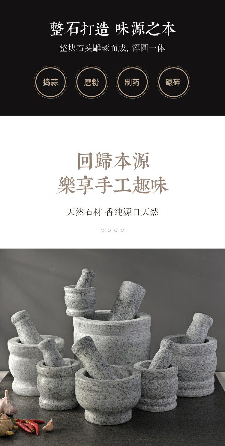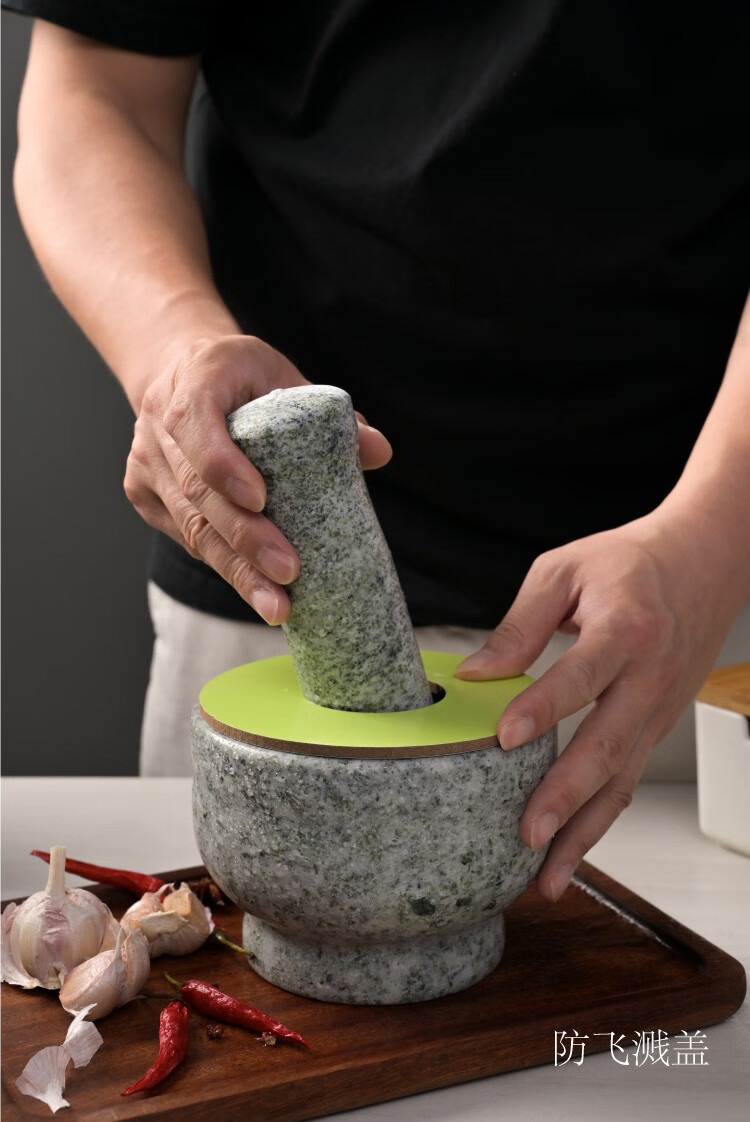 Enshousu natural stone garlic pounder, stone mortar, medicine jar grinder, household garlic mortar, garlic peeling garlic press, garlic paste, extra large stone mortar with lid