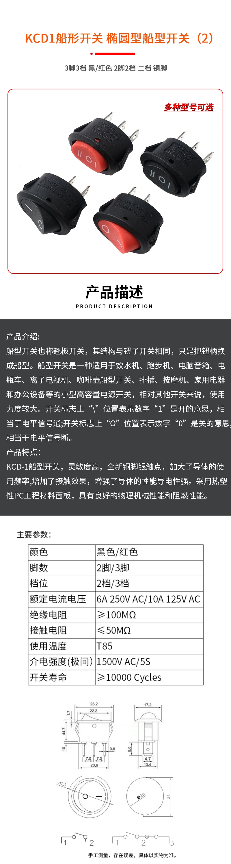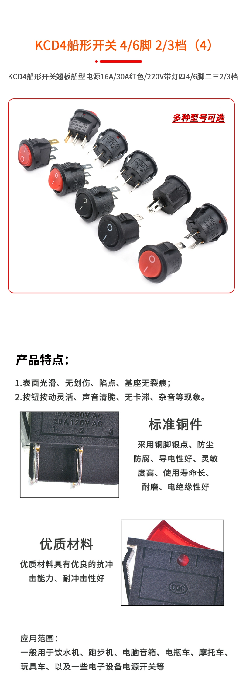 KCD1/3/4/5/11 small boat-shaped switch water dispenser electronic scale power button boat-shaped rocker 2 feet 4 feet 3 gears KCD1 red 2 feet 2 gears copper parts (2 pieces)